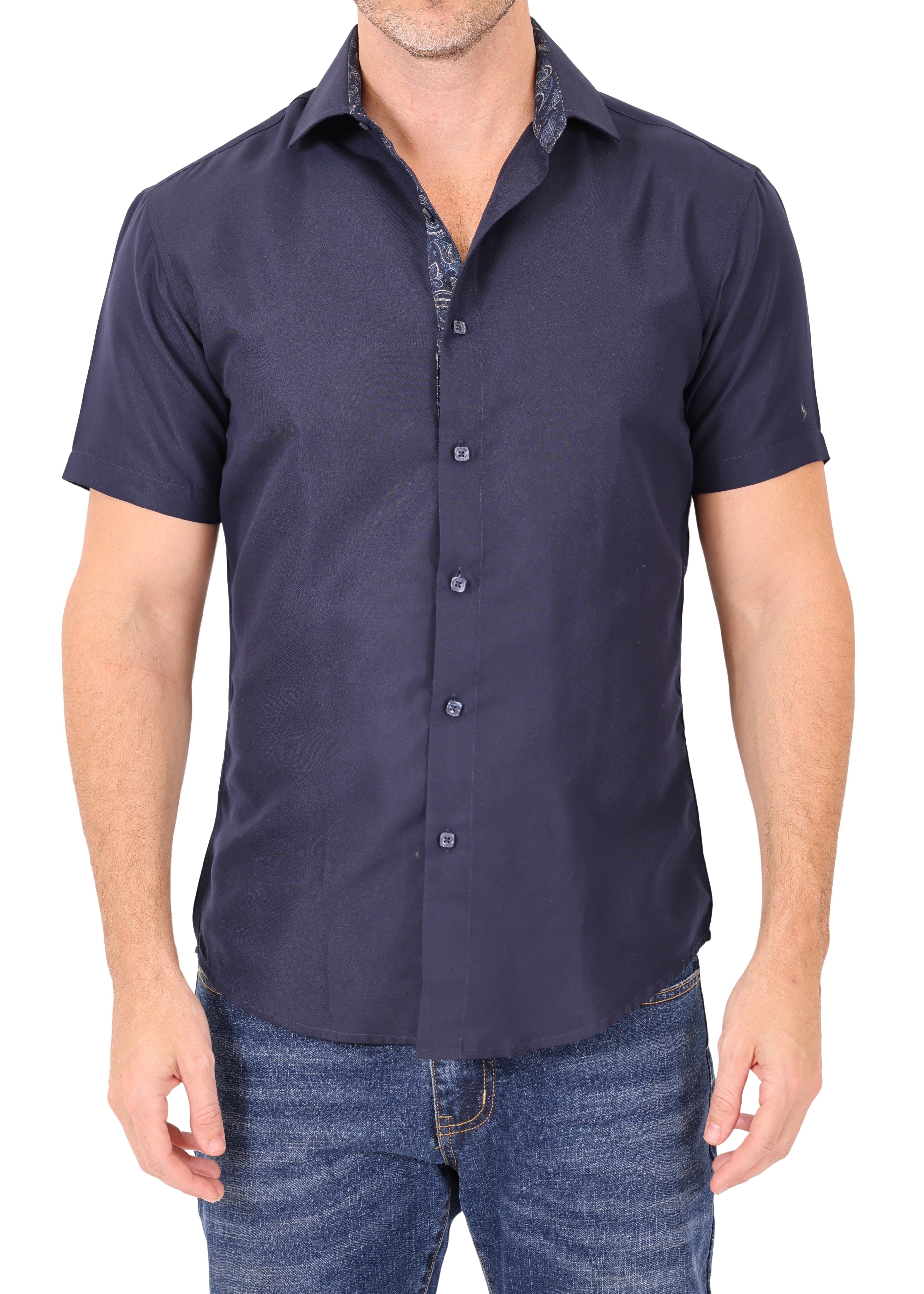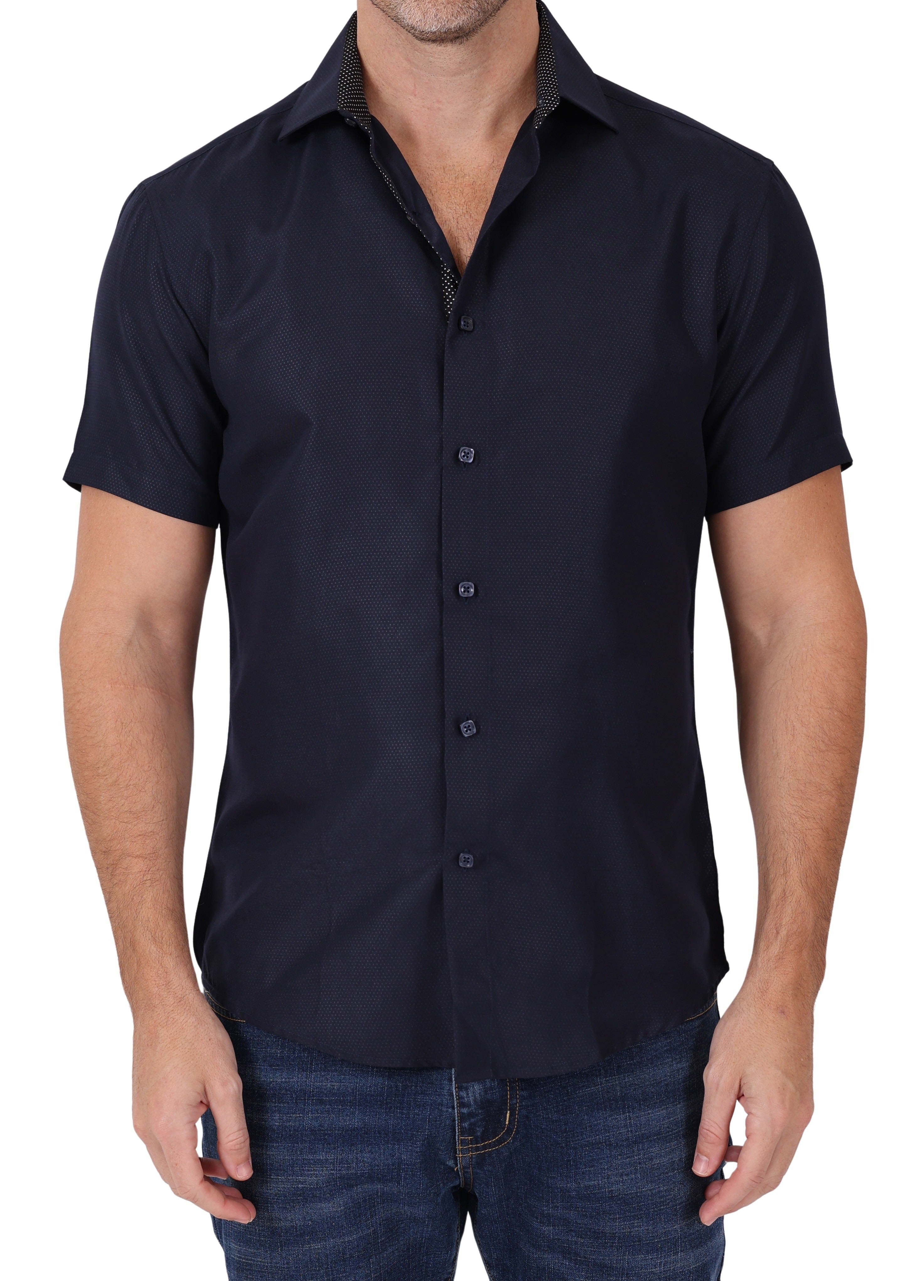 242004 - Navy Button Up Short Sleeve Dress Shirt