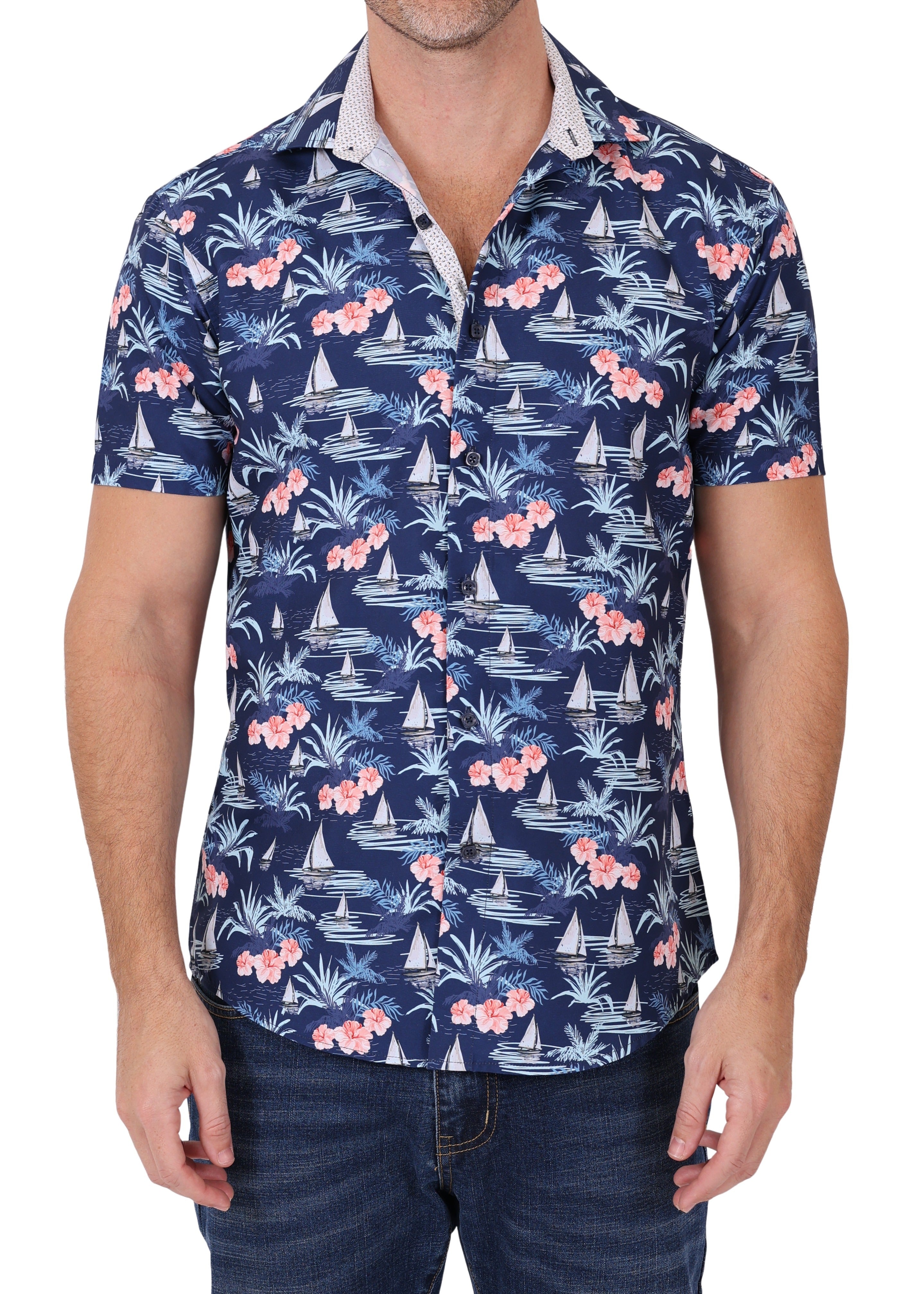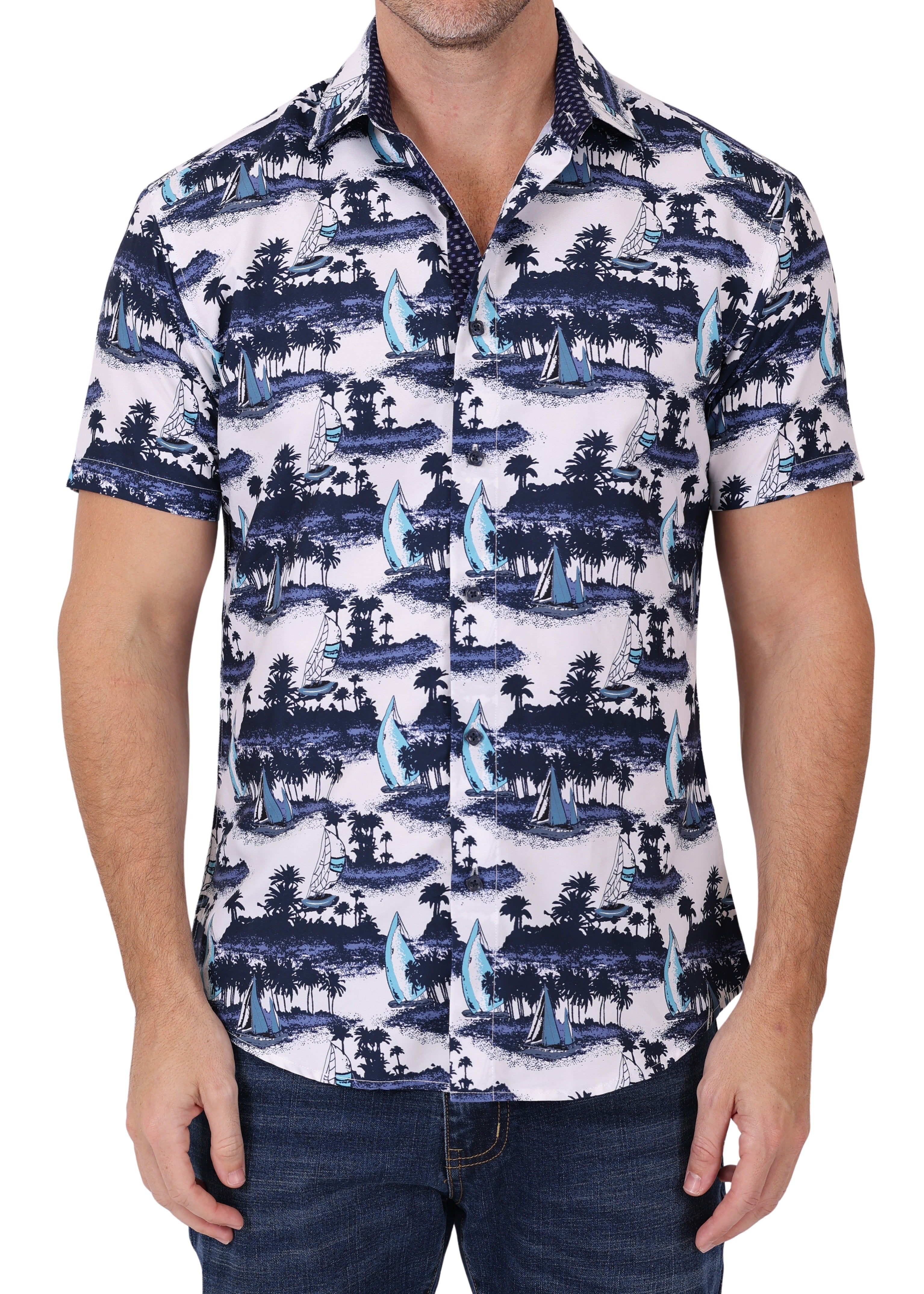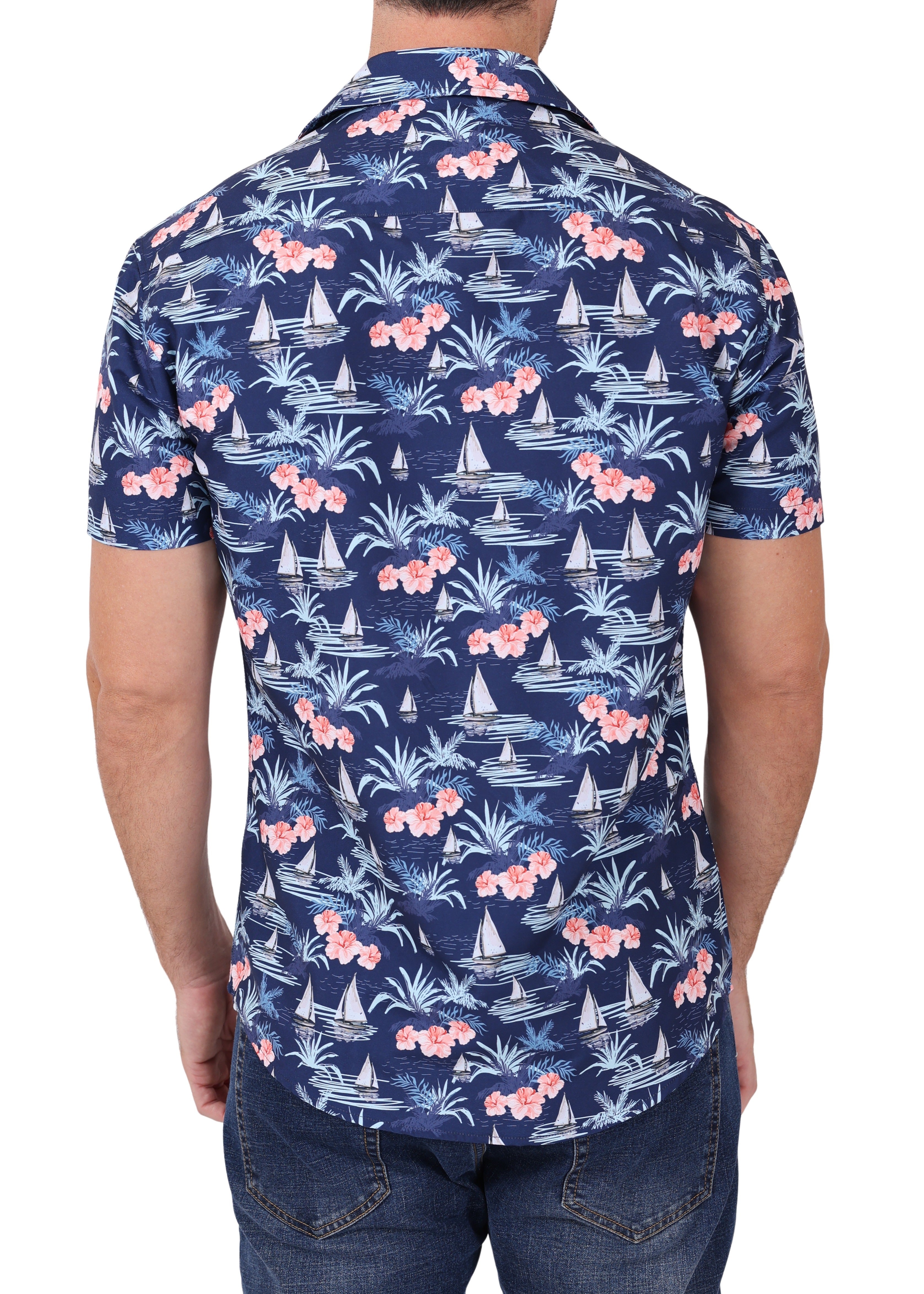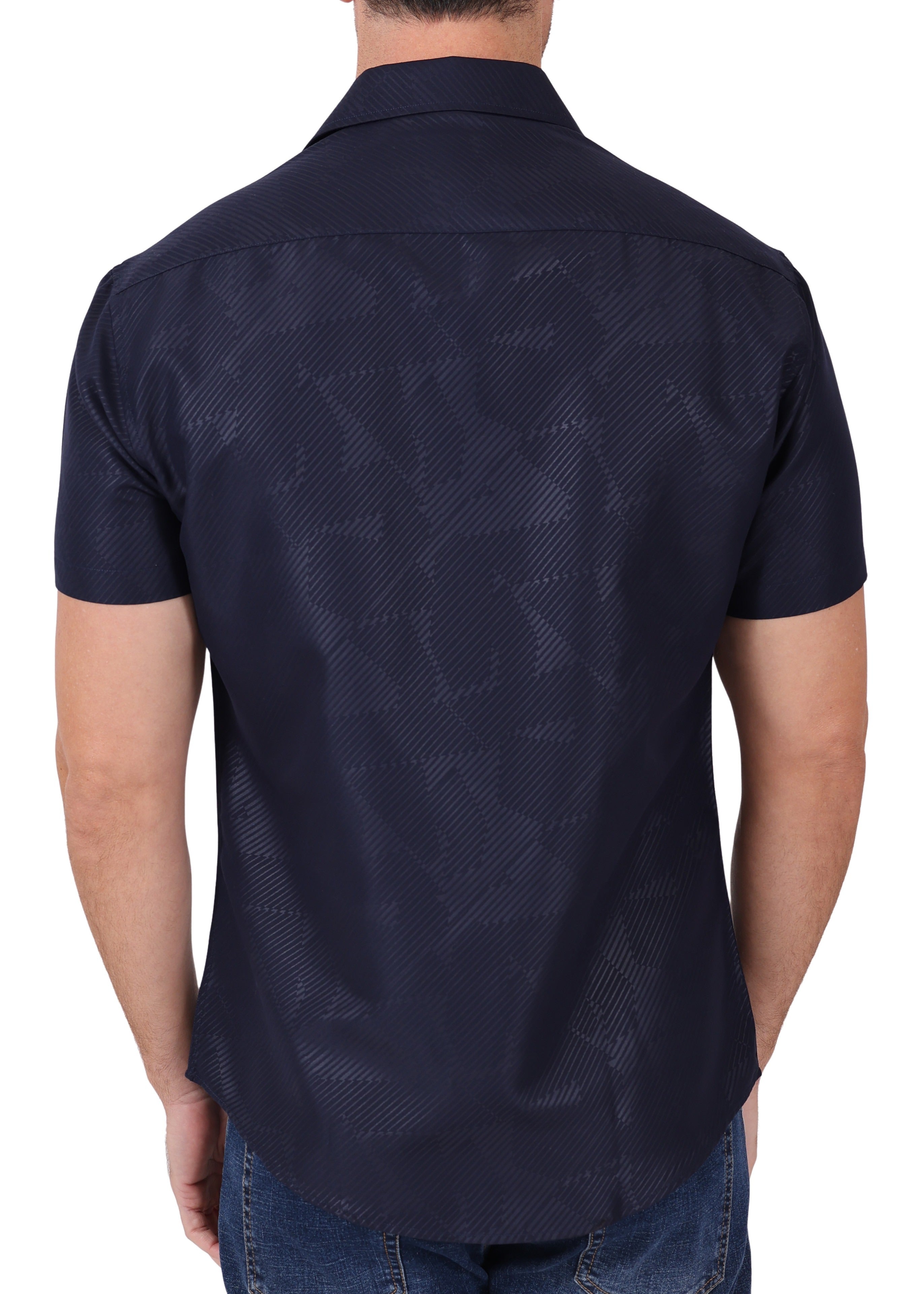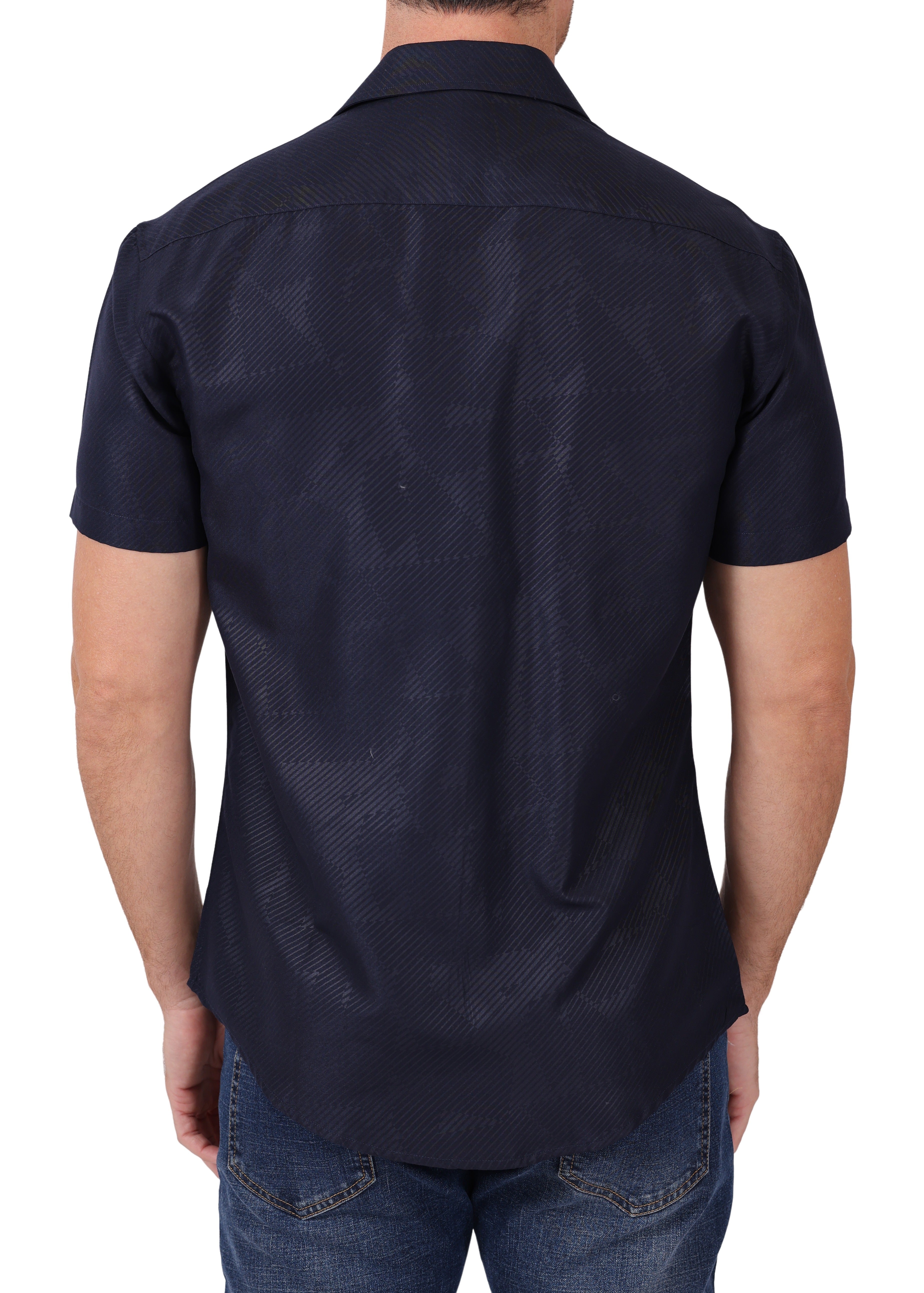 202013 - Navy Button Up Short Sleeve Dress Shirt