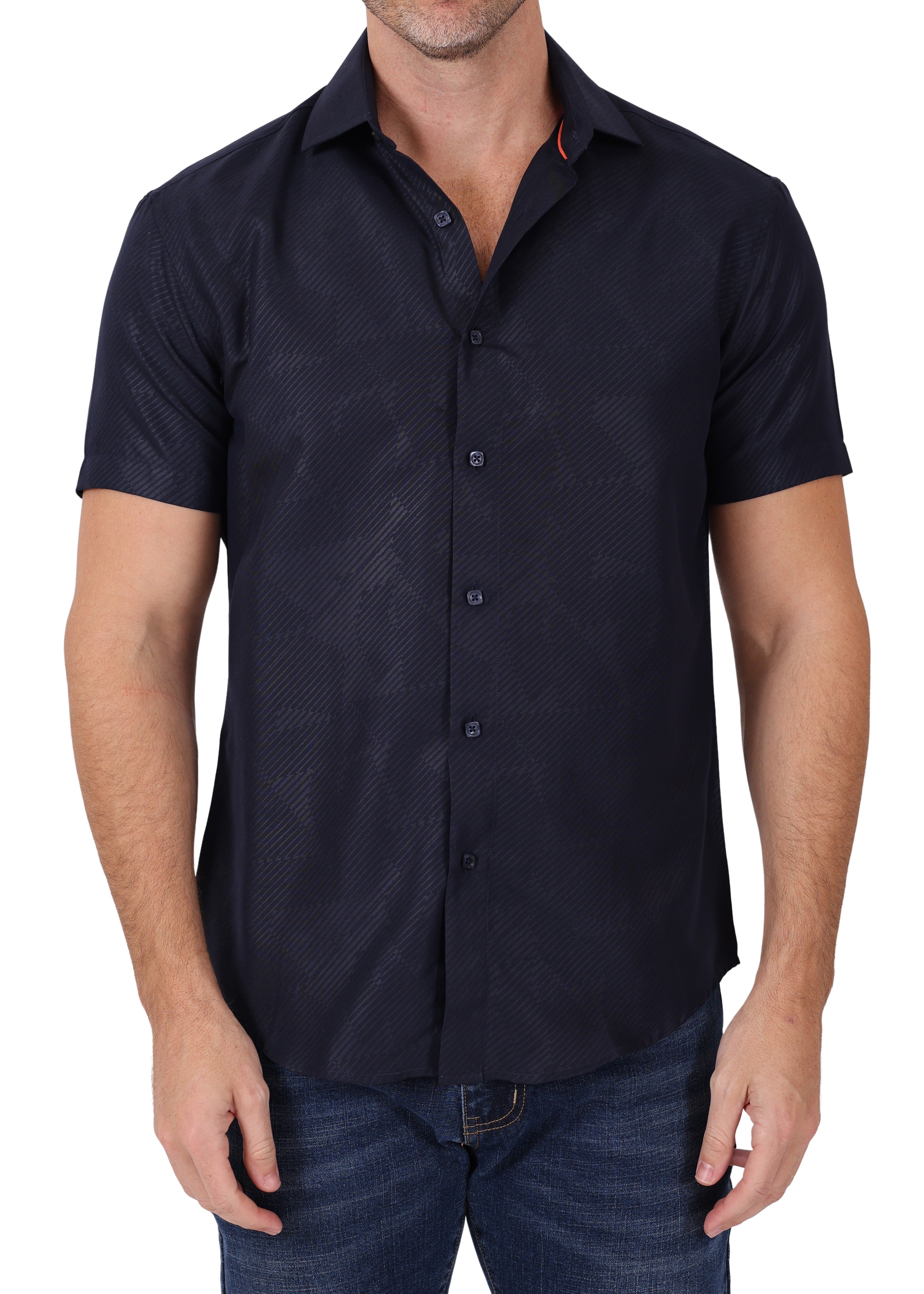 212035 - Navy Button Up Short Sleeve Dress Shirt