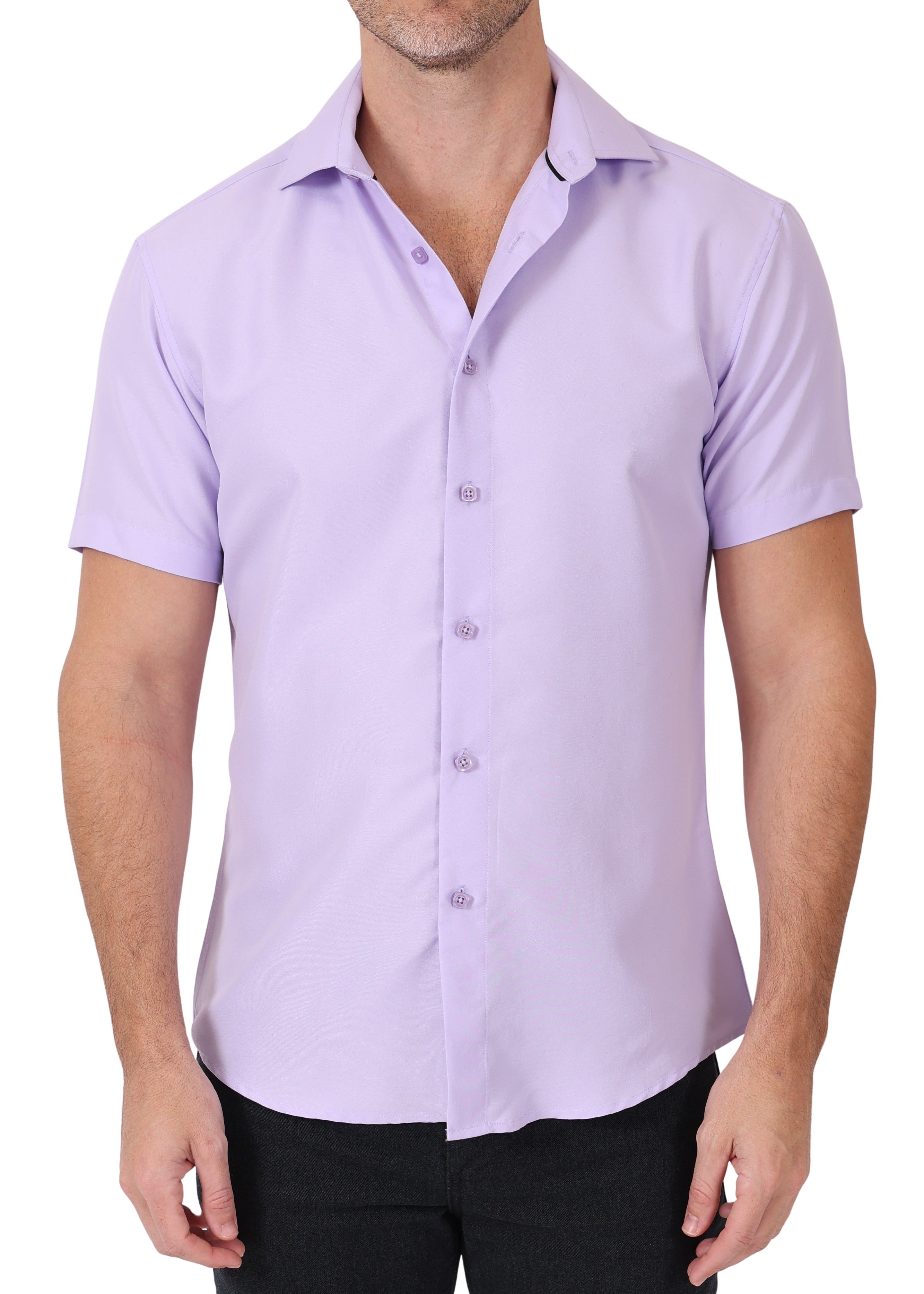 242003 - Lilac Button Up Short Sleeve Dress Shirt