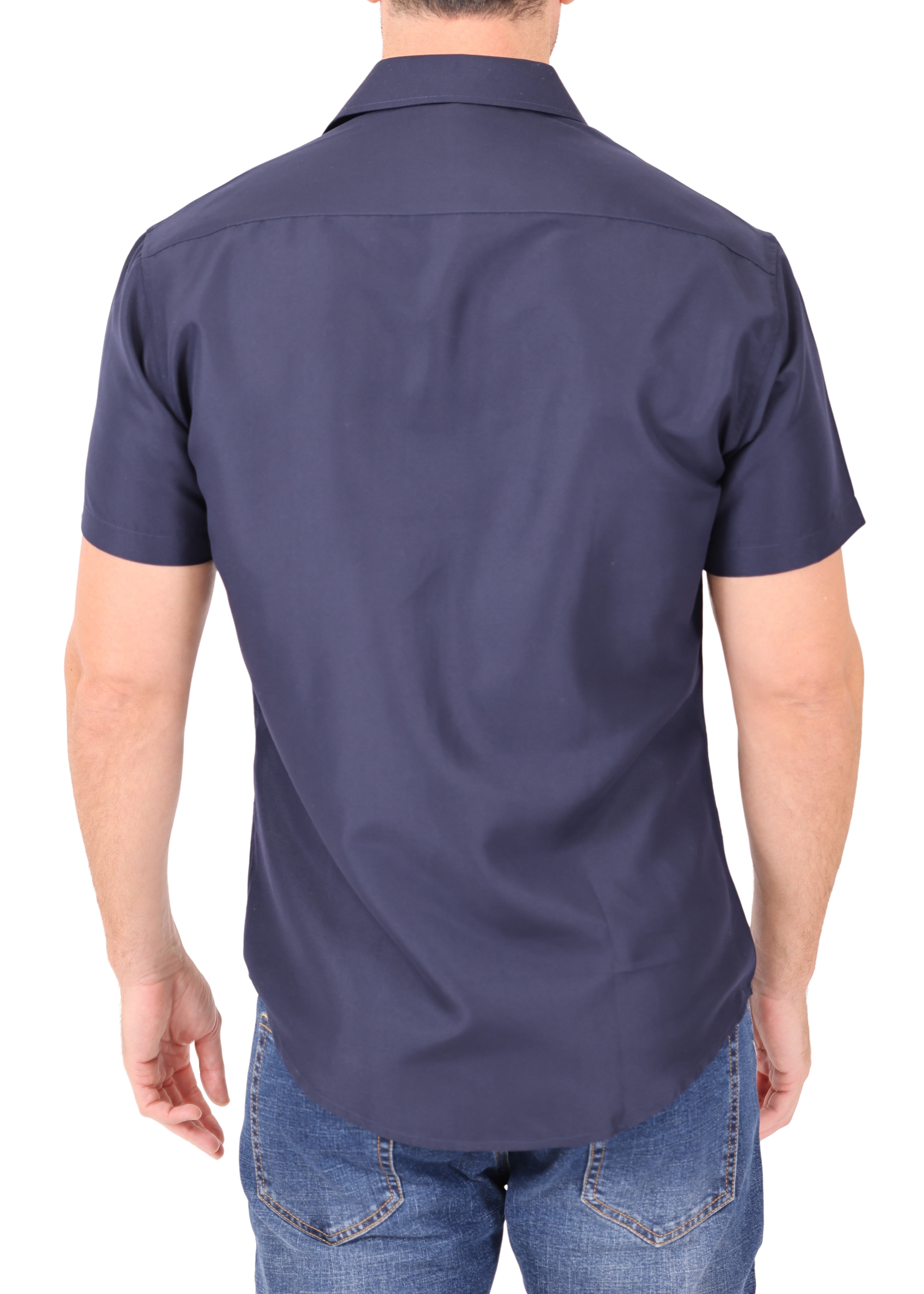 242001 - Navy Button Up Short Sleeve Dress Shirt