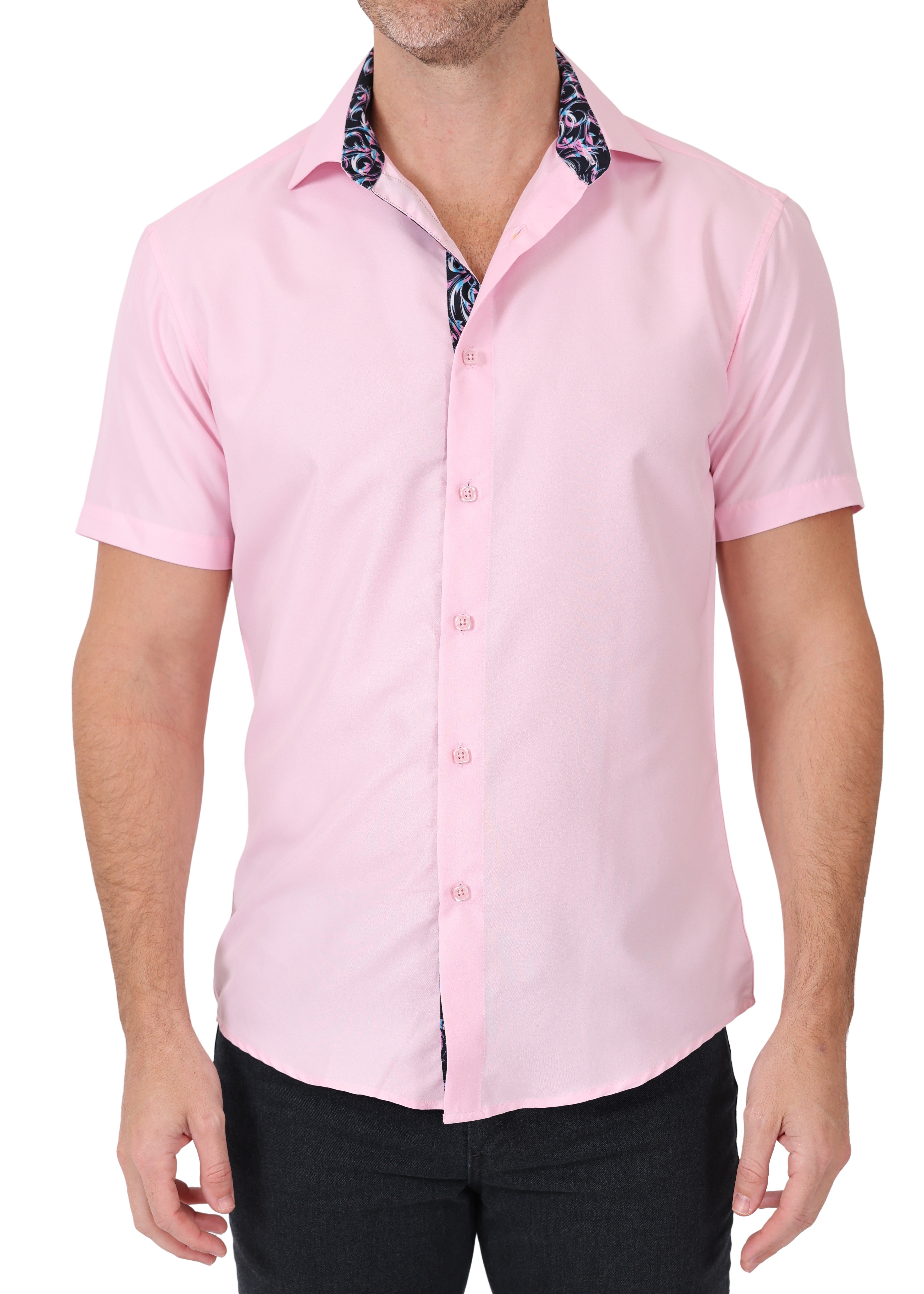 242004 - Pink Button Up Short Sleeve Dress Shirt