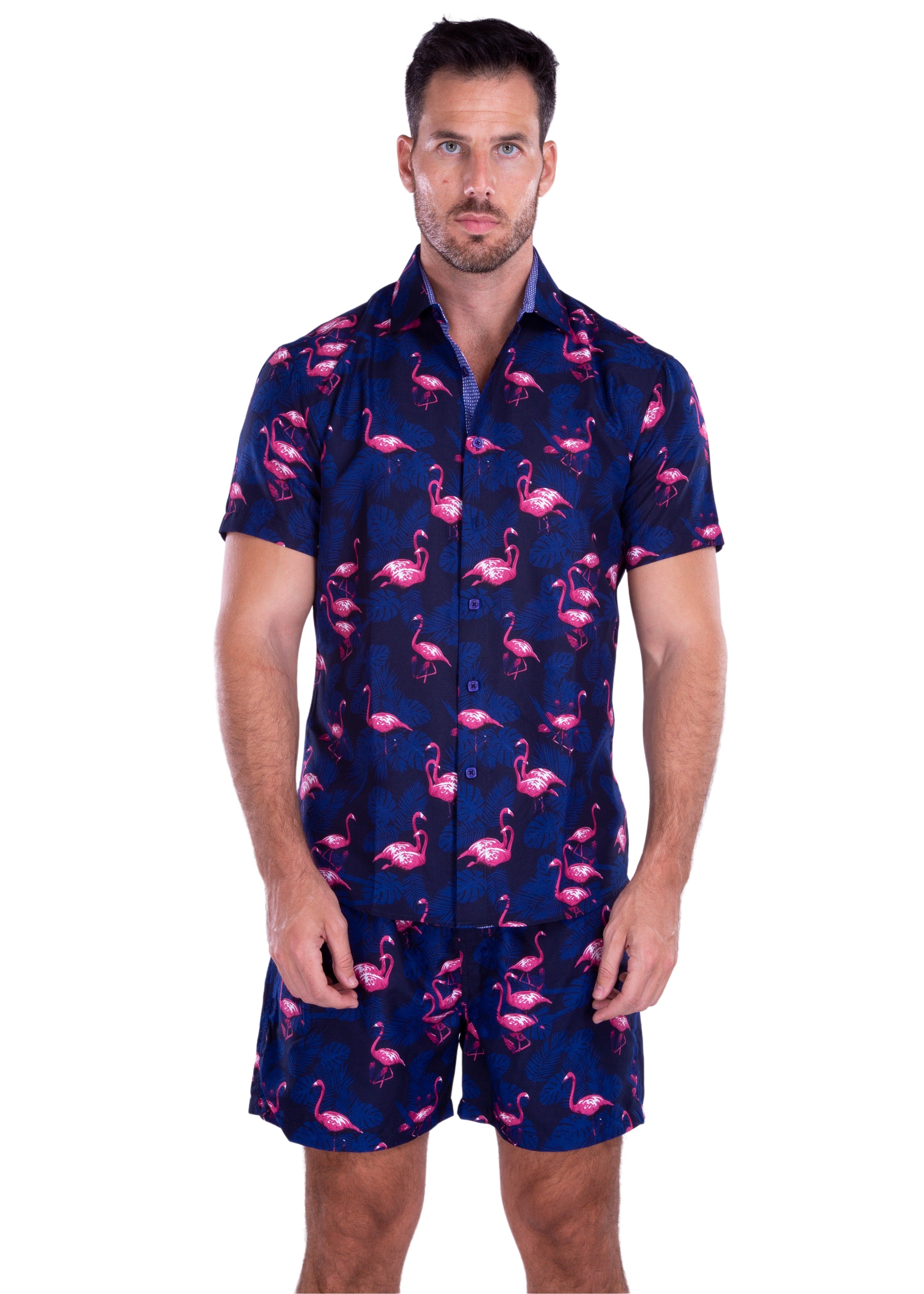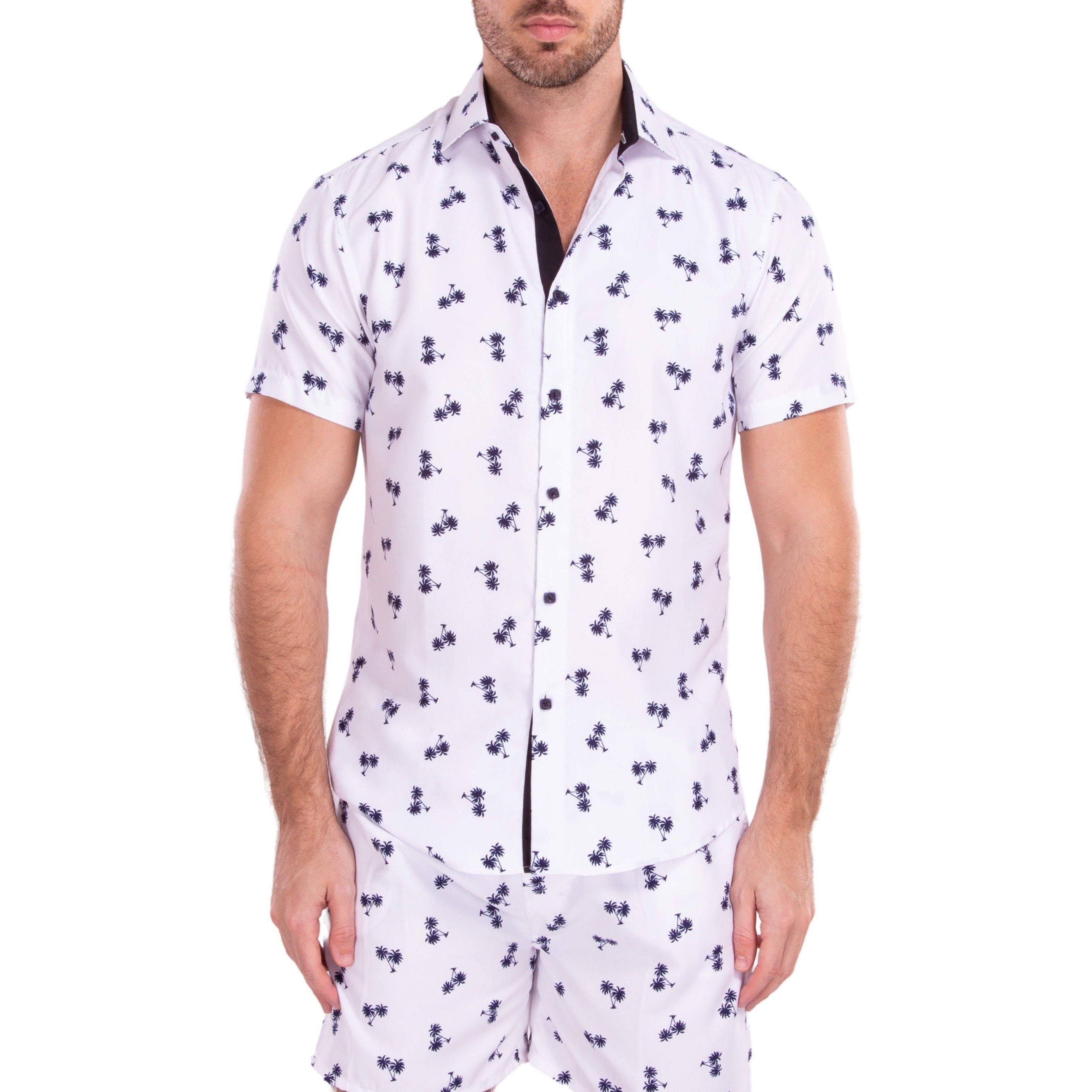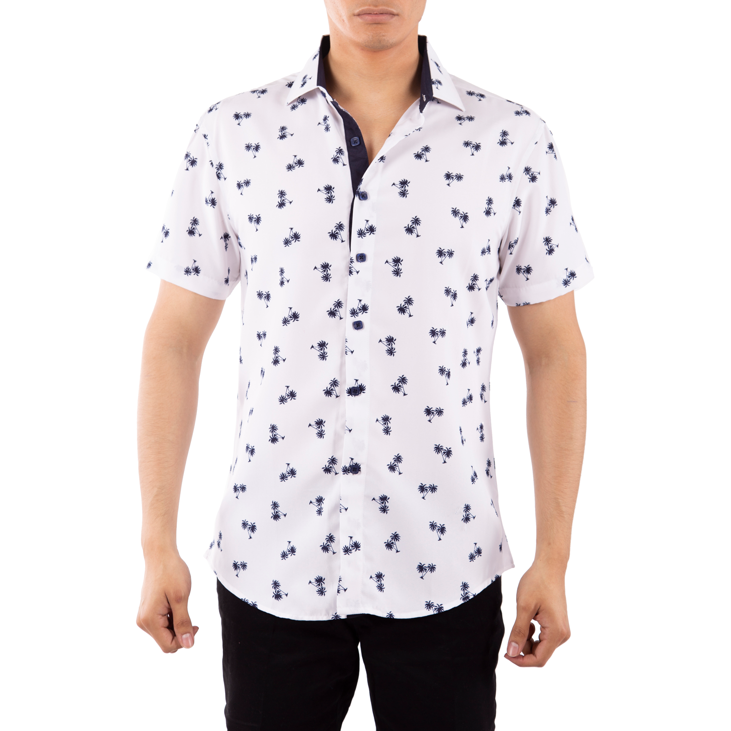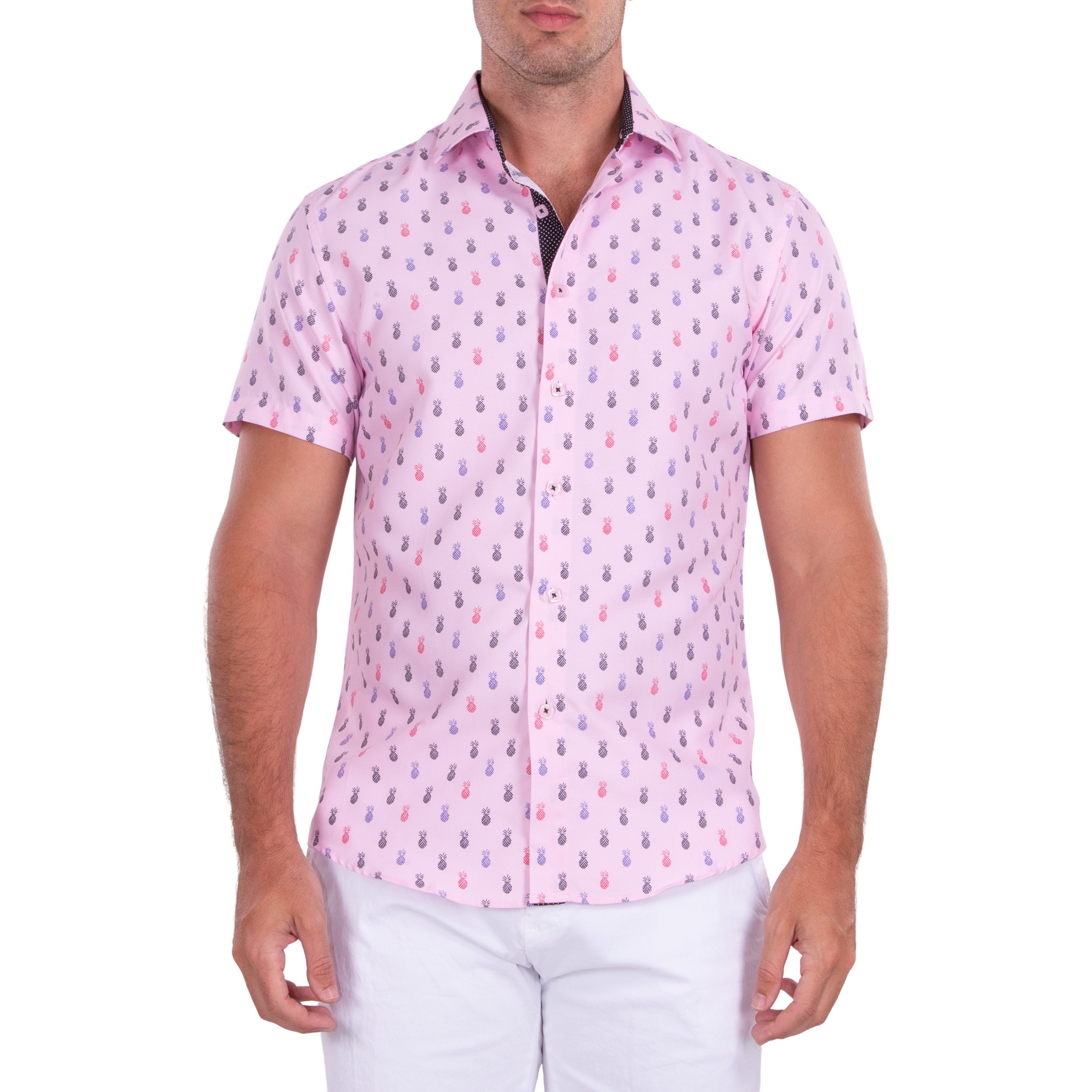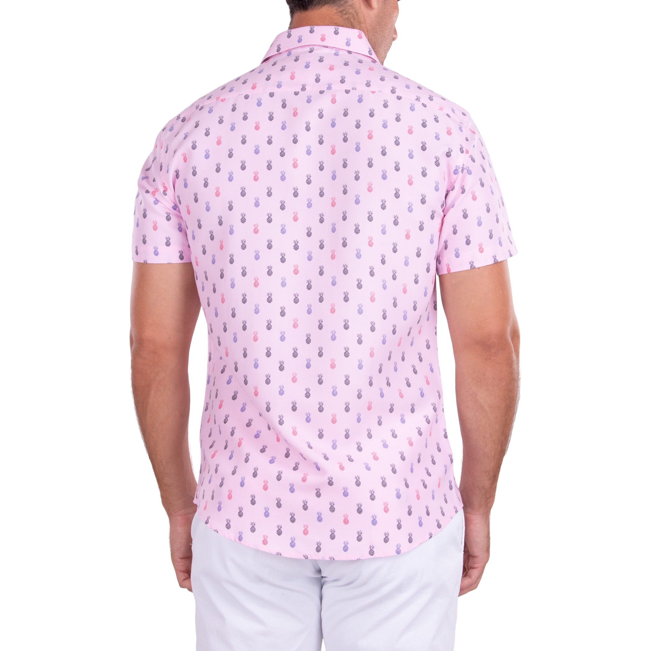 192020 - Pink Pineapple Print Button Up Short Sleeve Dress Shirt