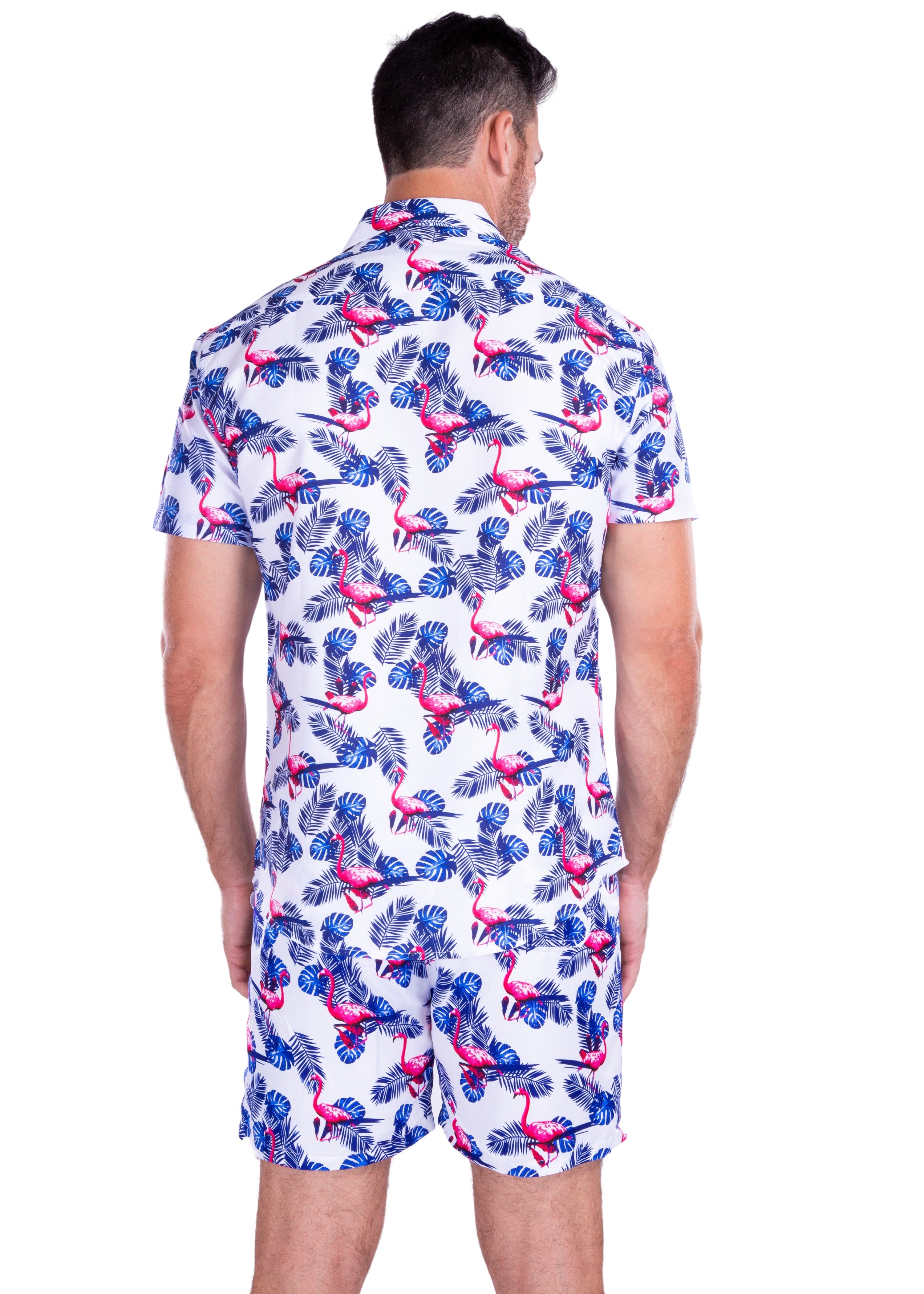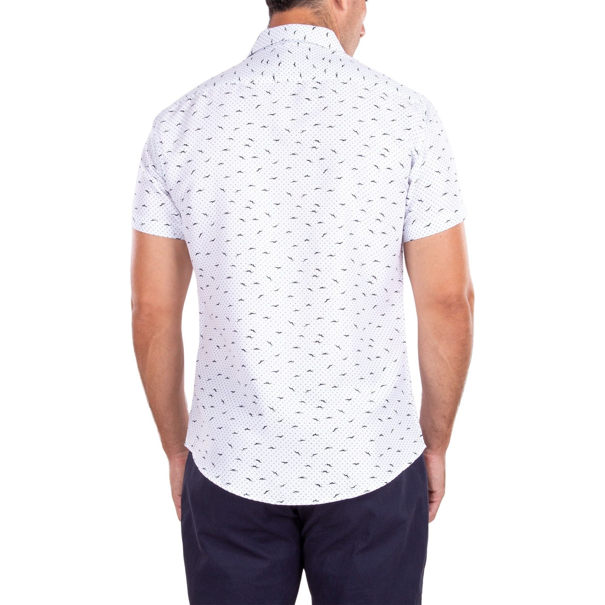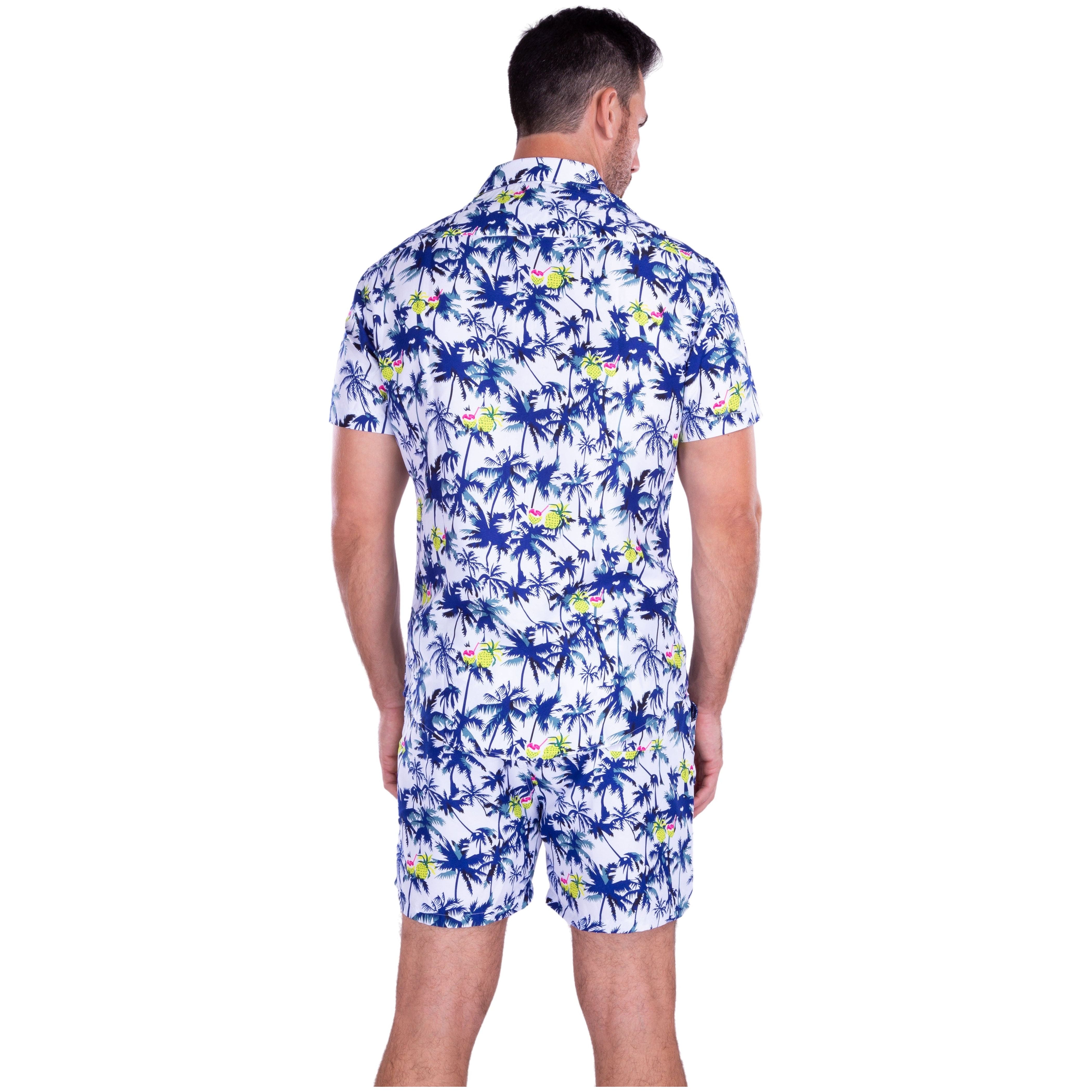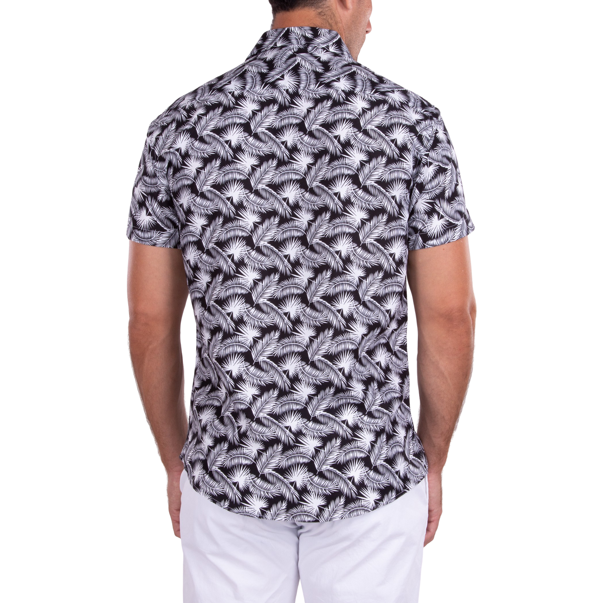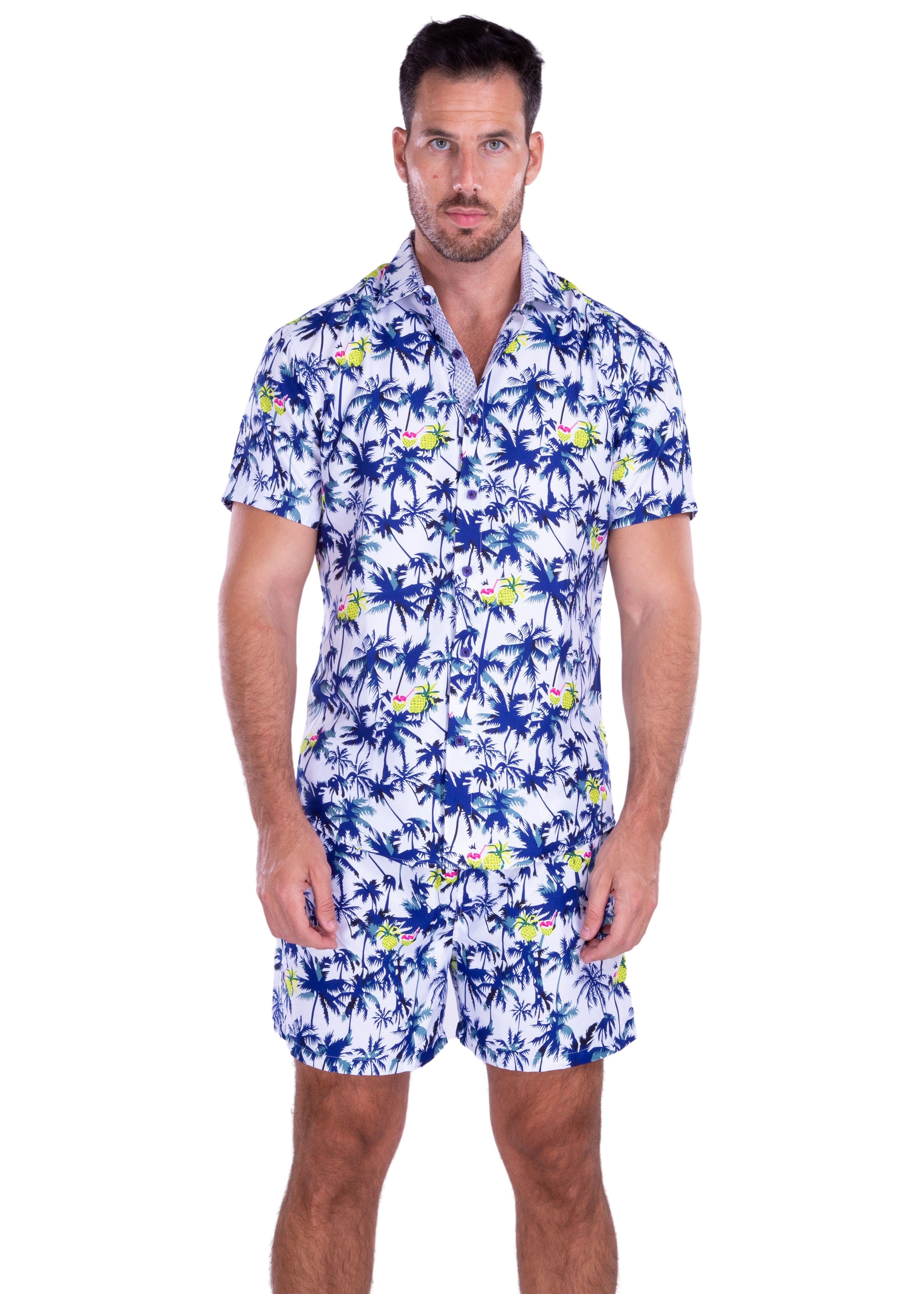 192020 - Pink Pineapple Print Button Up Short Sleeve Dress Shirt