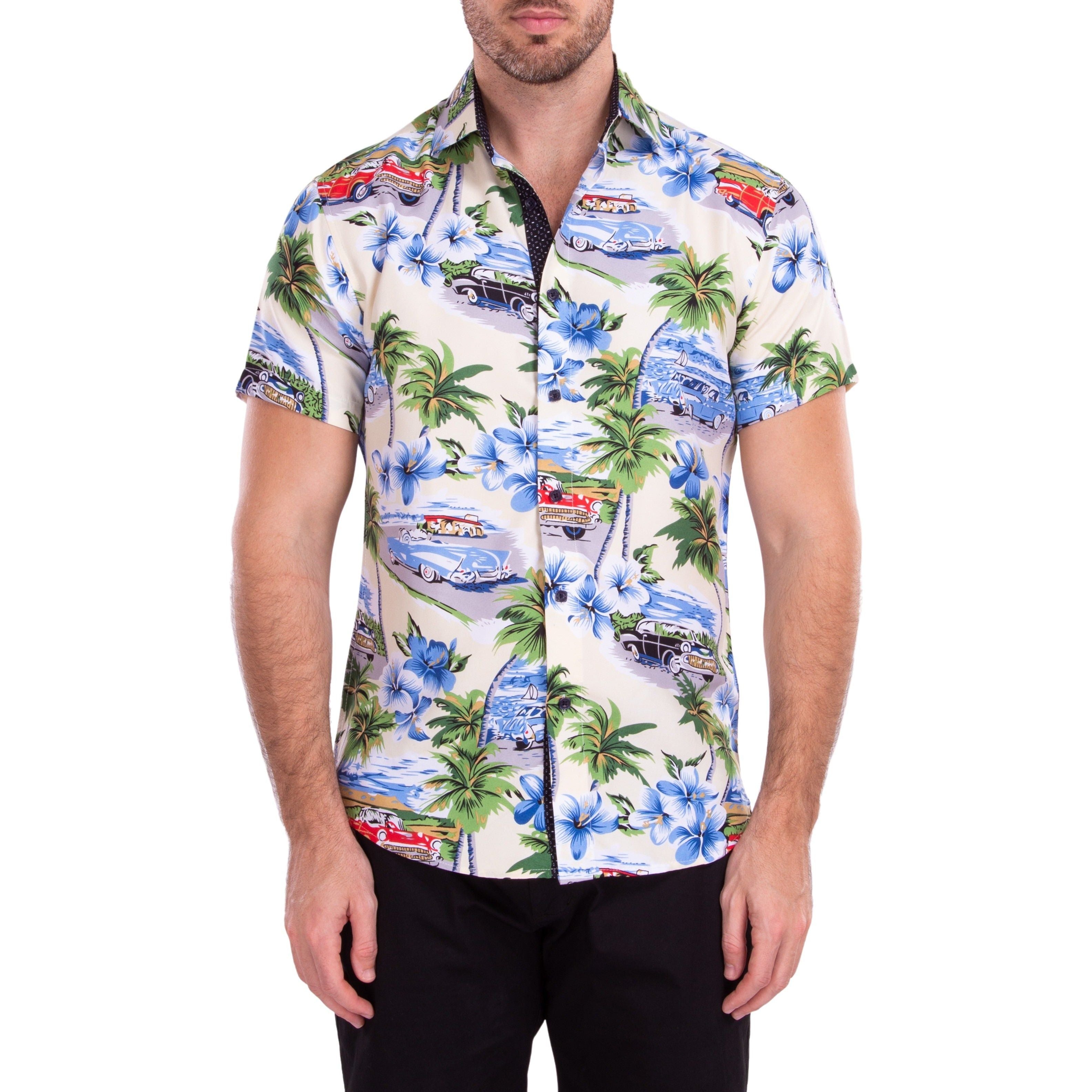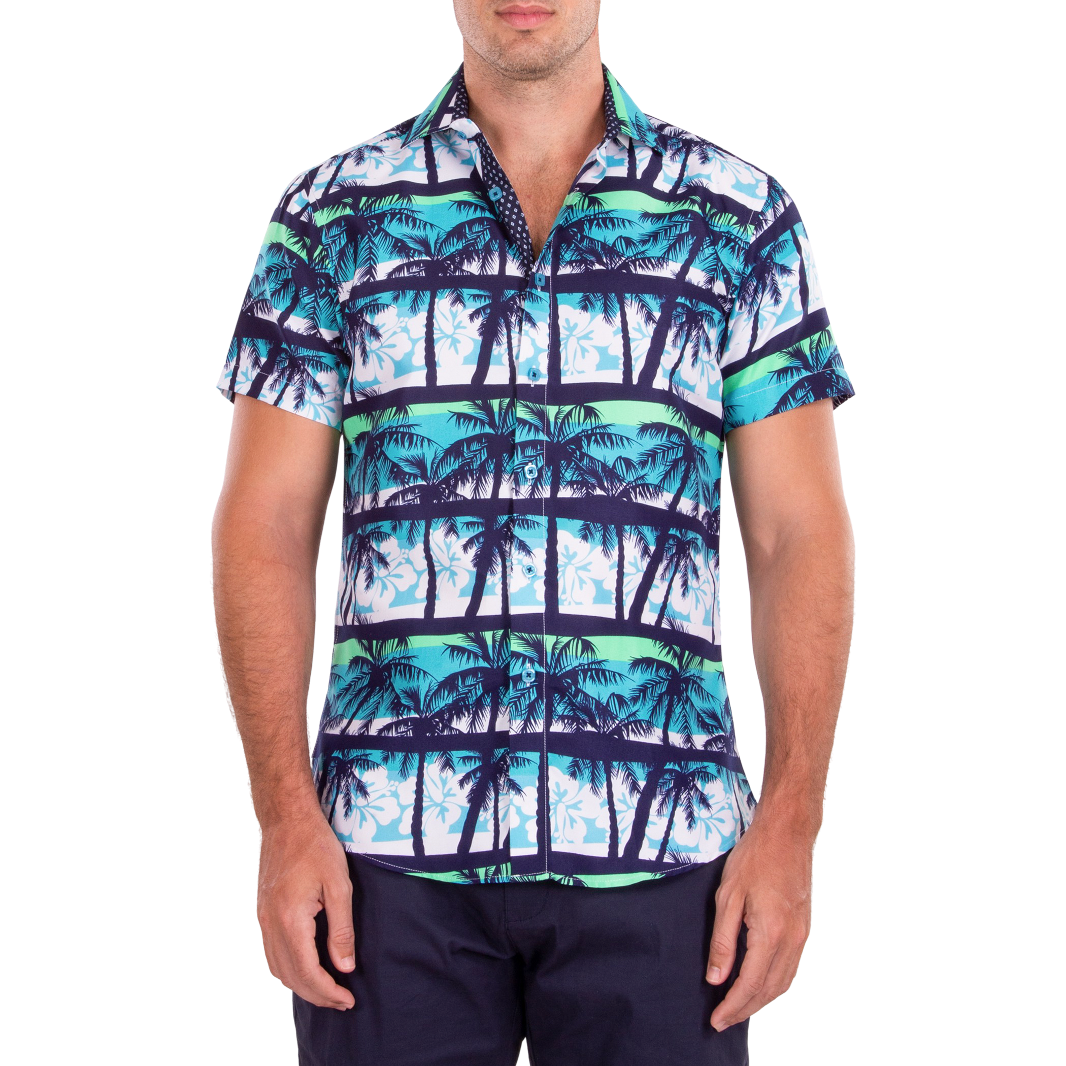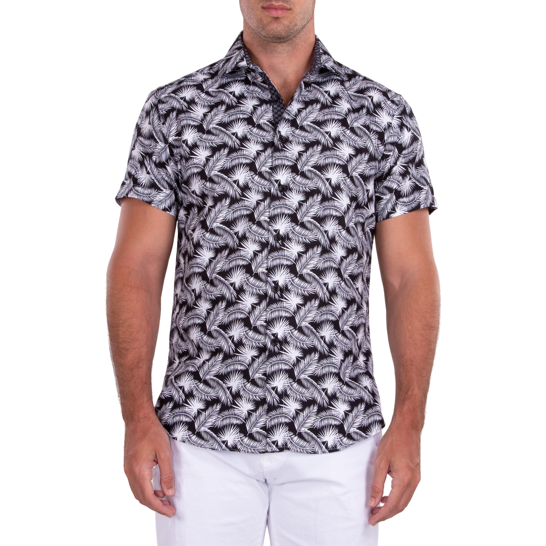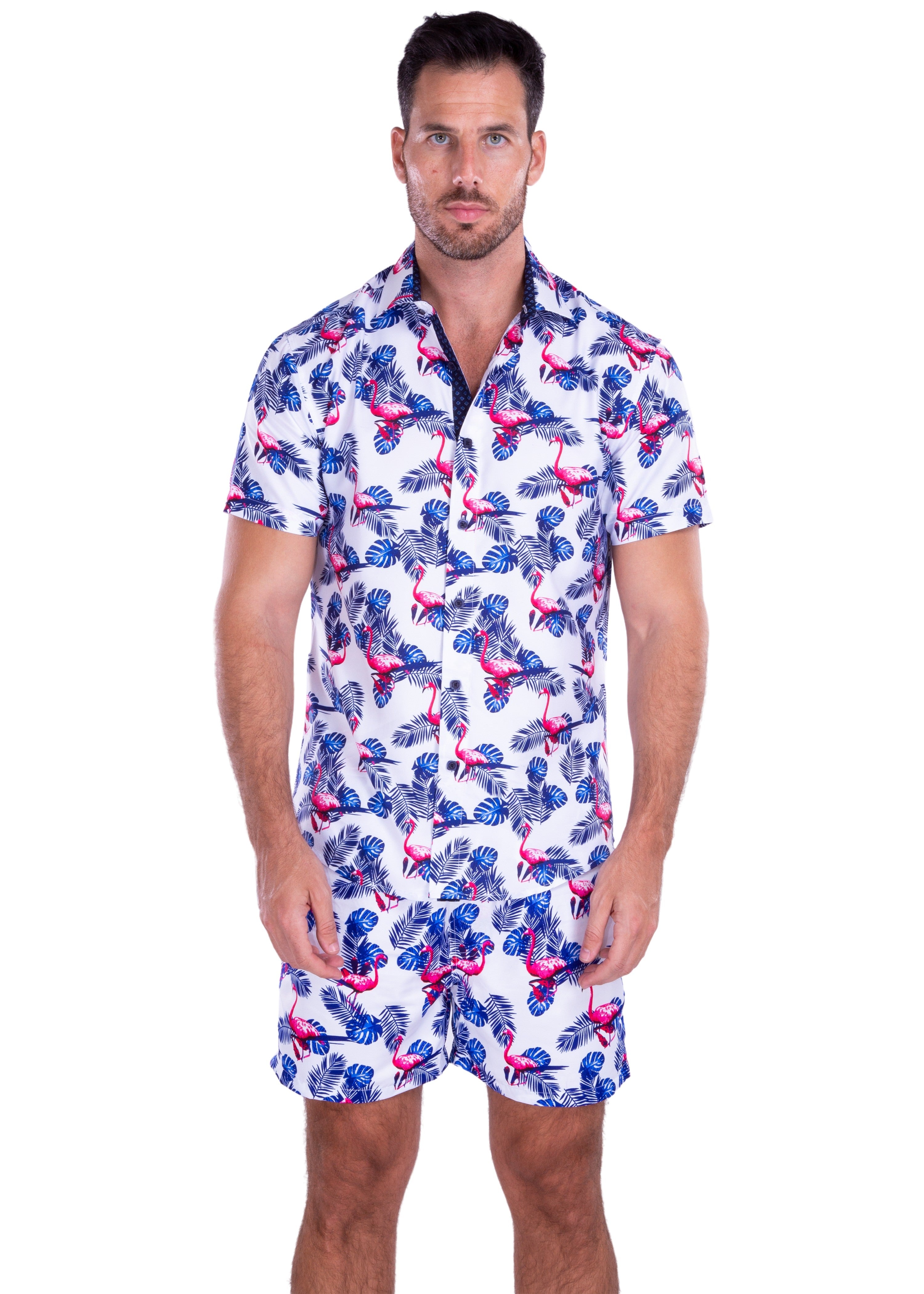 192020 - Pink Pineapple Print Button Up Short Sleeve Dress Shirt