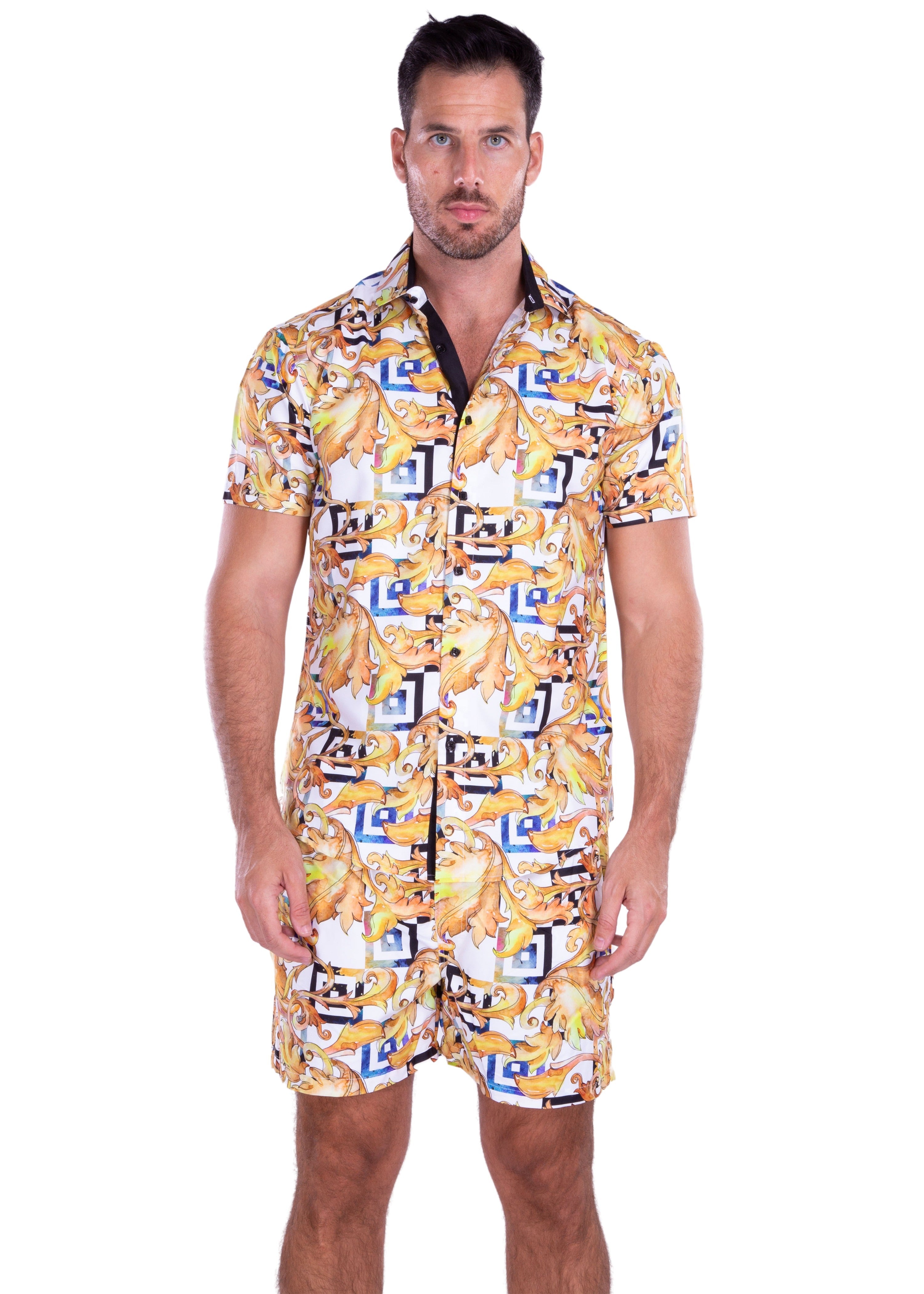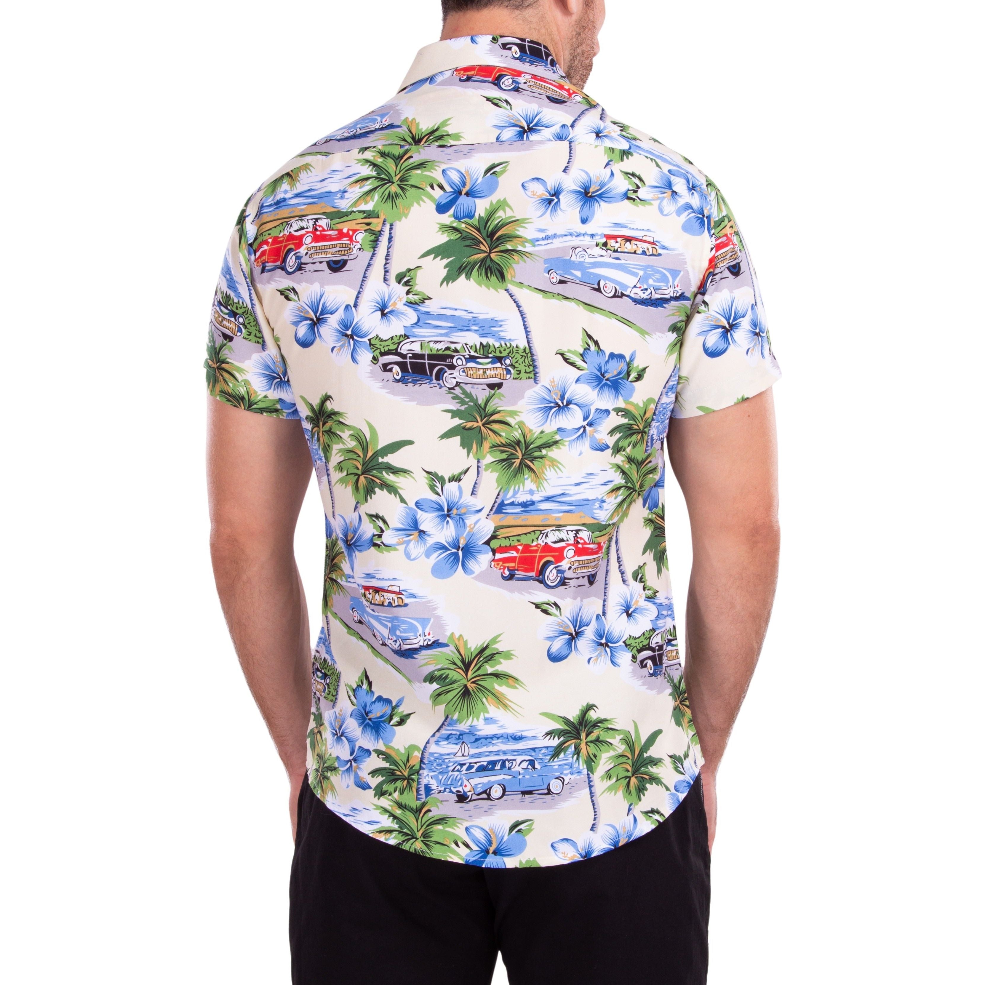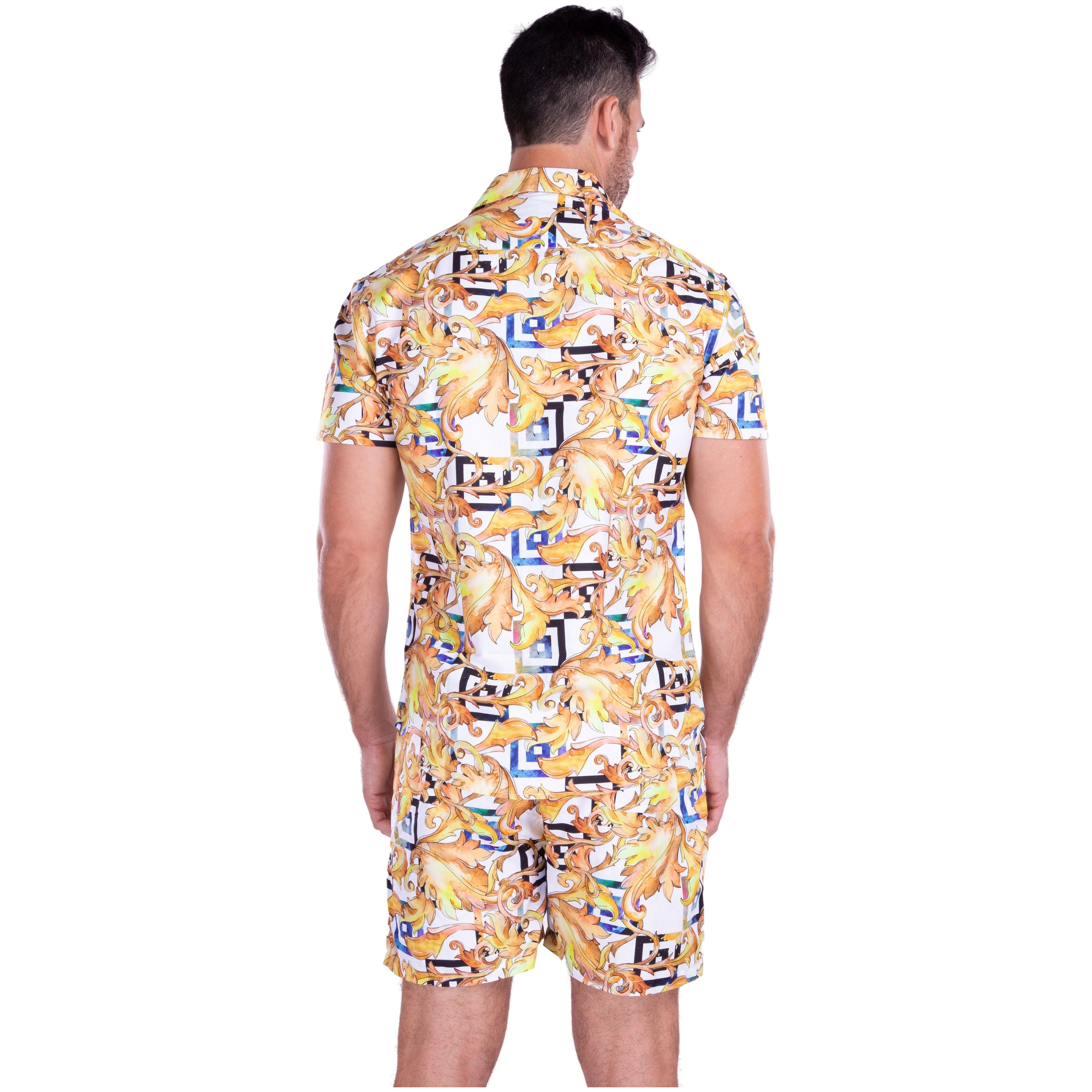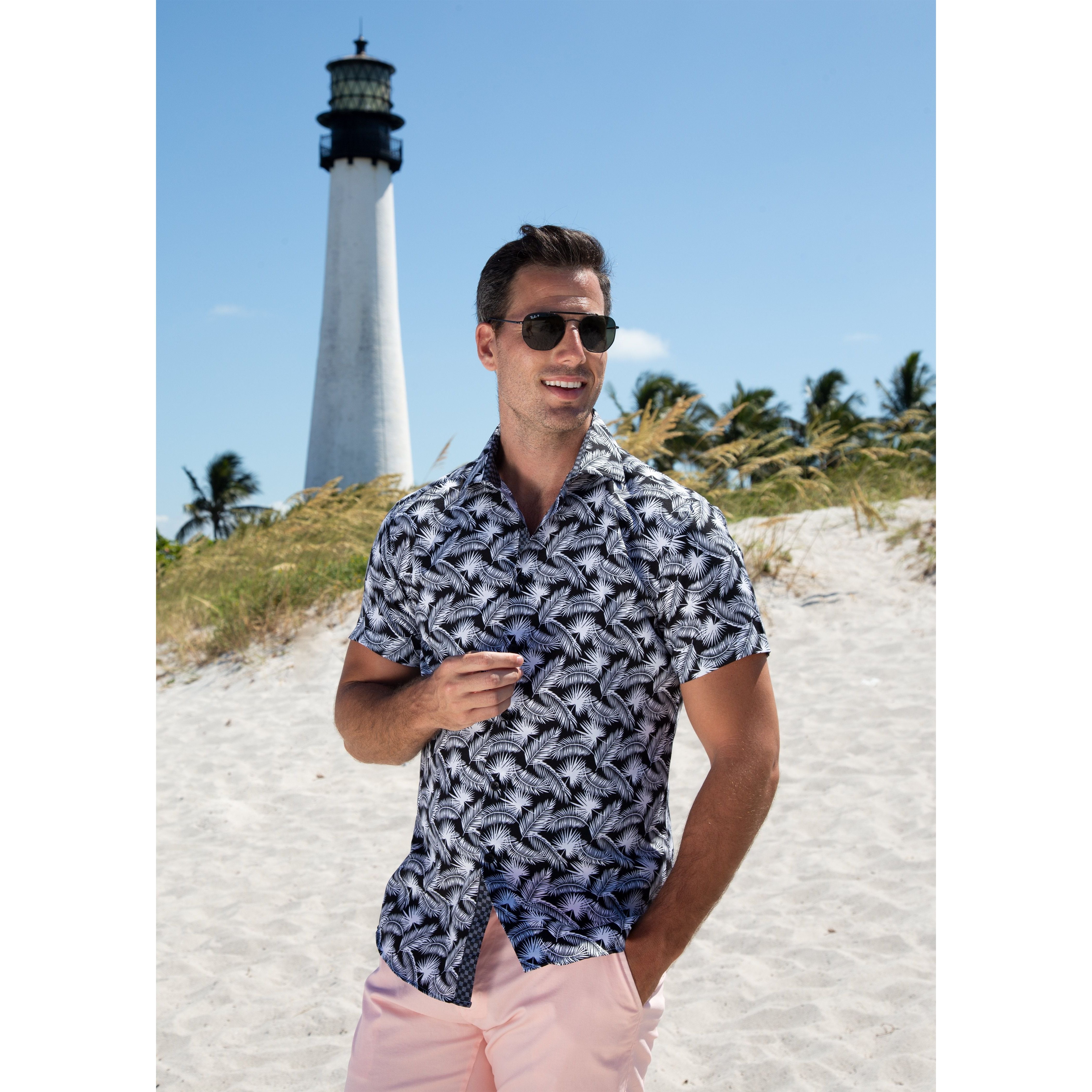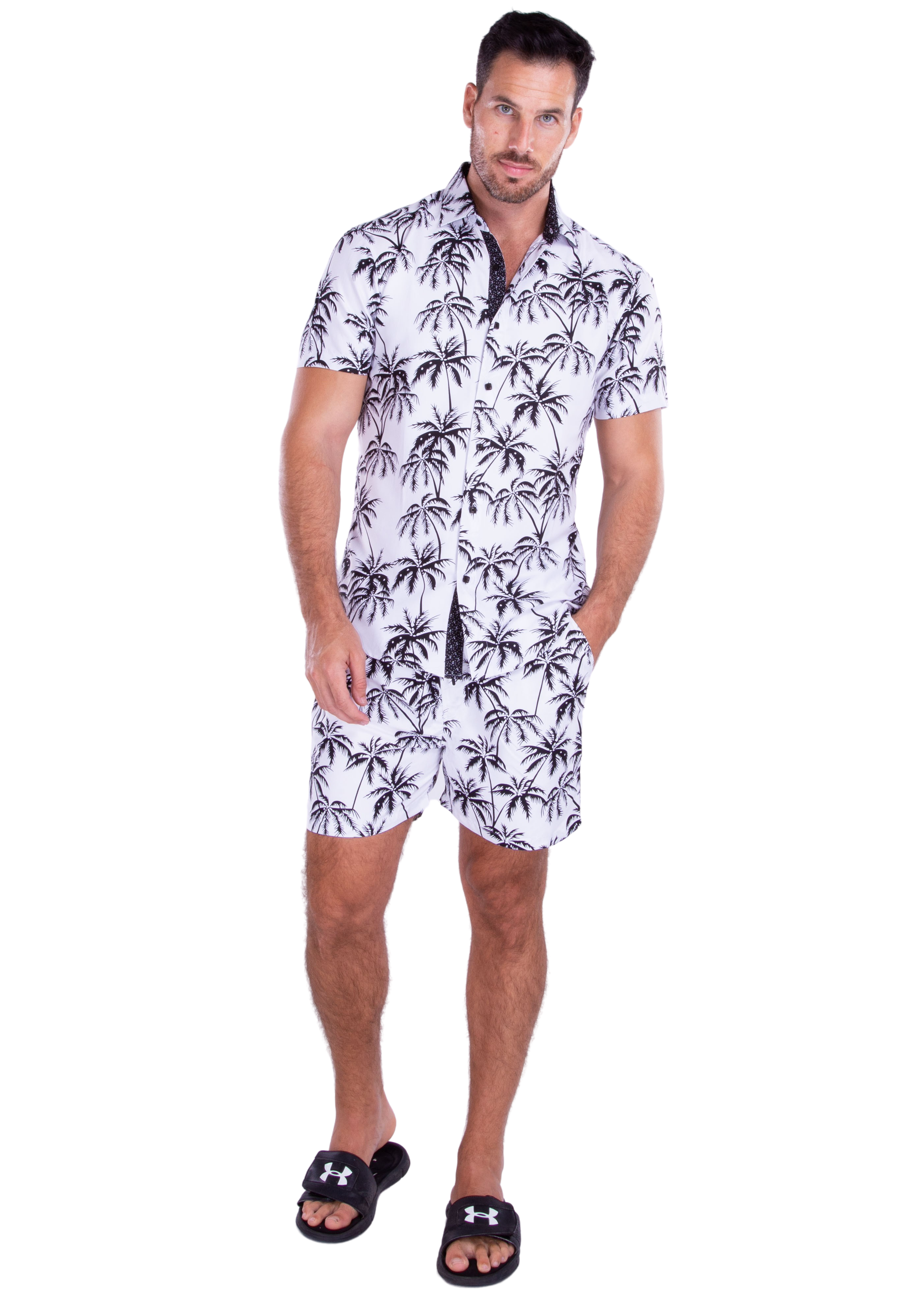 192020 - Pink Pineapple Print Button Up Short Sleeve Dress Shirt