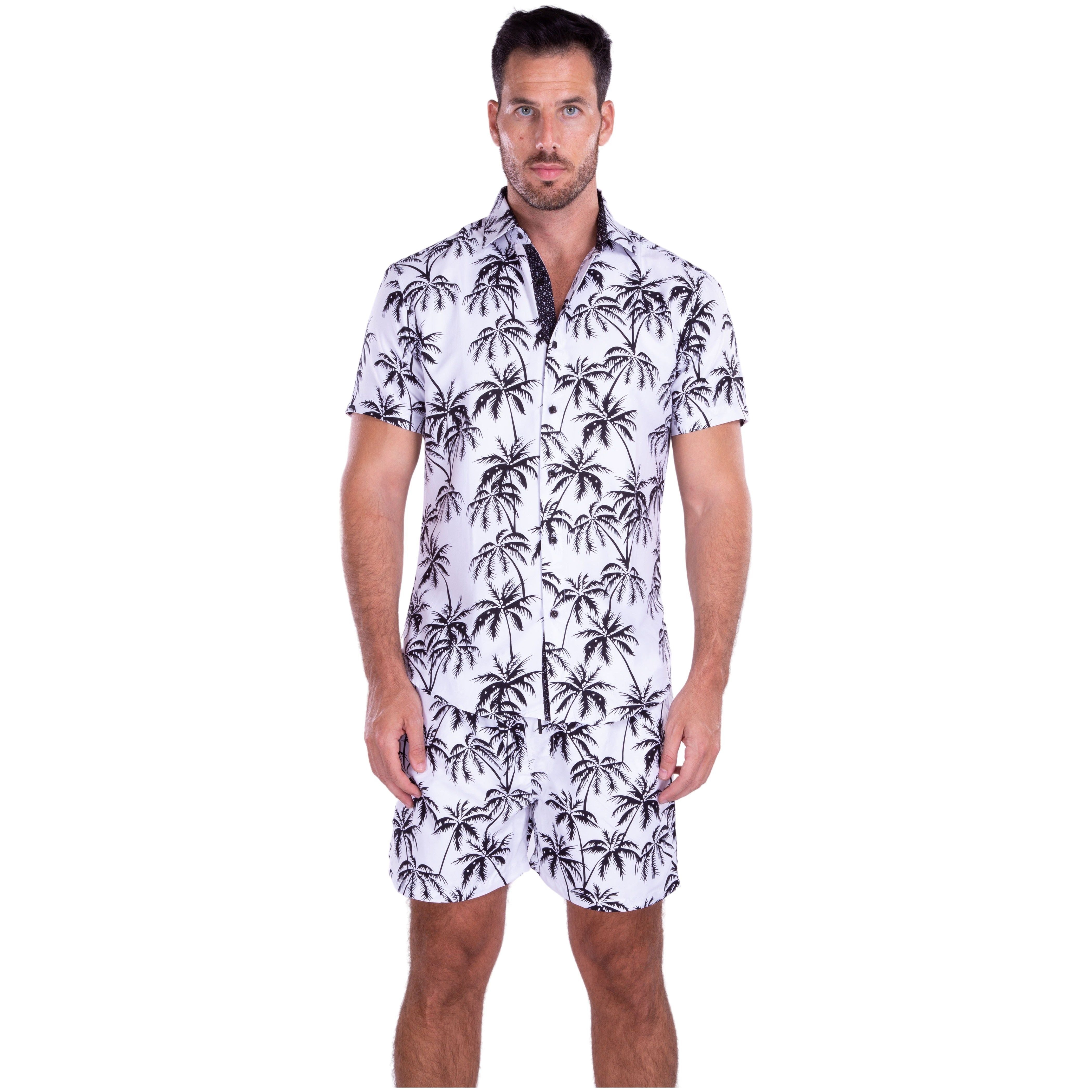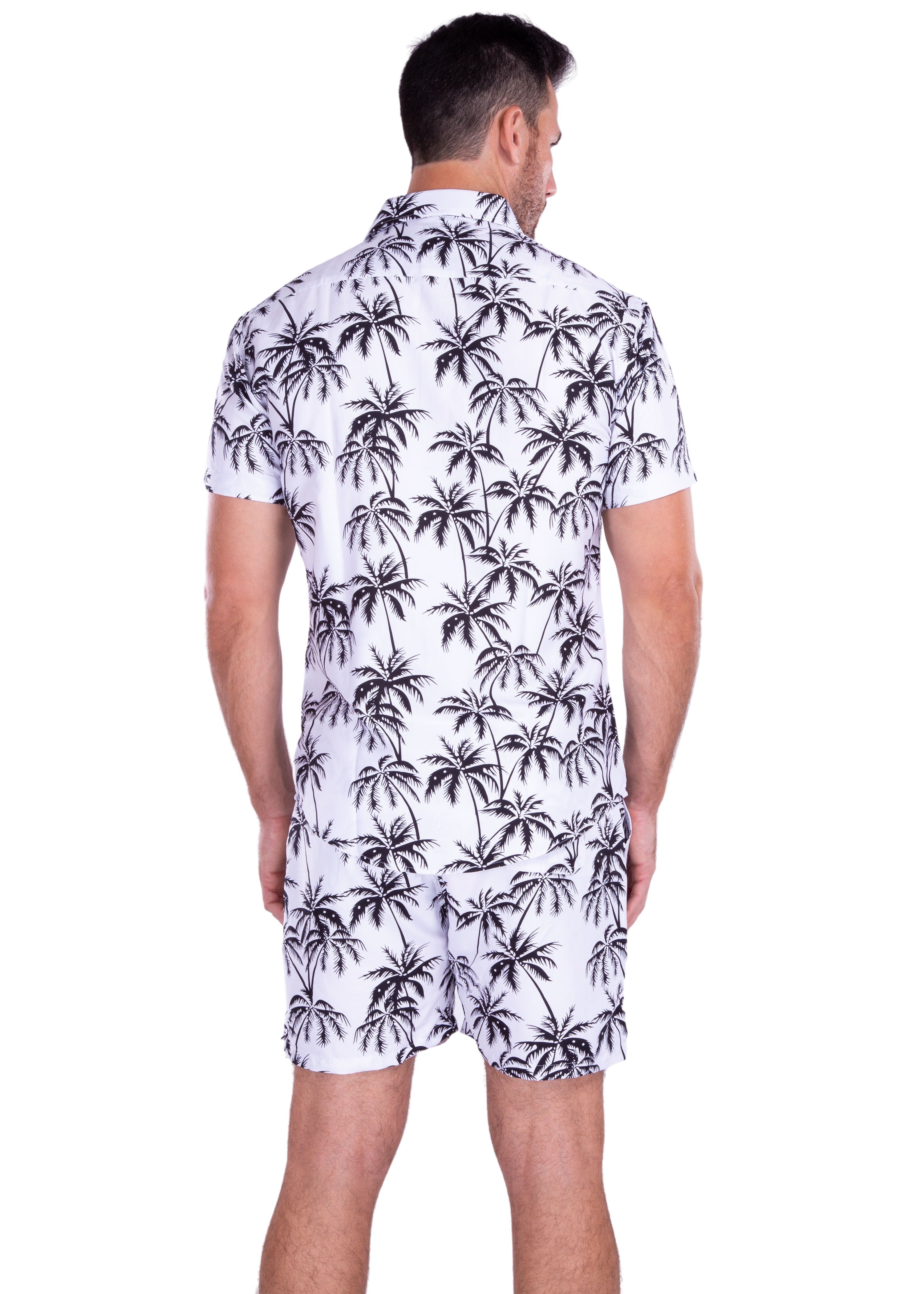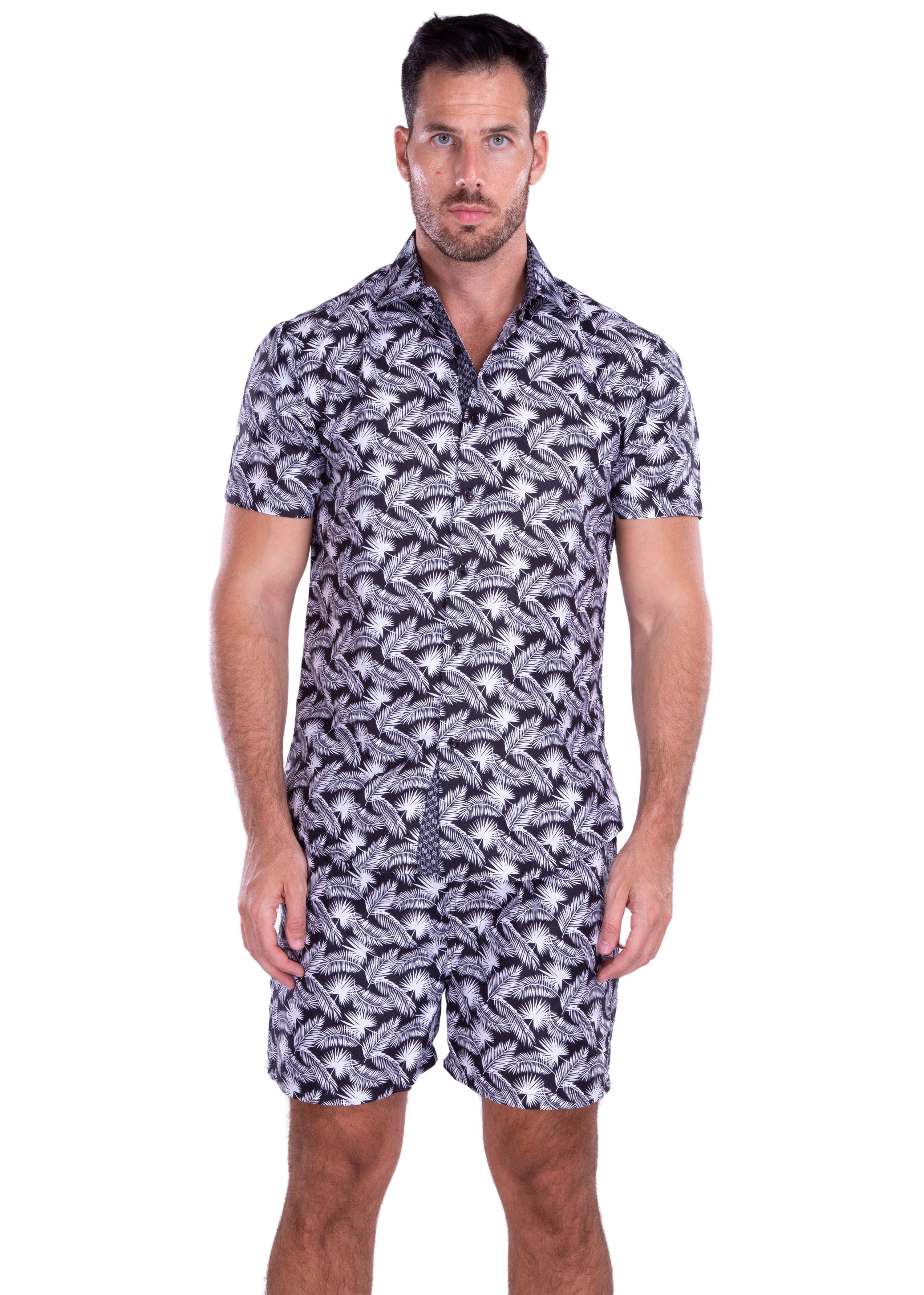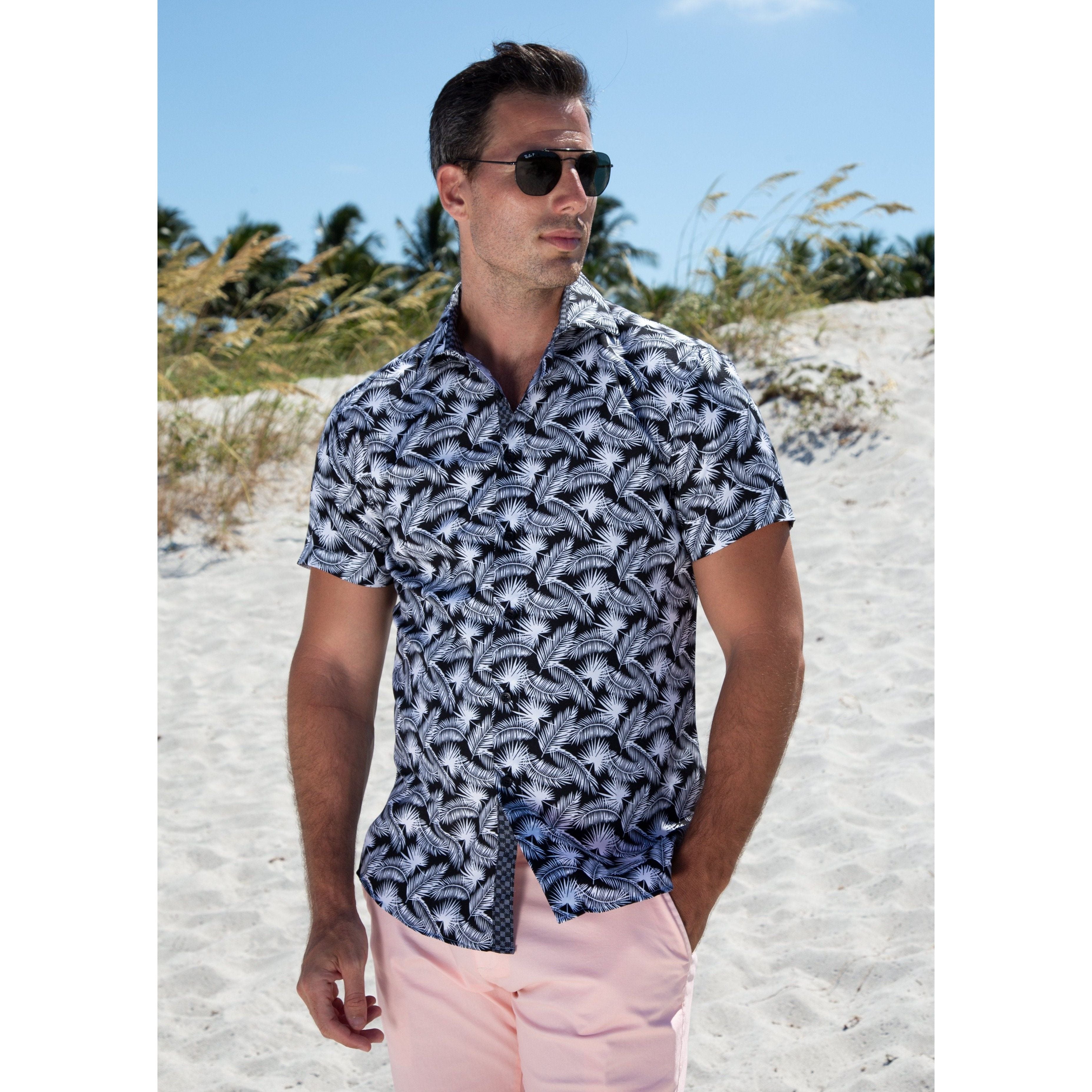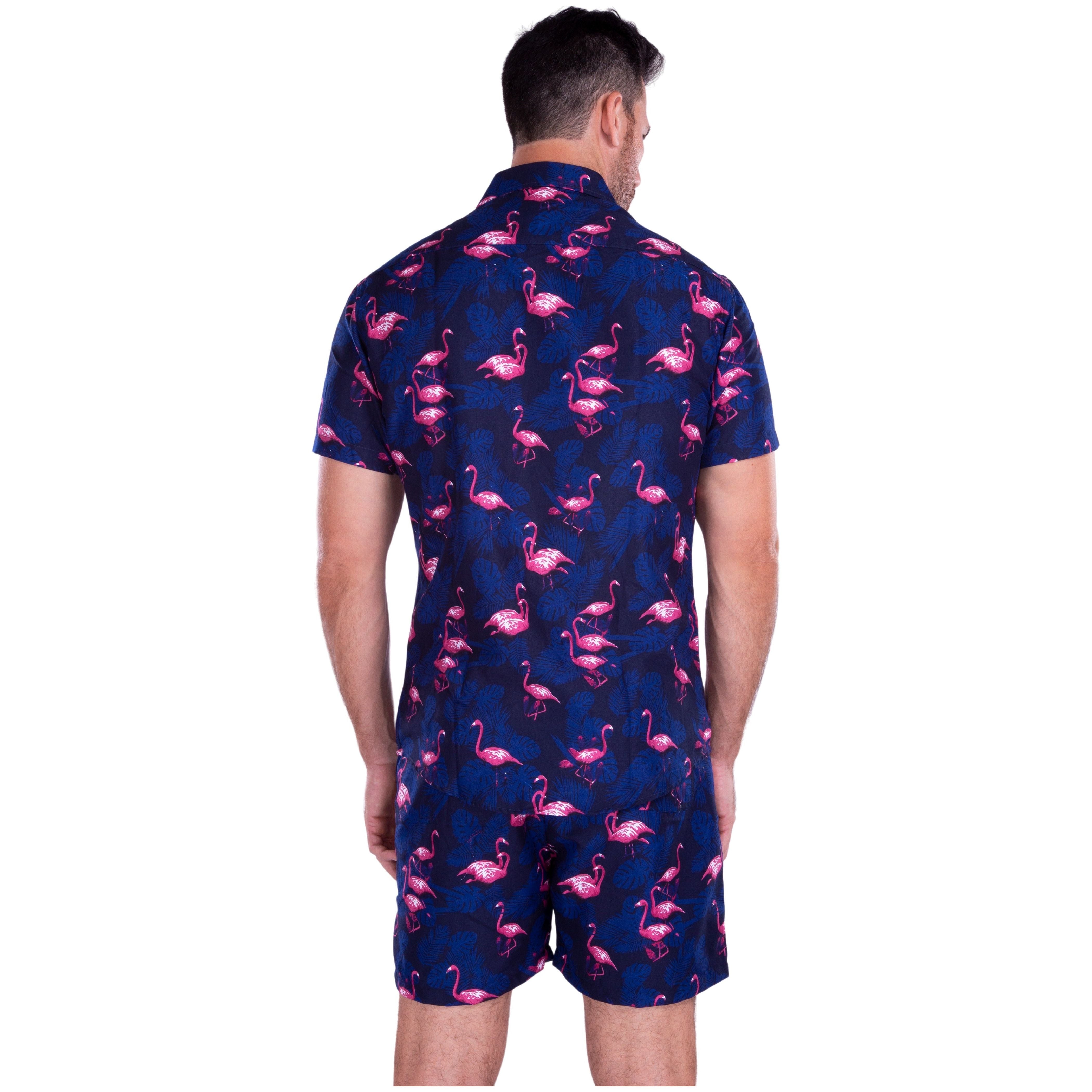 192020 - Pink Pineapple Print Button Up Short Sleeve Dress Shirt