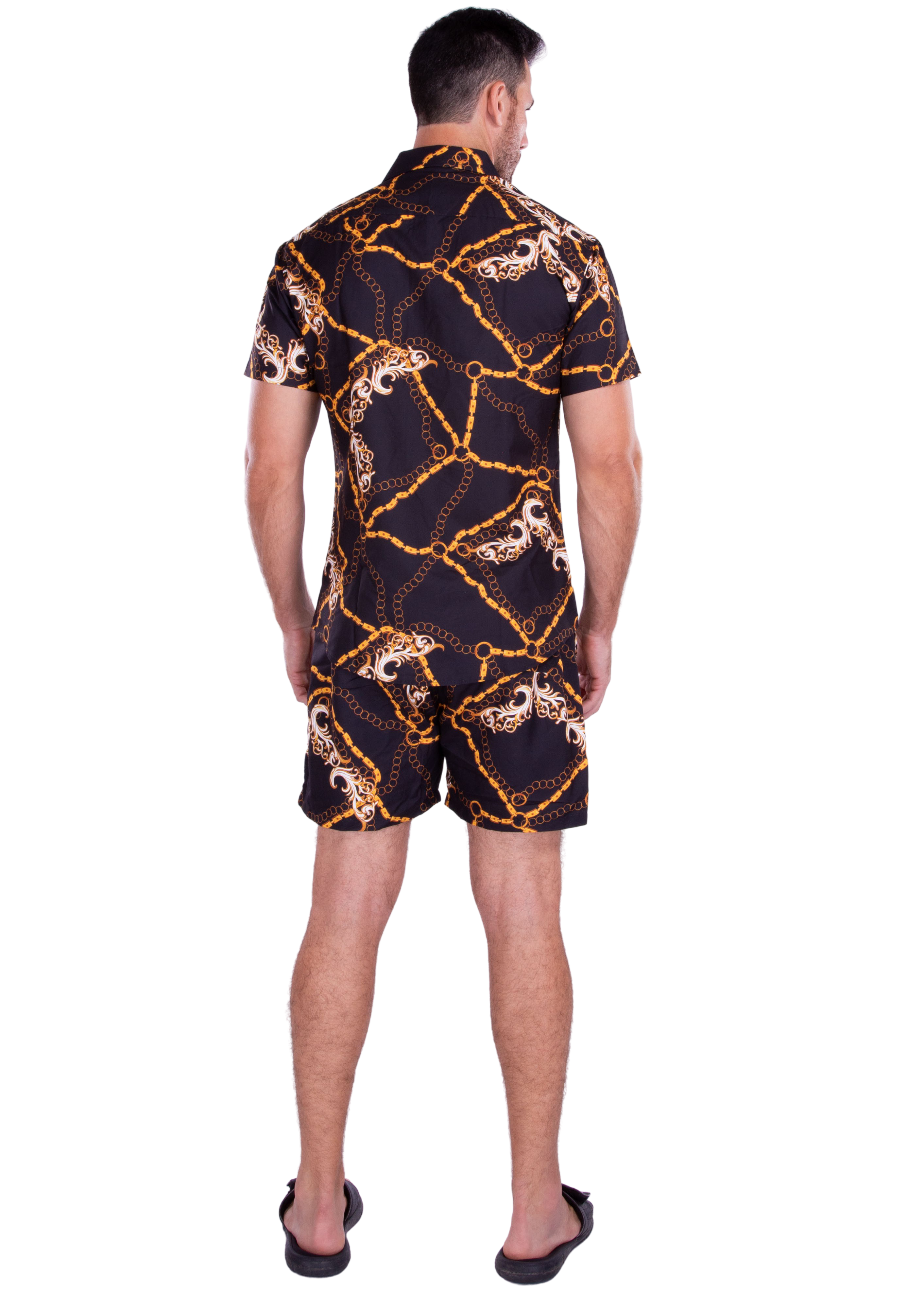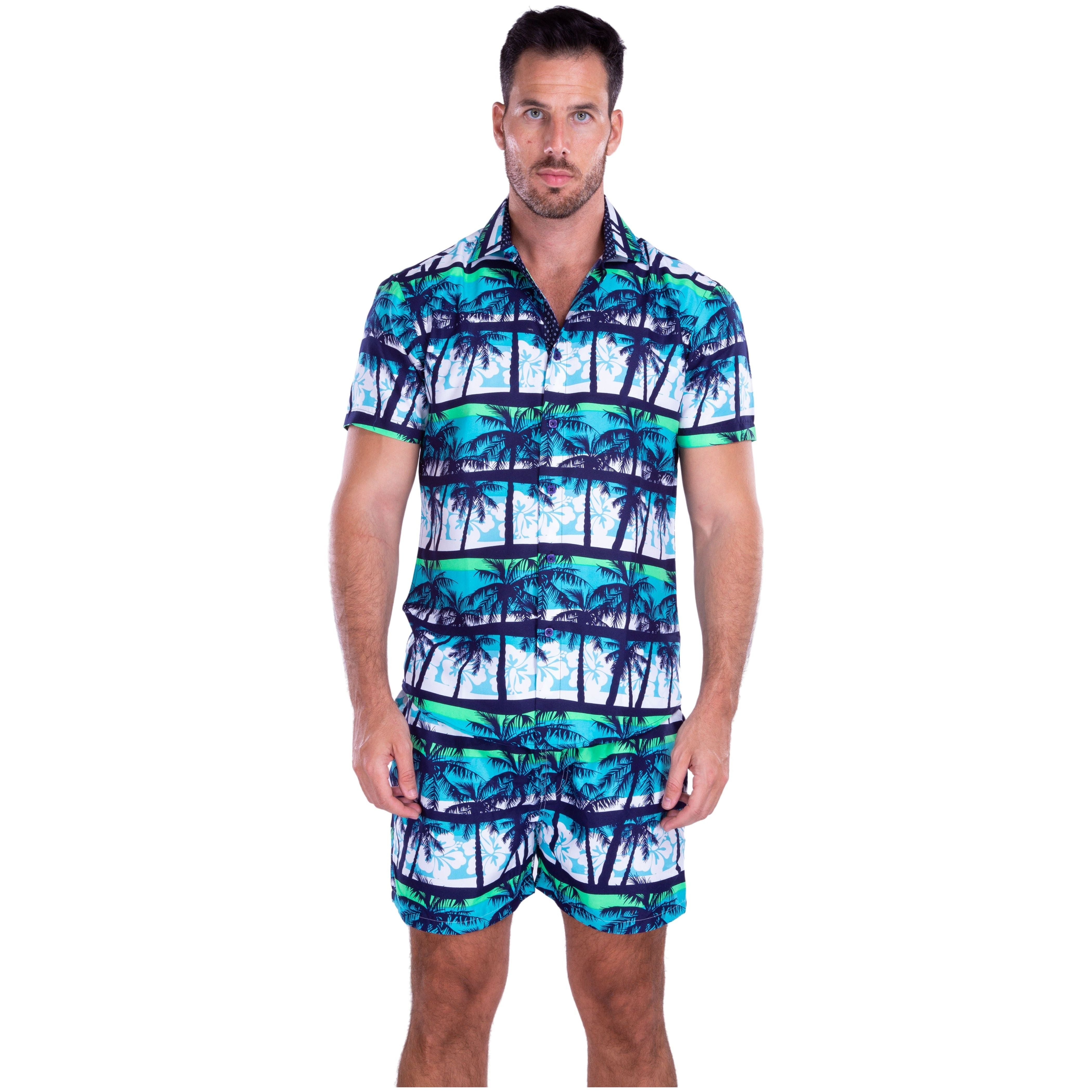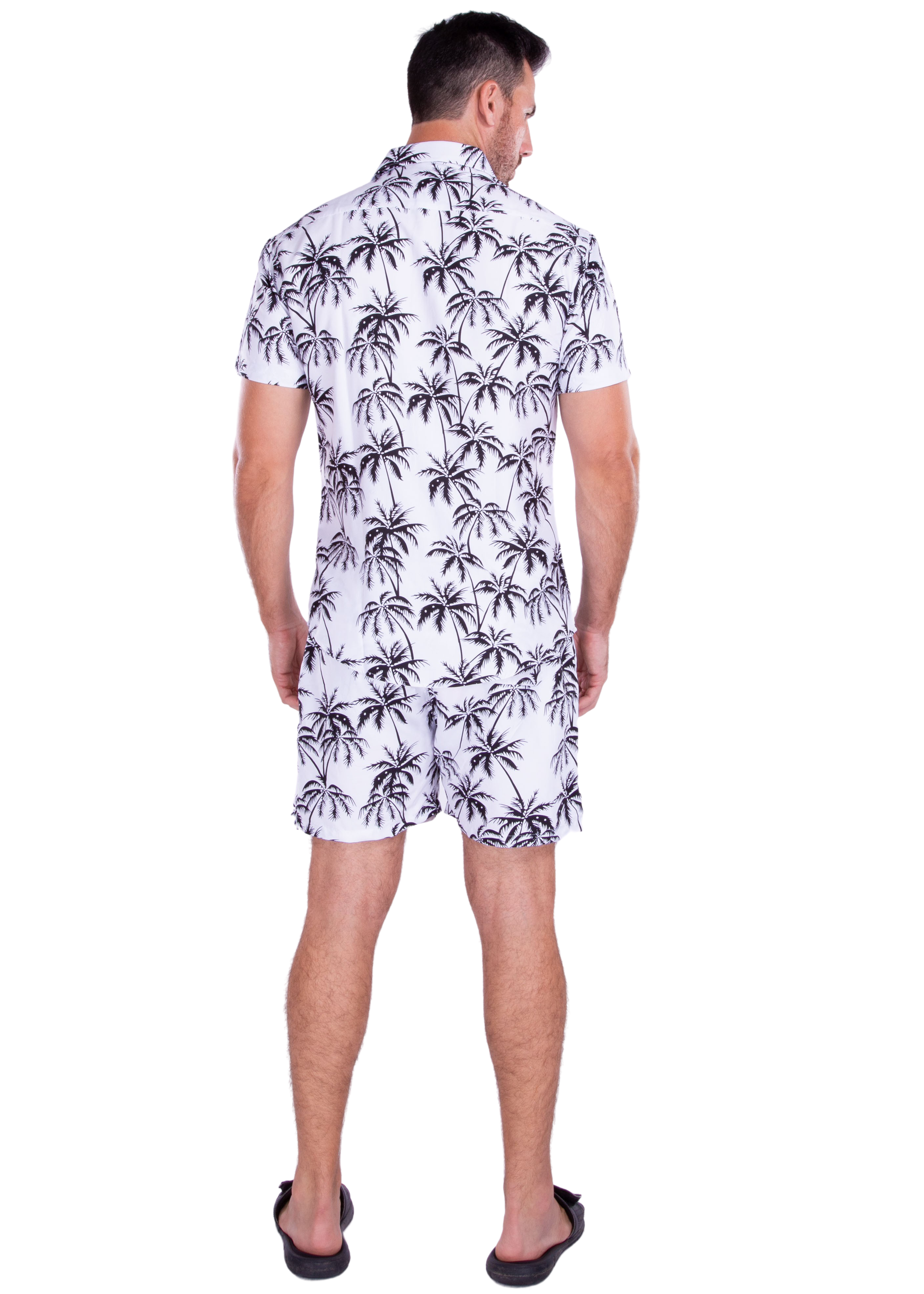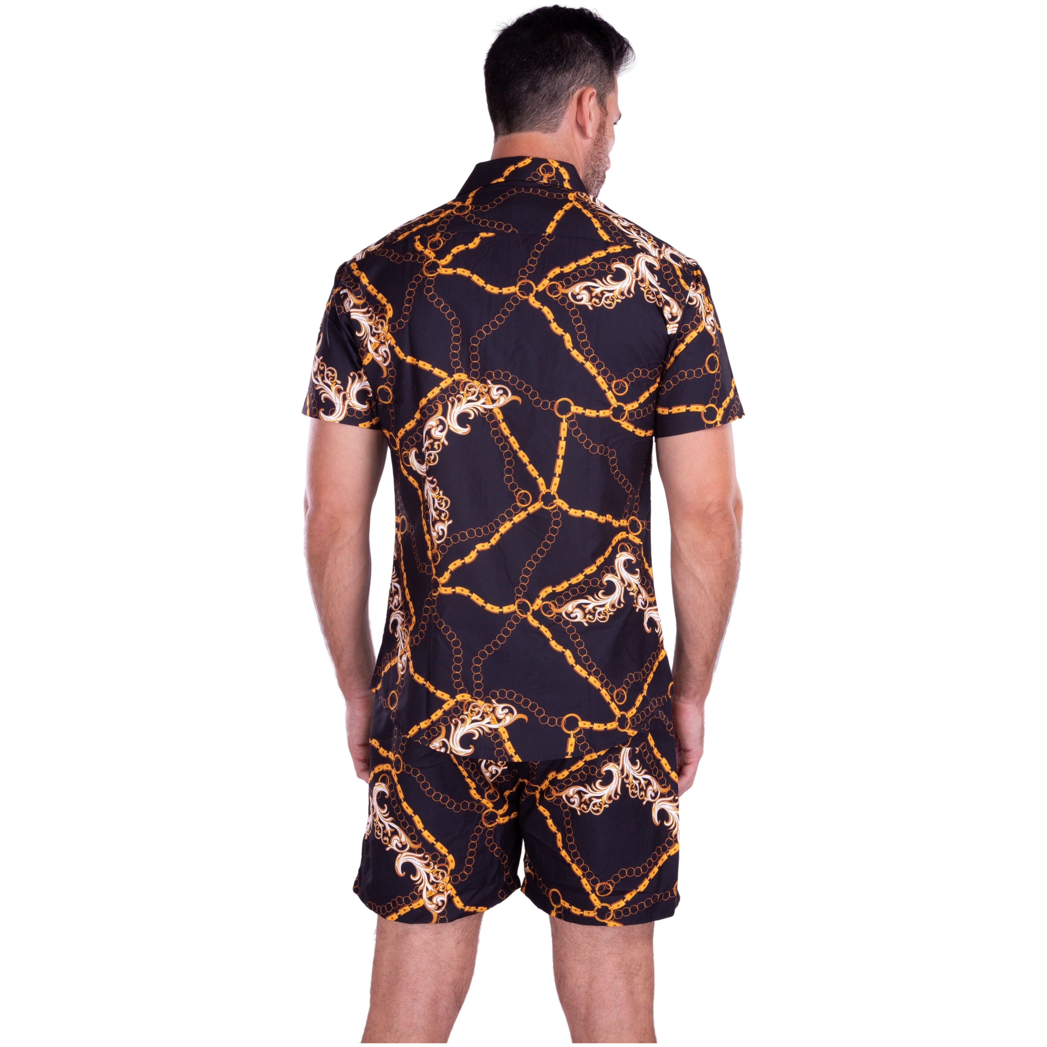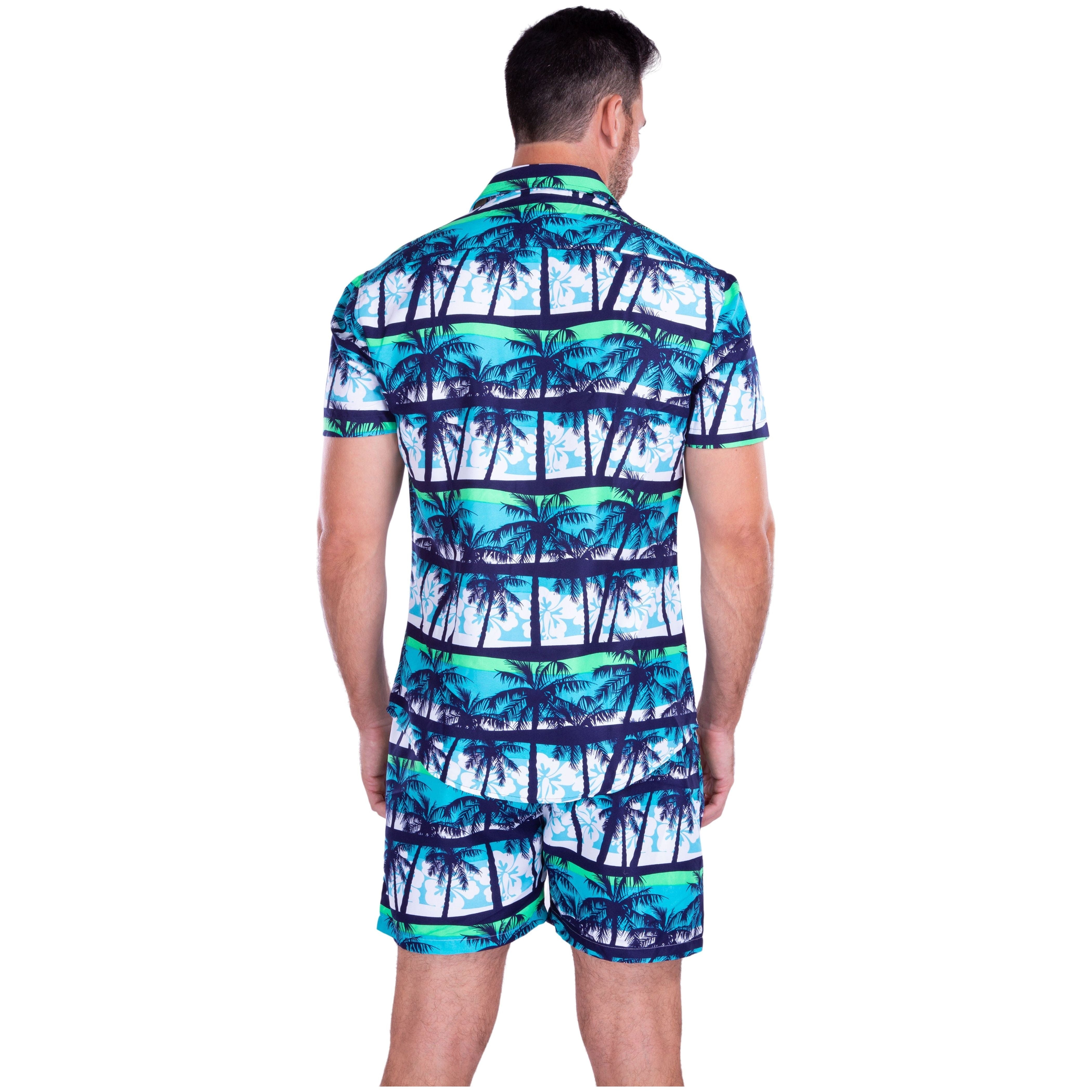 192020 - Pink Pineapple Print Button Up Short Sleeve Dress Shirt