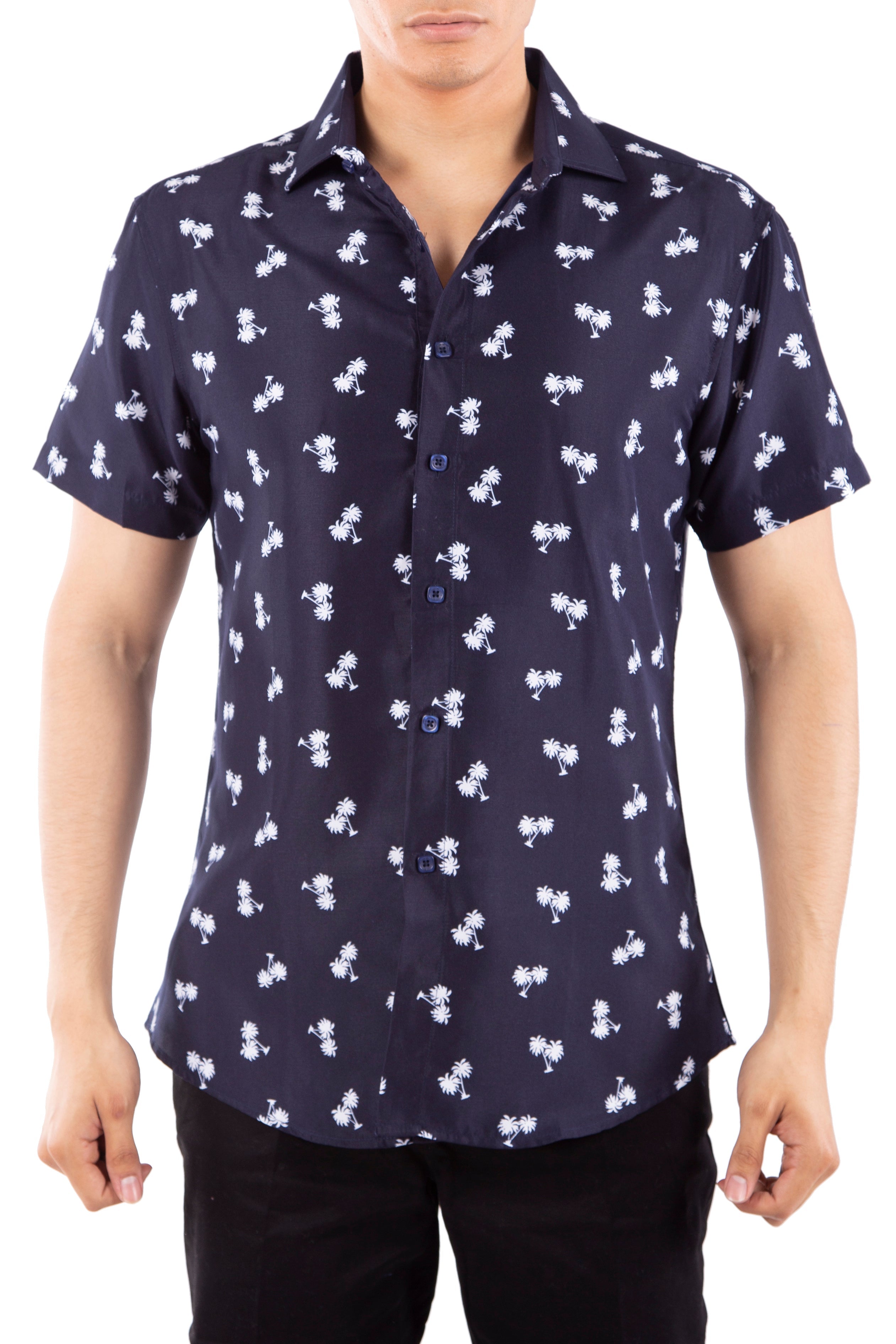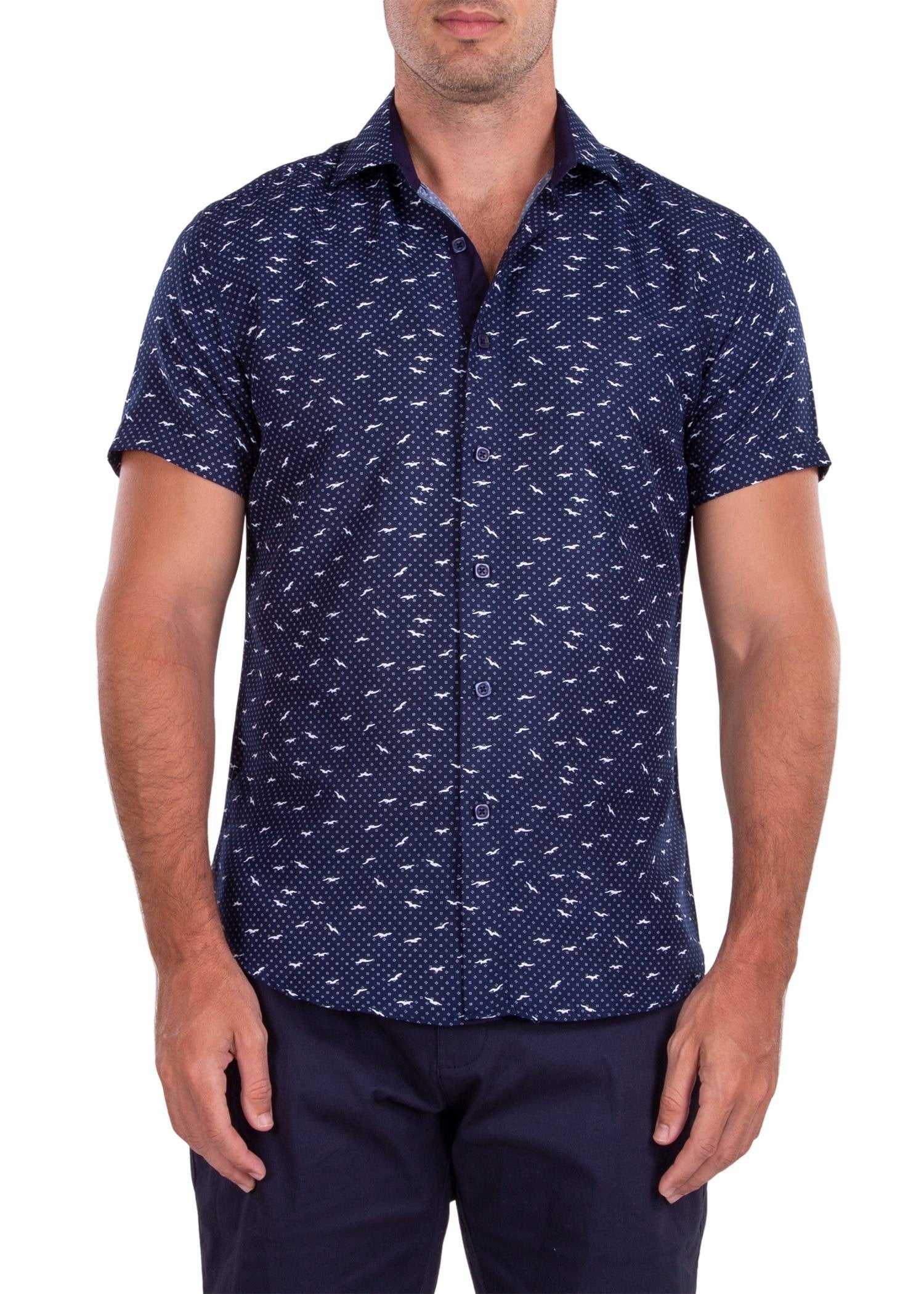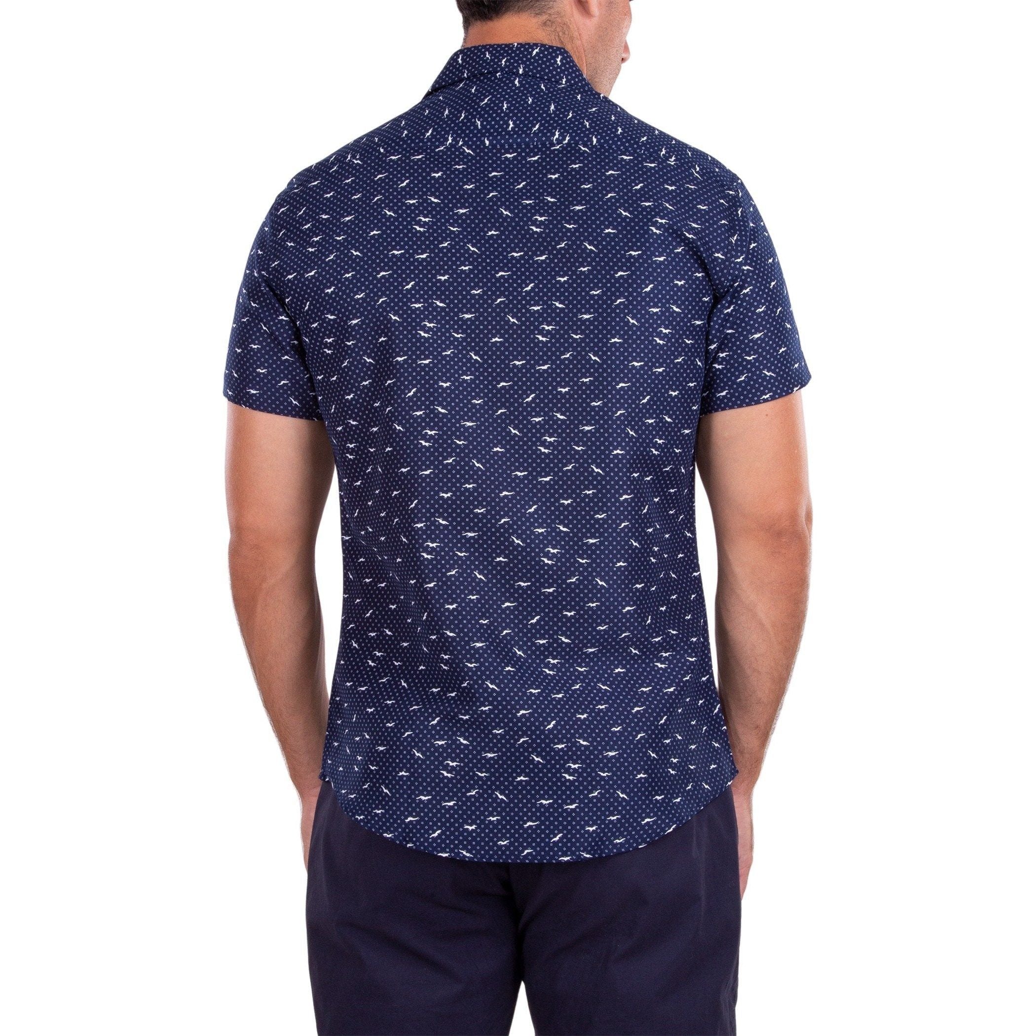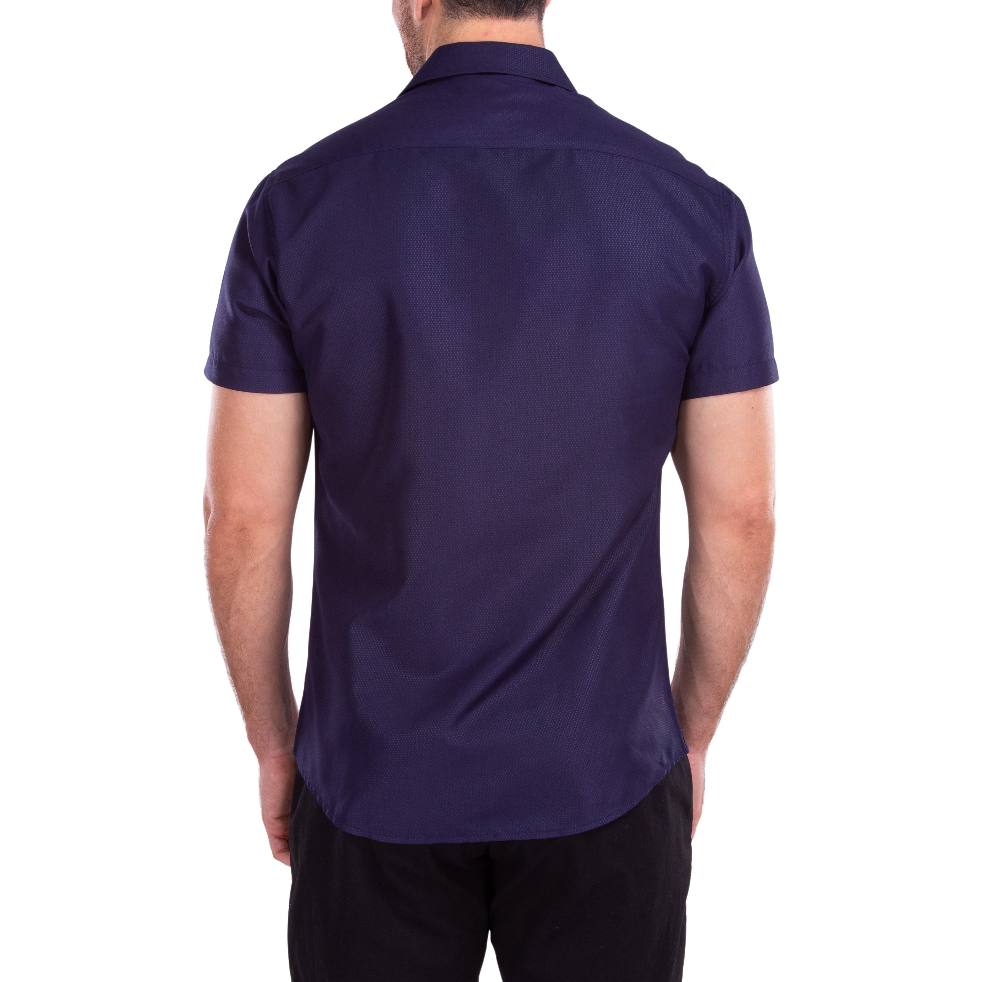 202009 - Navy Button Up Short Sleeve Dress Shirt