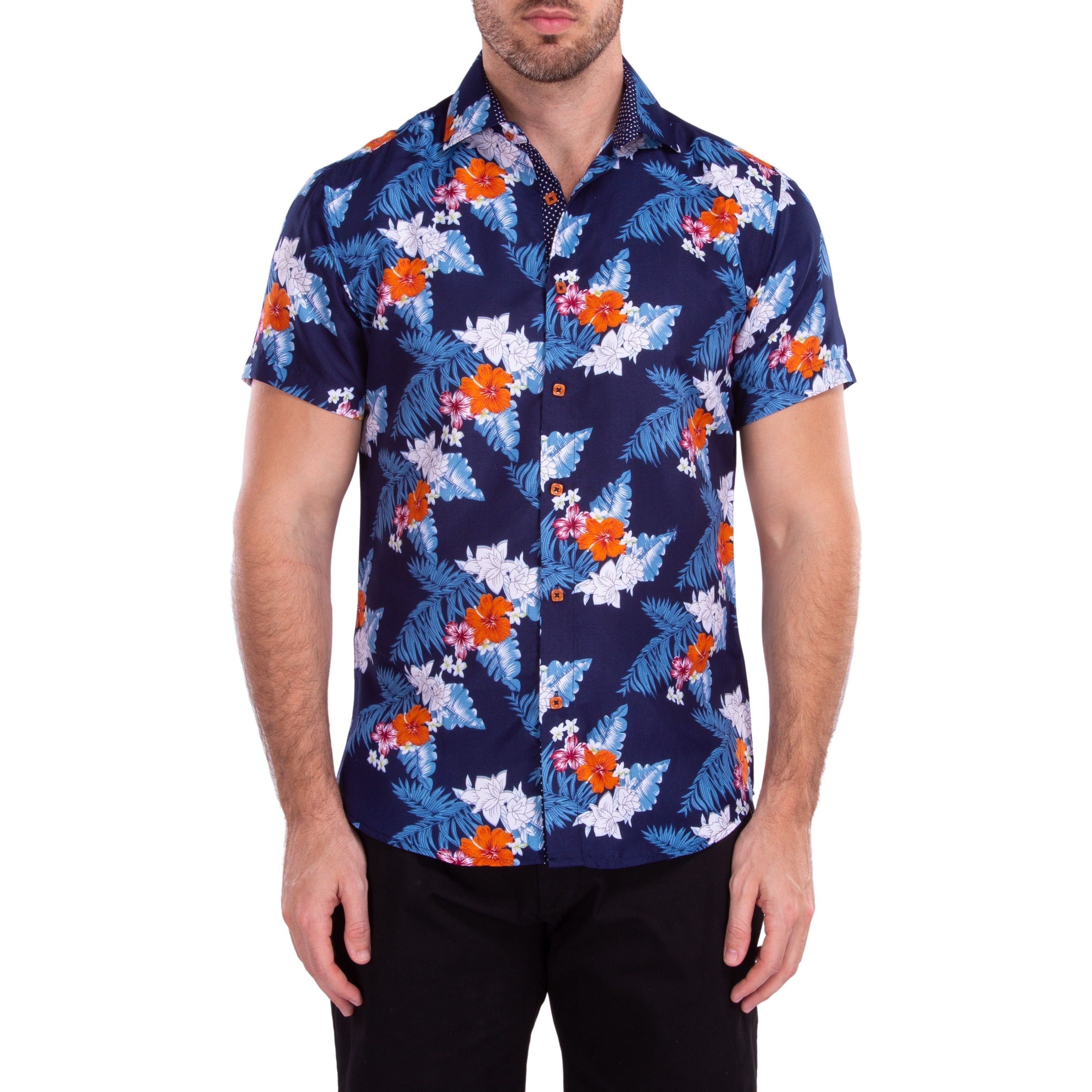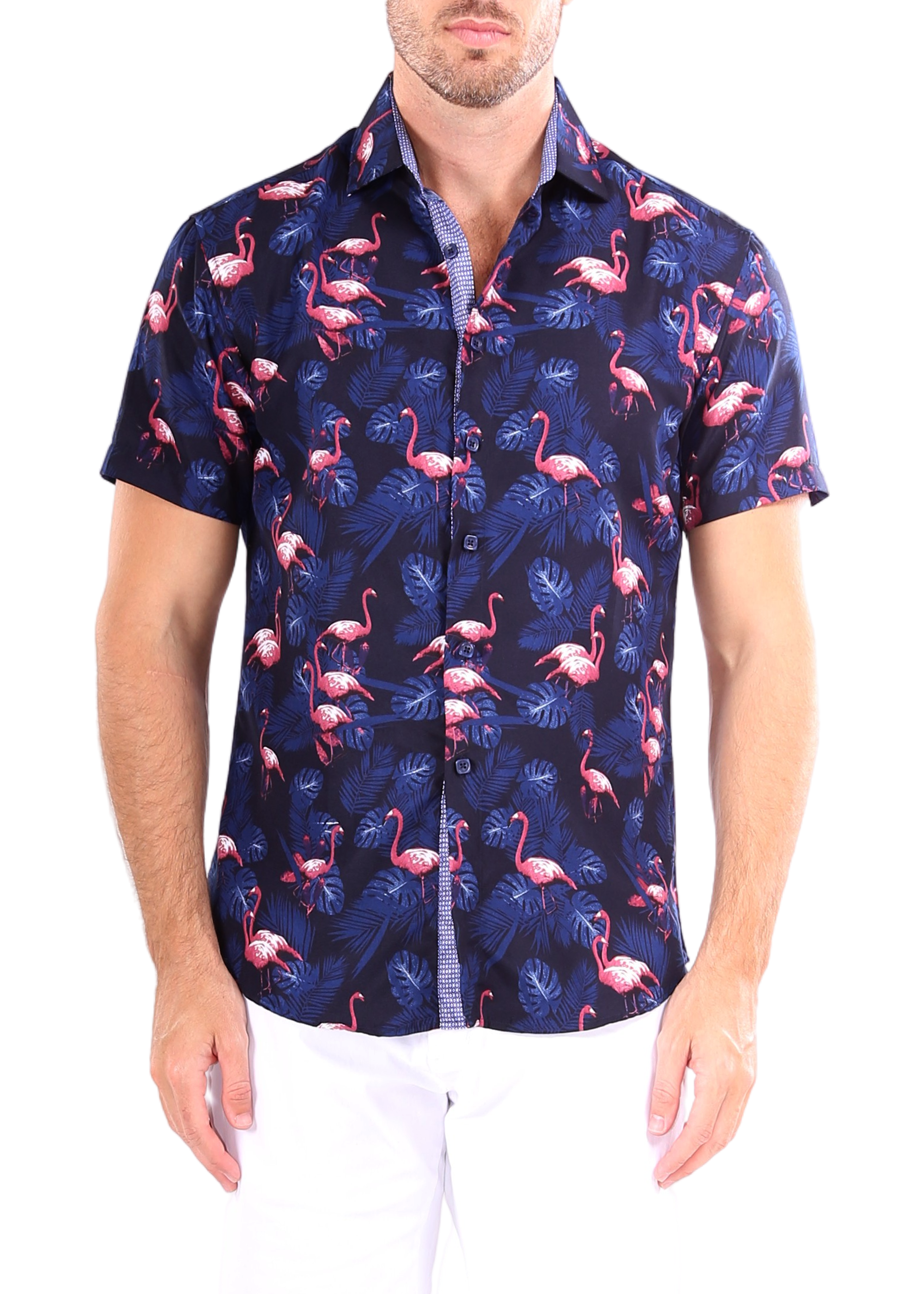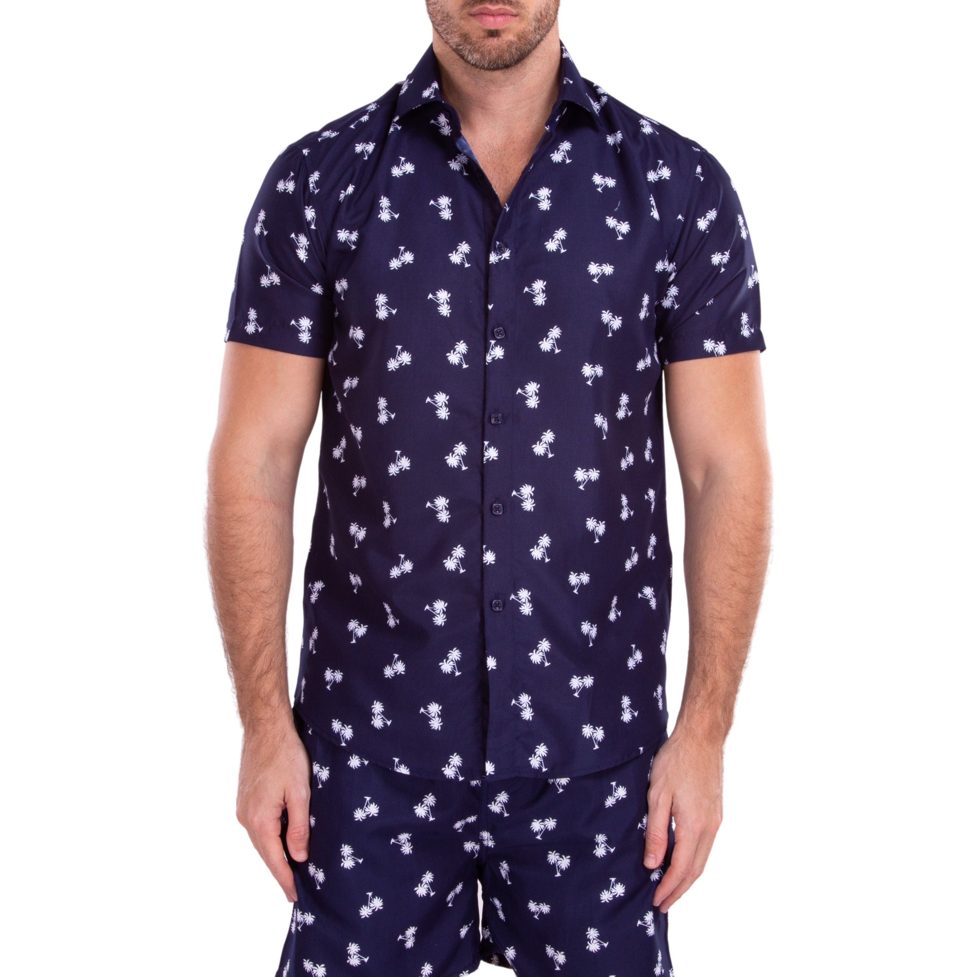 202009 - Navy Button Up Short Sleeve Dress Shirt