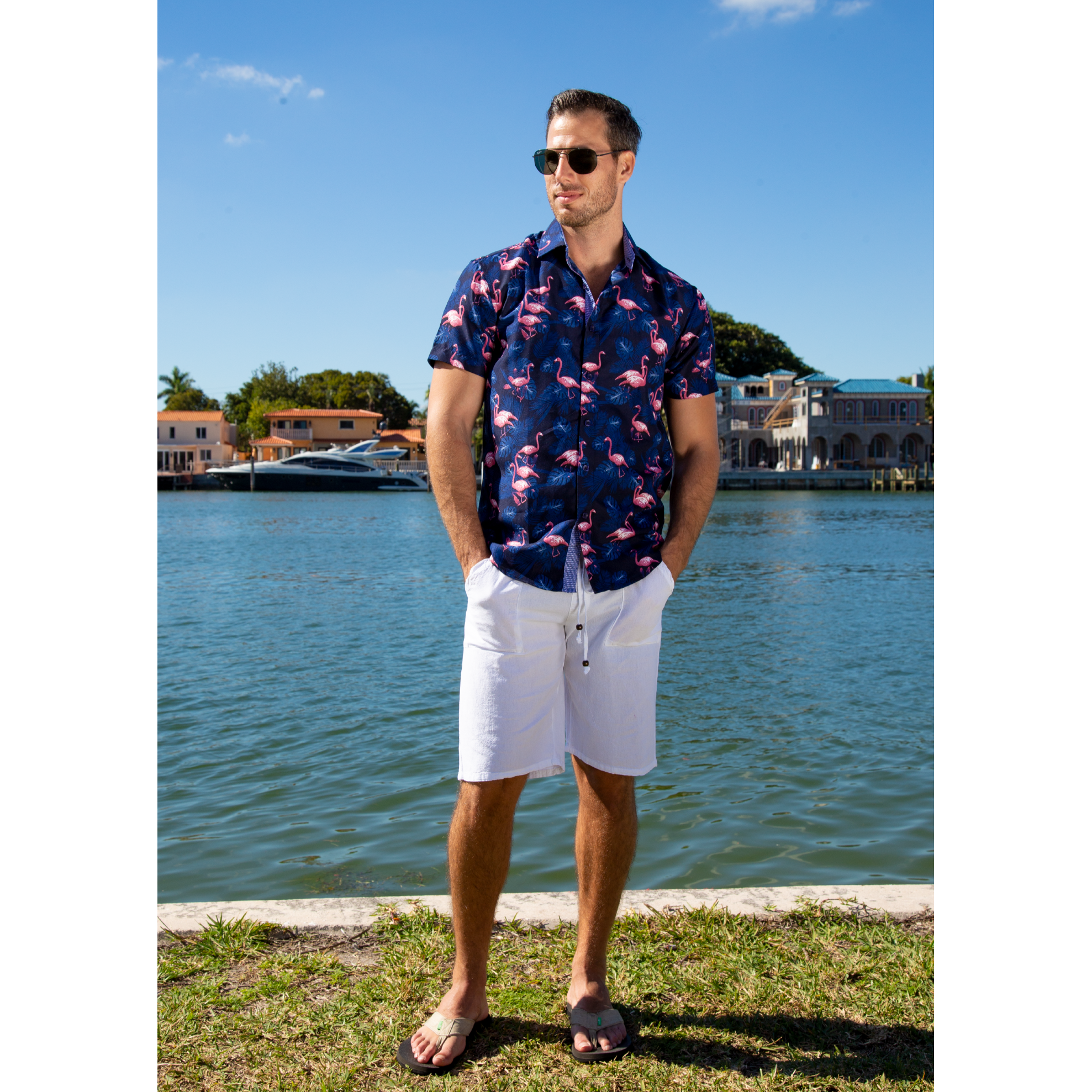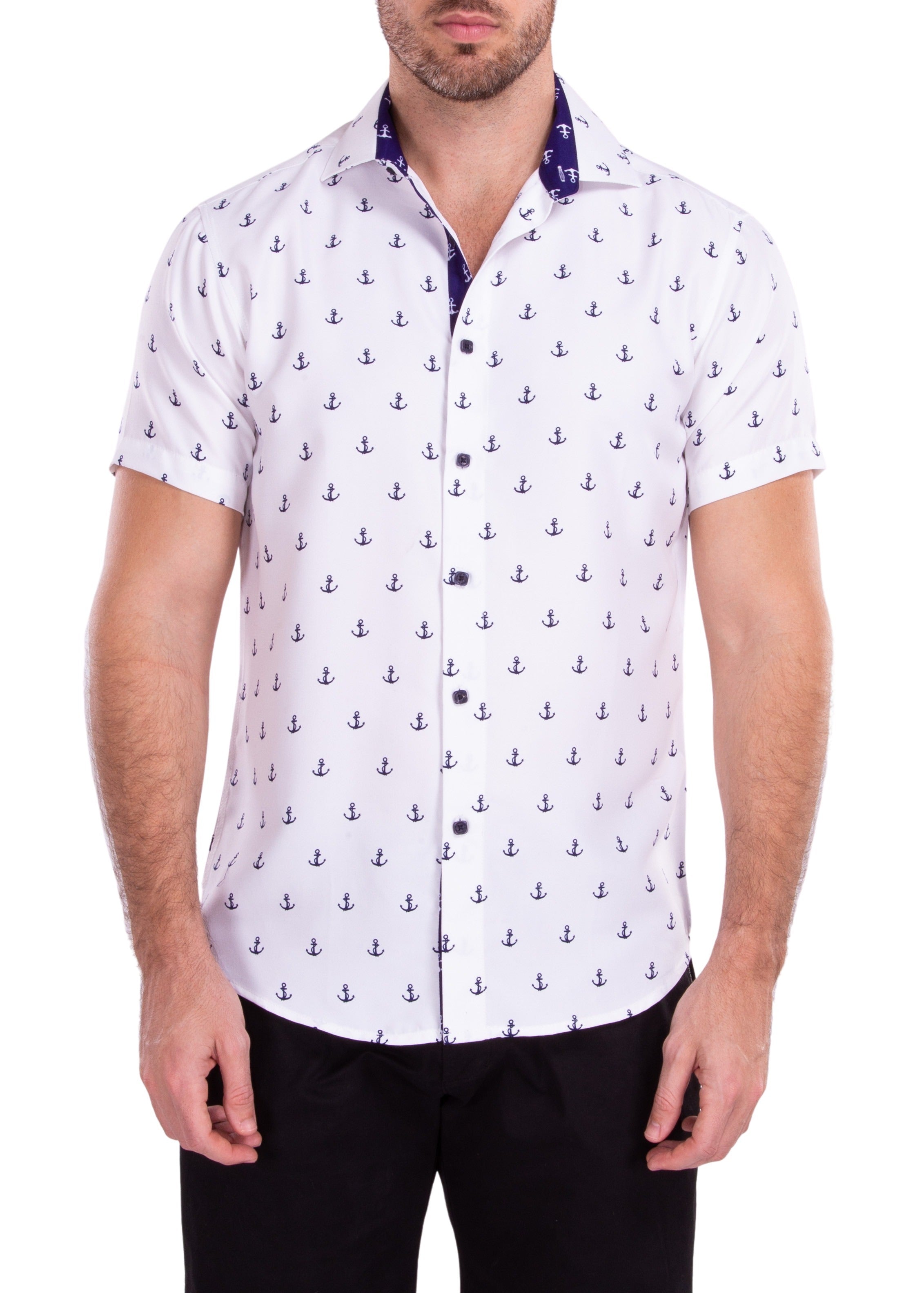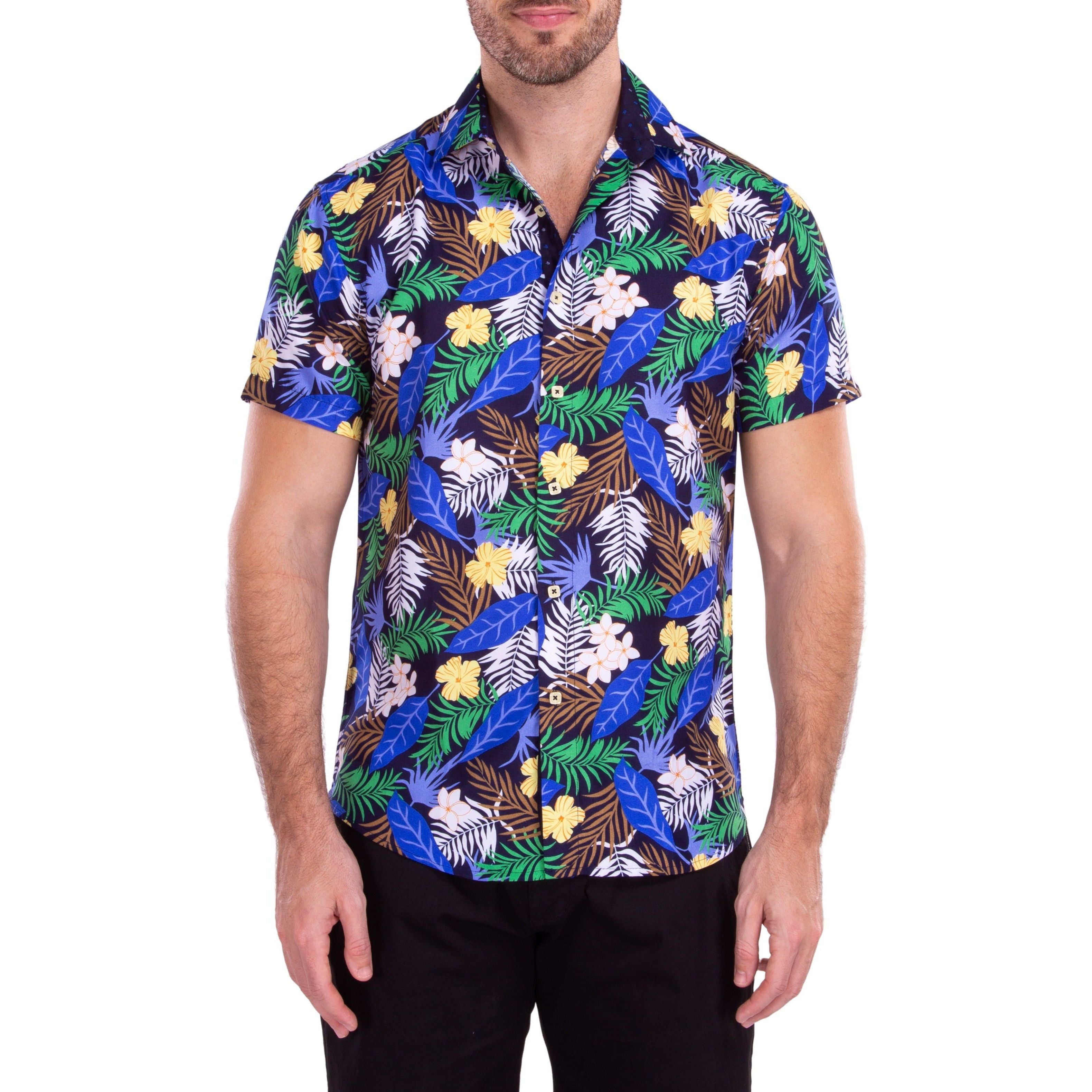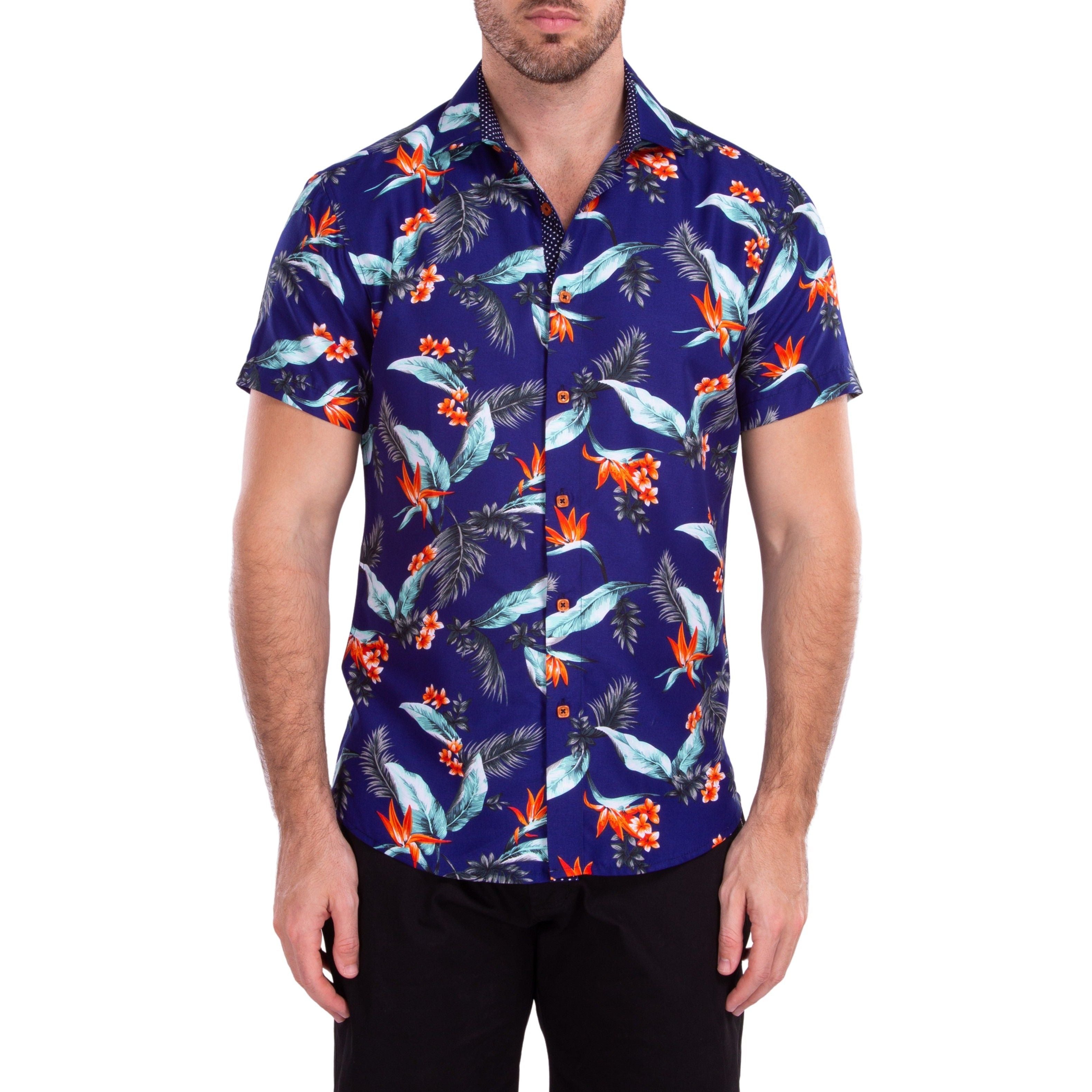 202009 - Navy Button Up Short Sleeve Dress Shirt