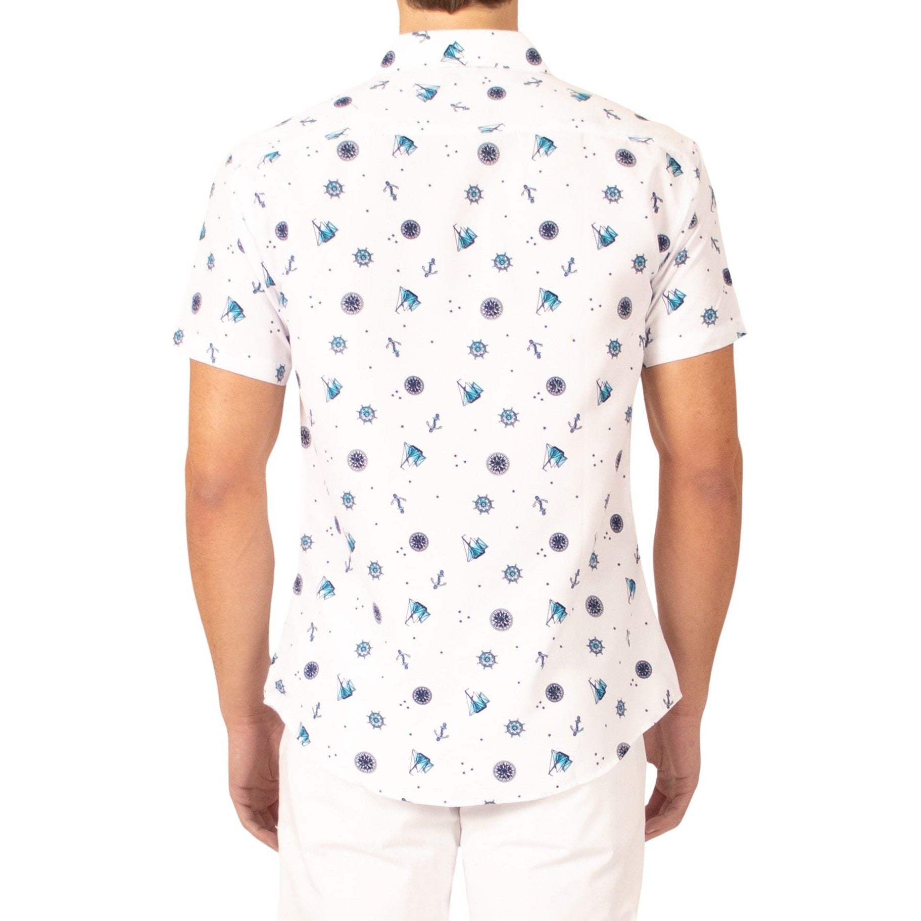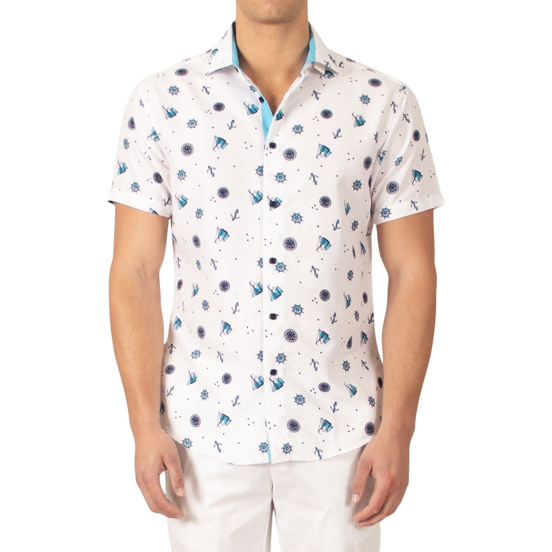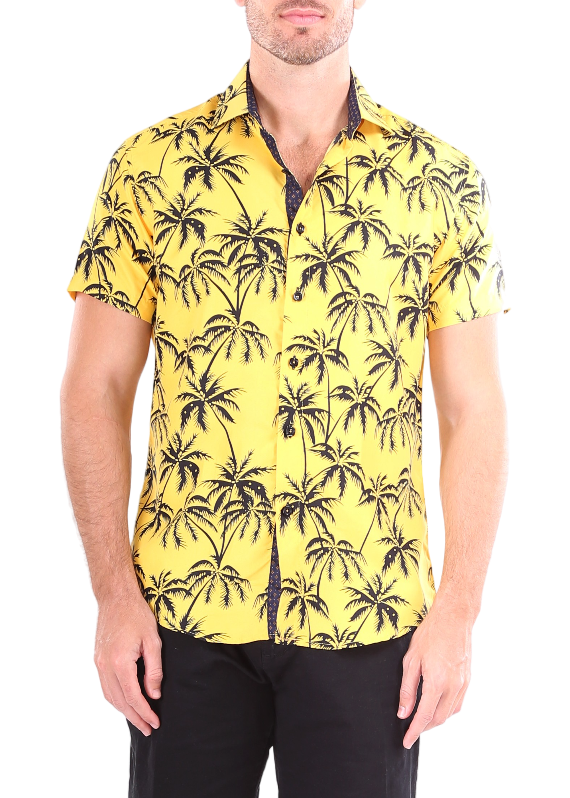 192020 - White Pineapple Print Button Up Short Sleeve Dress Shirt