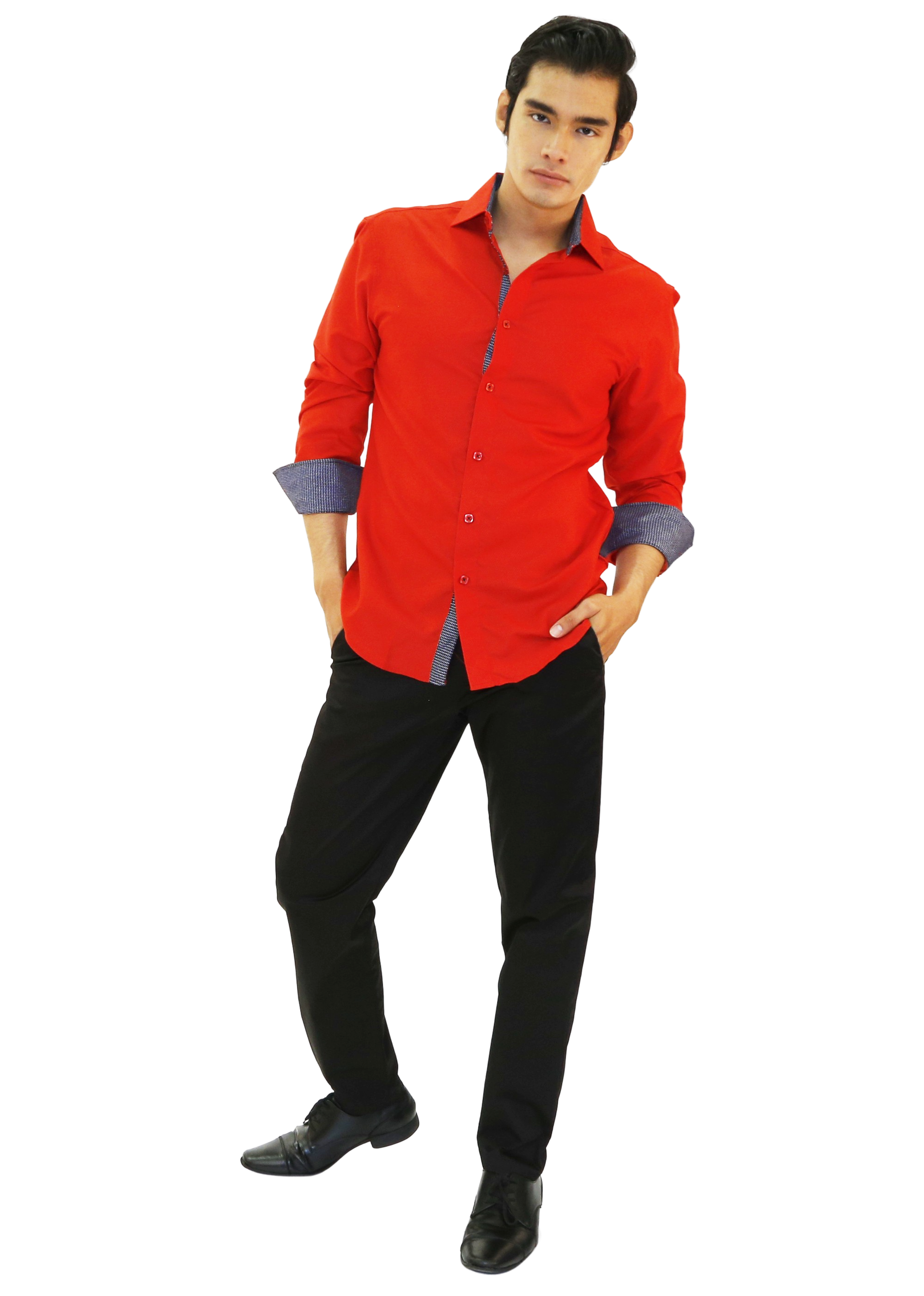202361 - Red Button Up Long Sleeve Dress Shirt