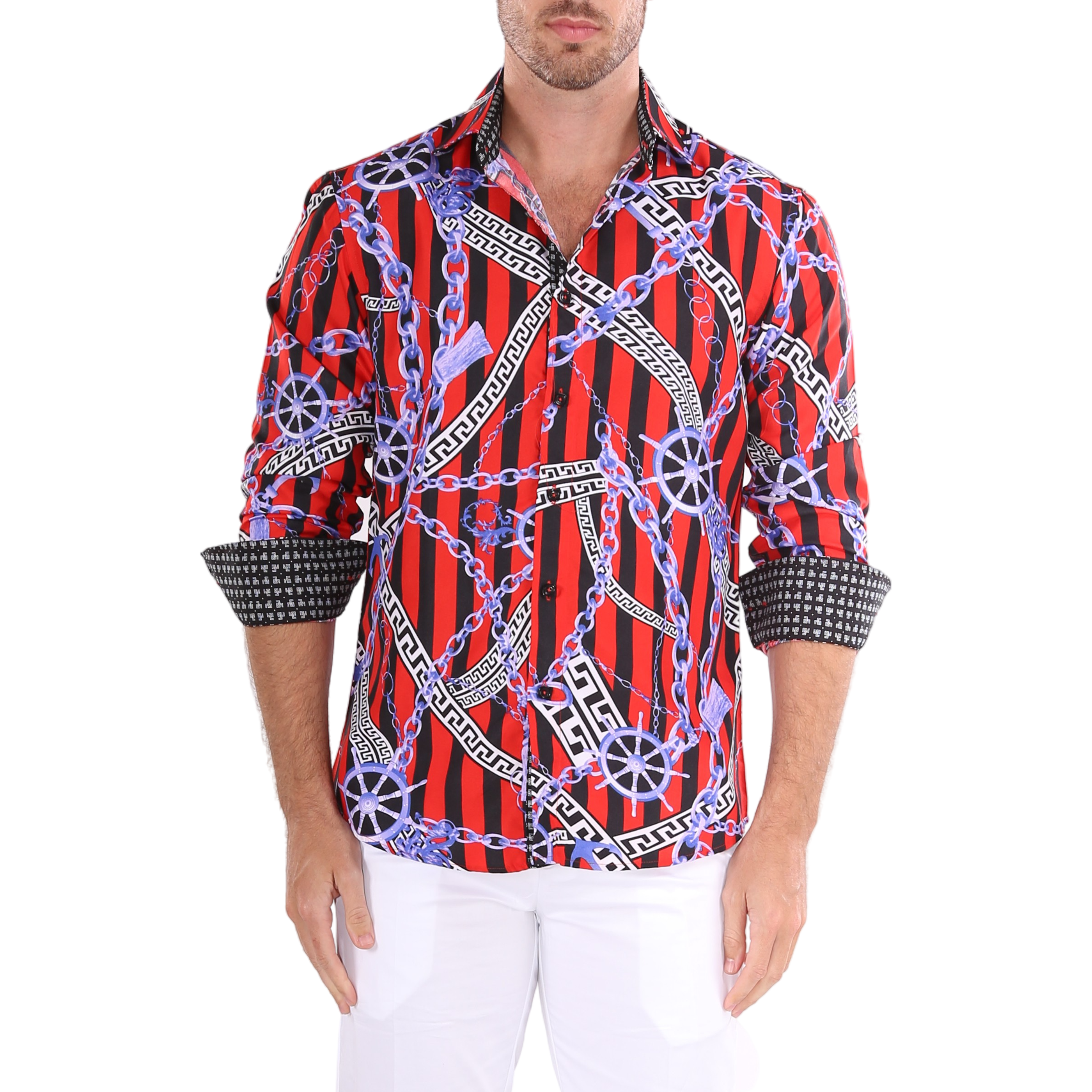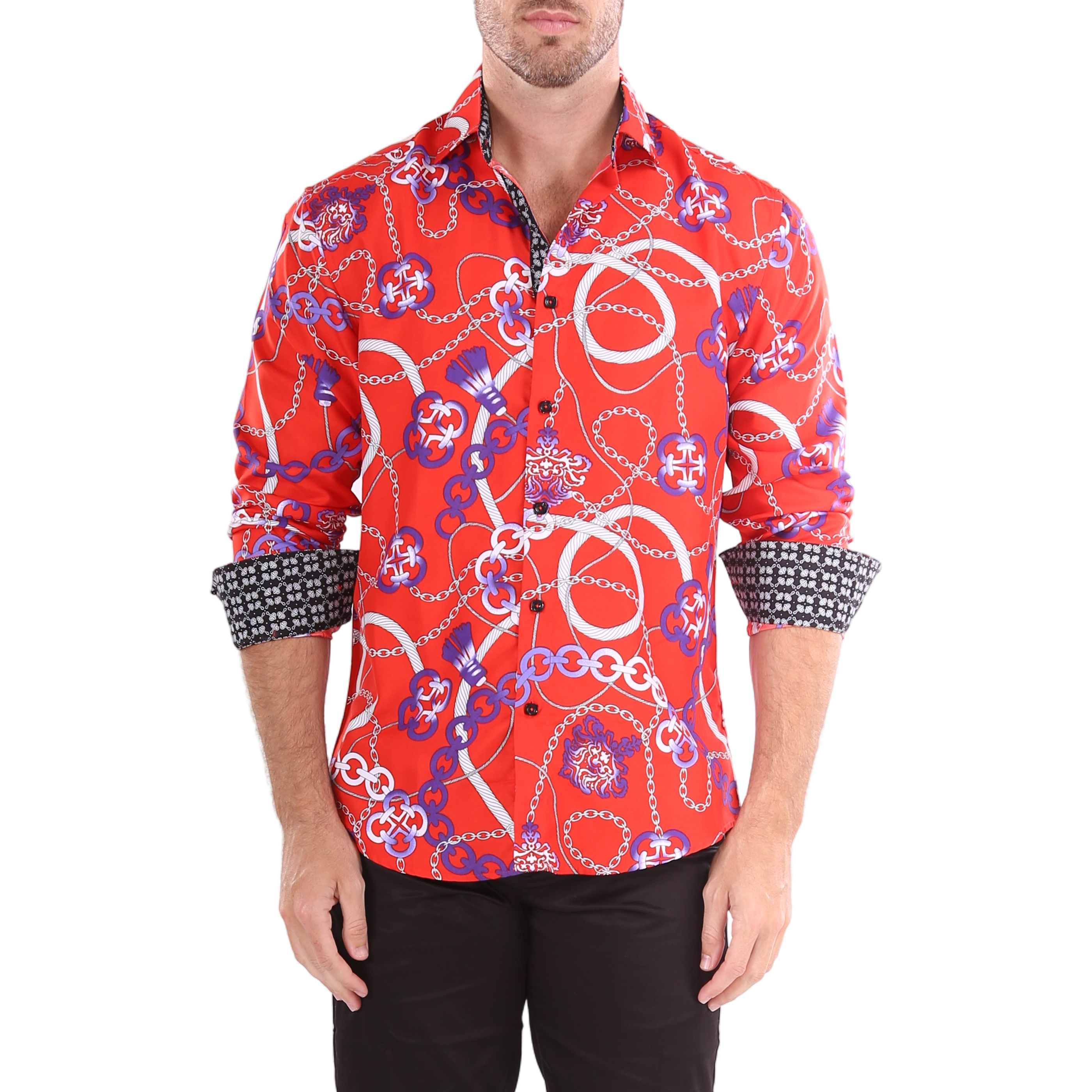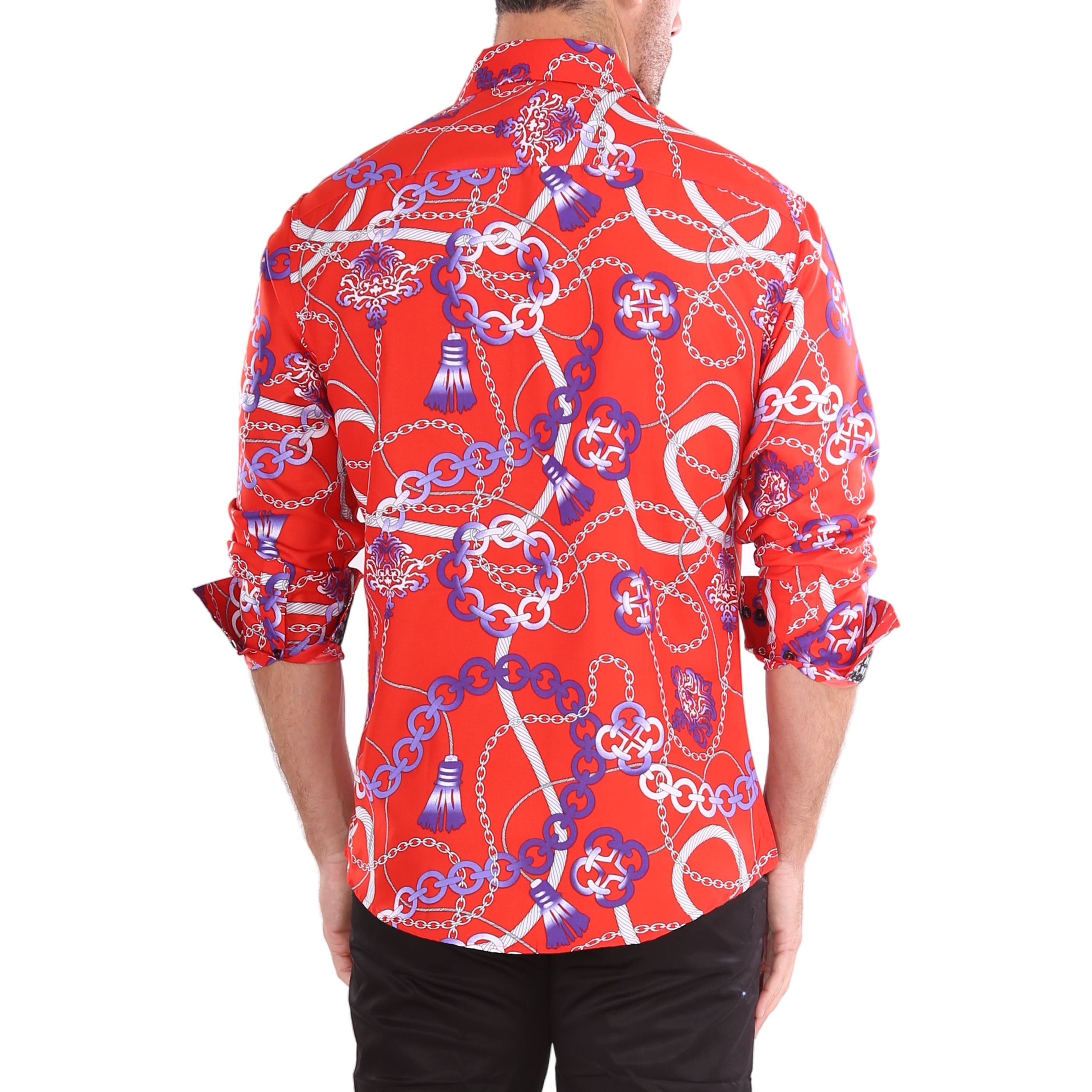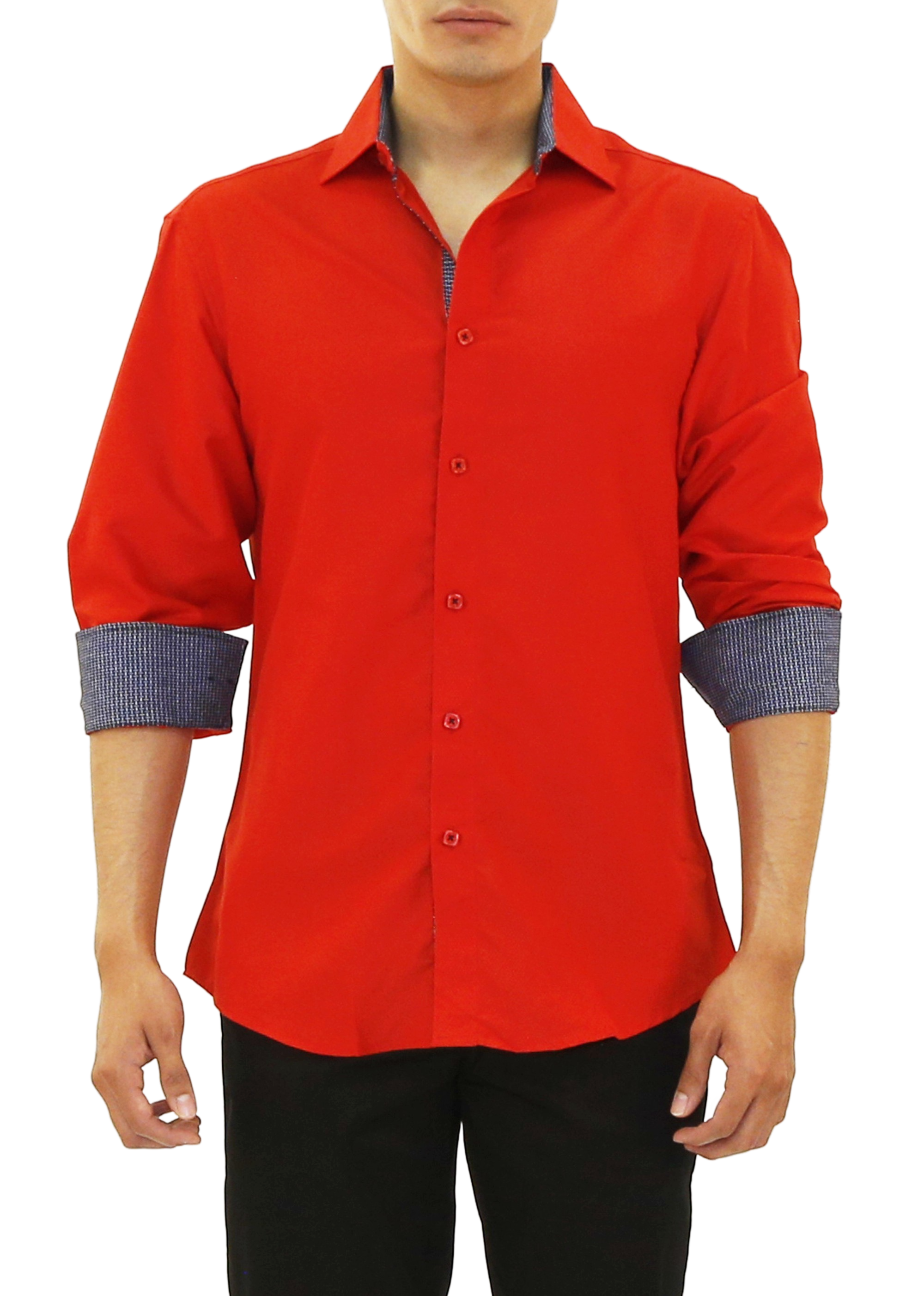 192318 - Red Button Up Long Sleeve Dress Shirt
