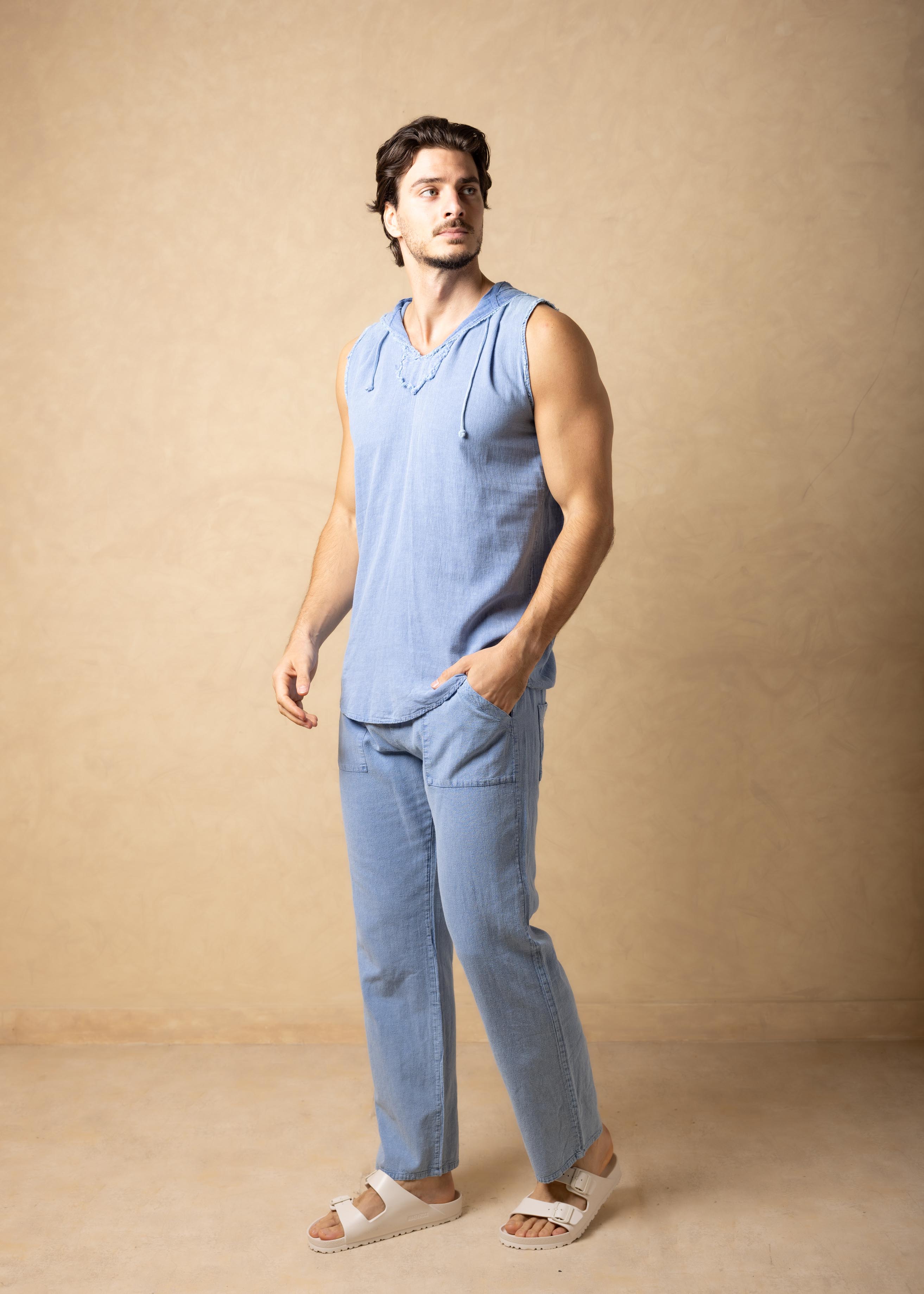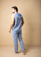 GZ1019 - Blue Cotton Sleeves Hood Shirt