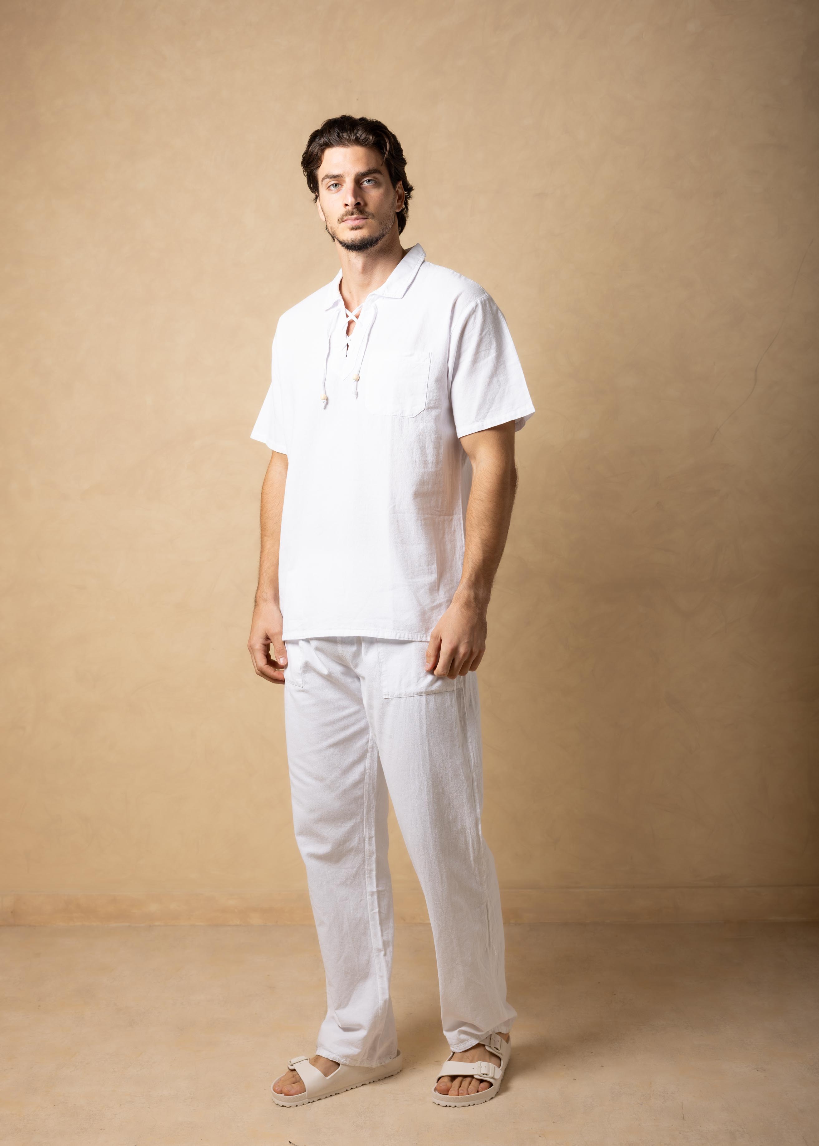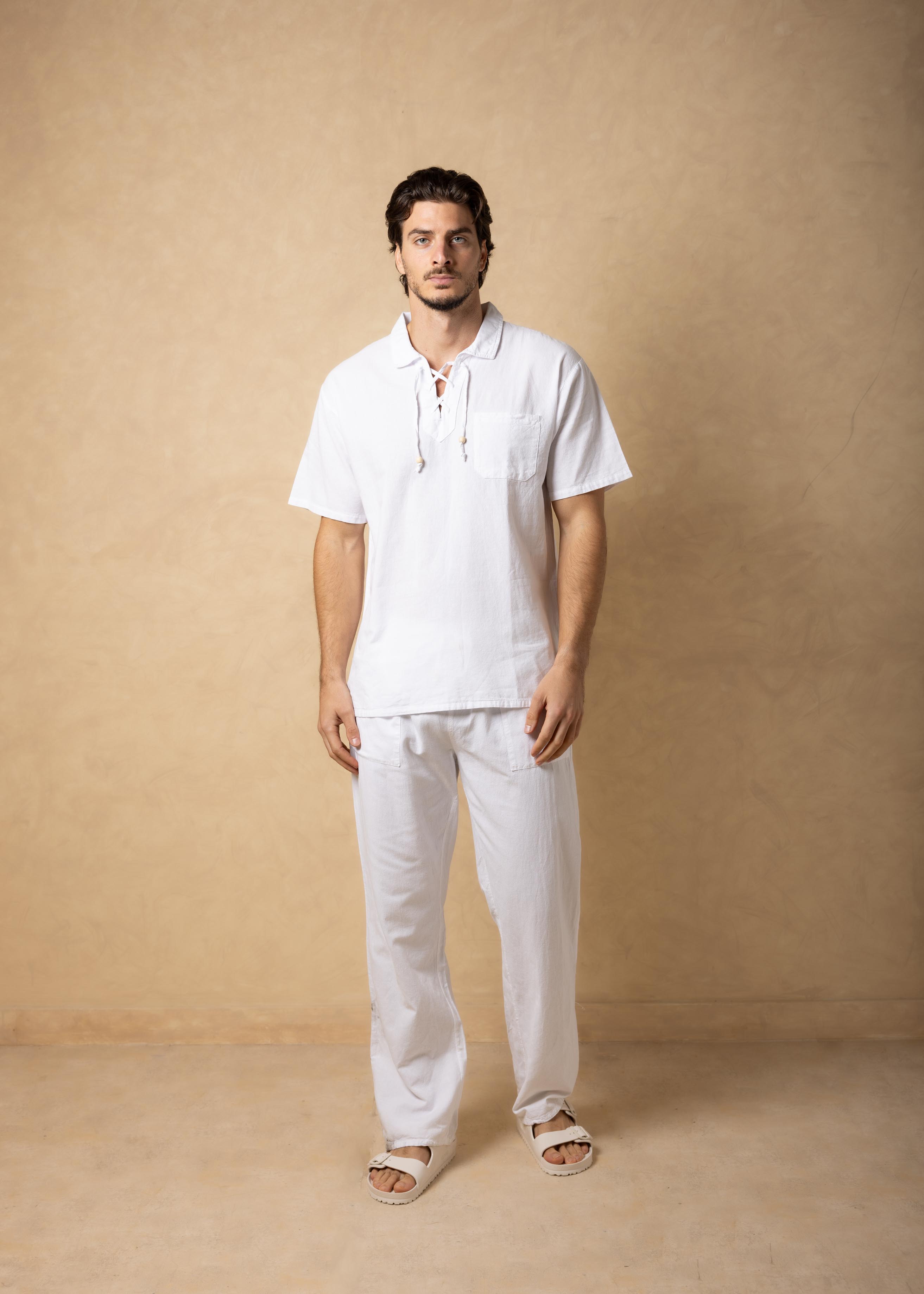 GZ1003 - White Cotton Drawstring Pocket Shirt