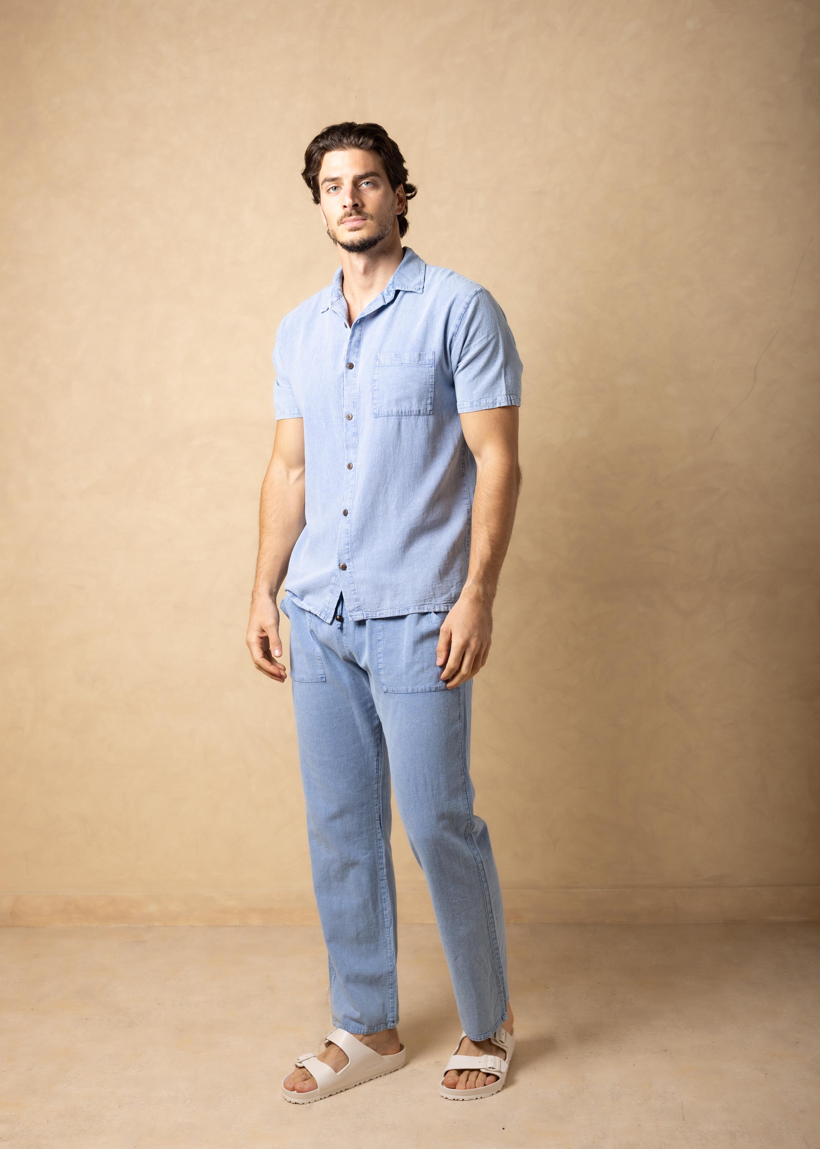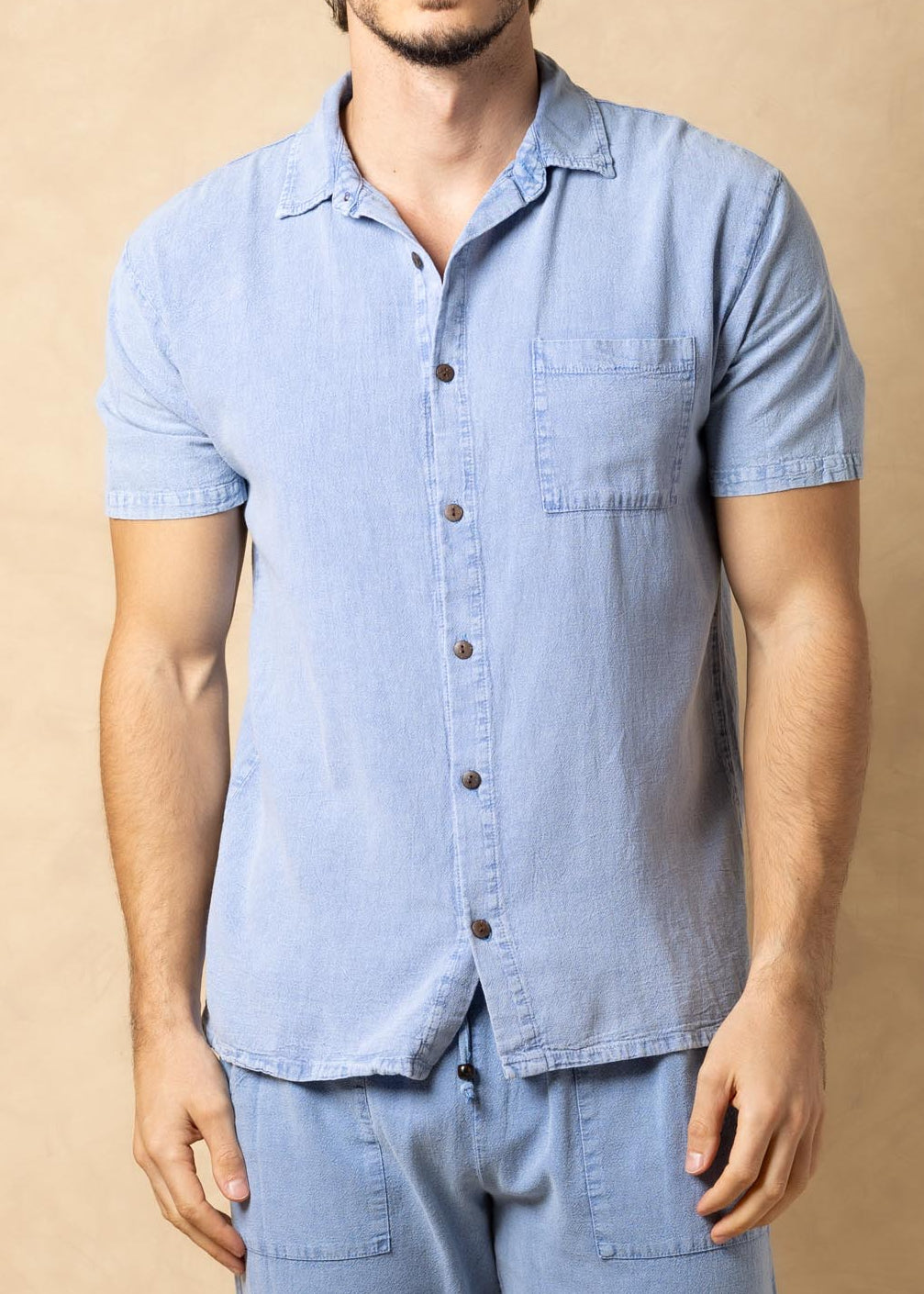 GZ1007 - Blue Cotton Button Down Pocket Shirt