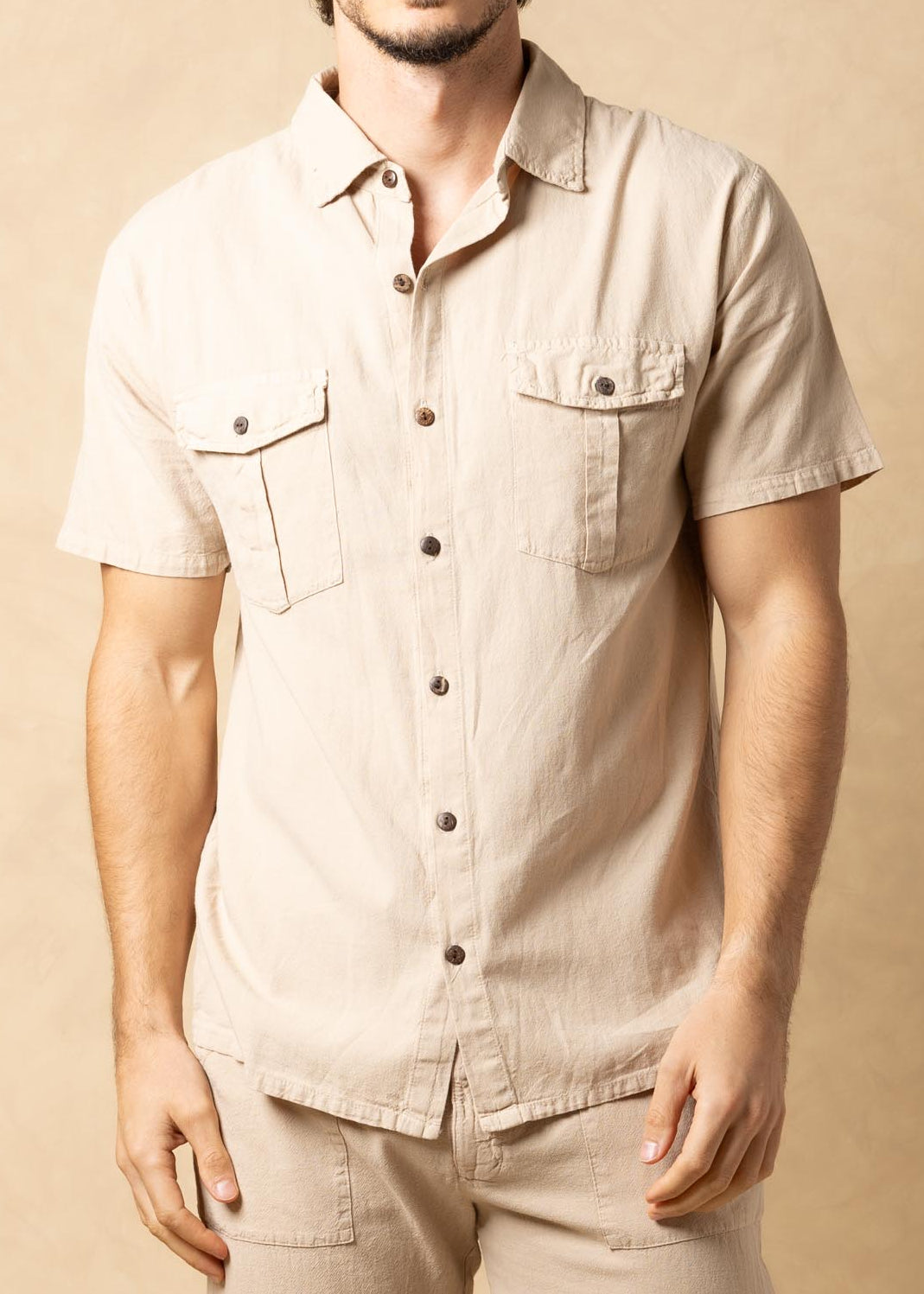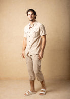 GZ1009 - Beige Cotton Button Down Pockets Shirt
