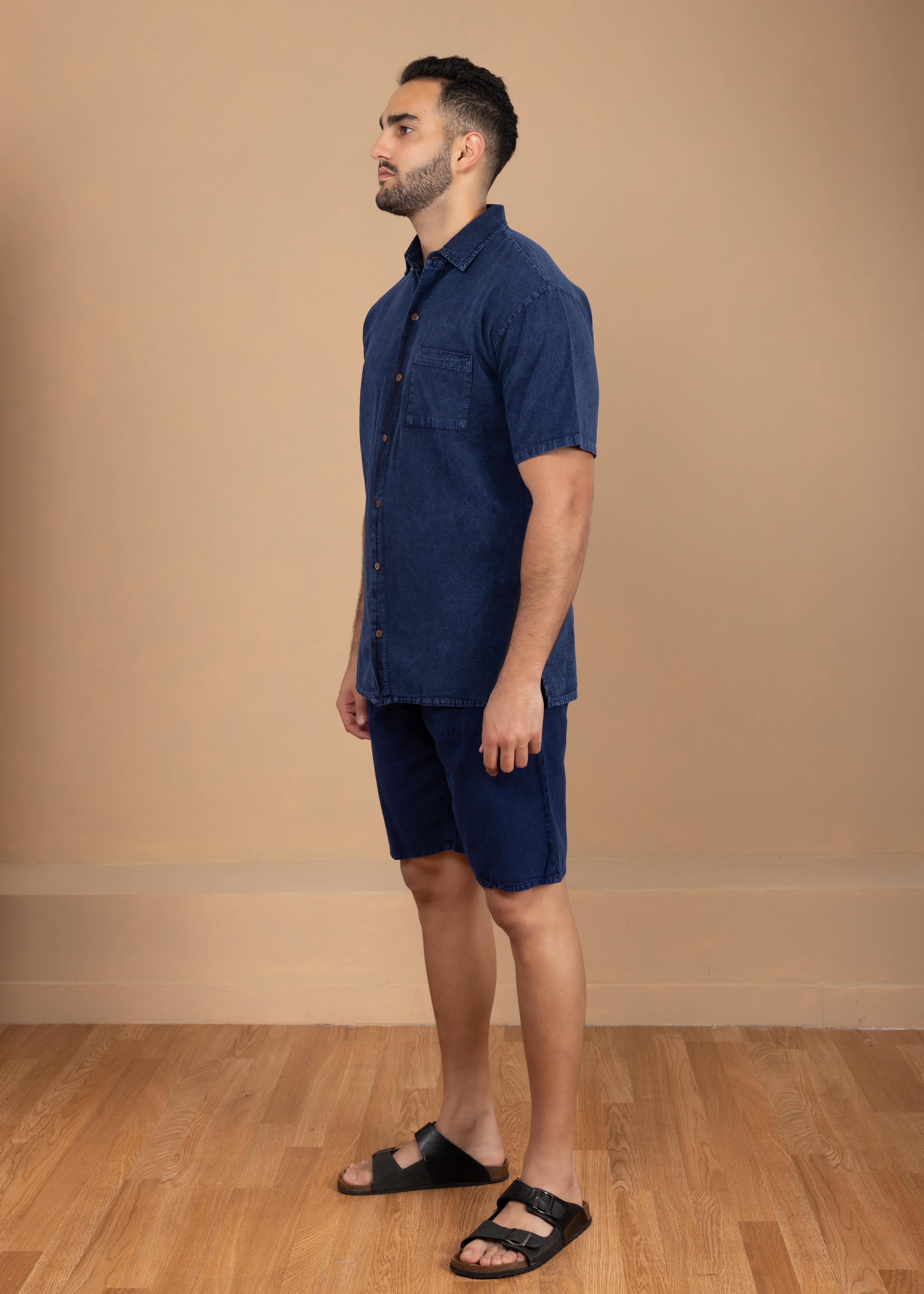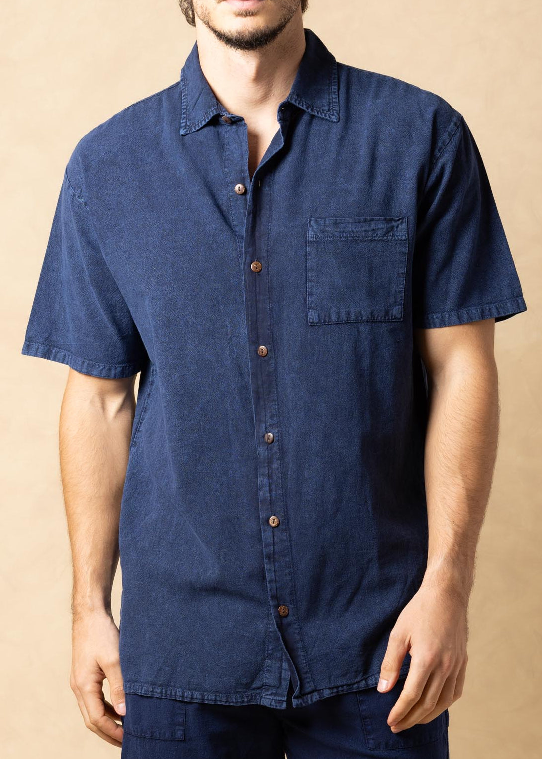 GZ1007 - Navy Cotton Button Down Pocket Shirt