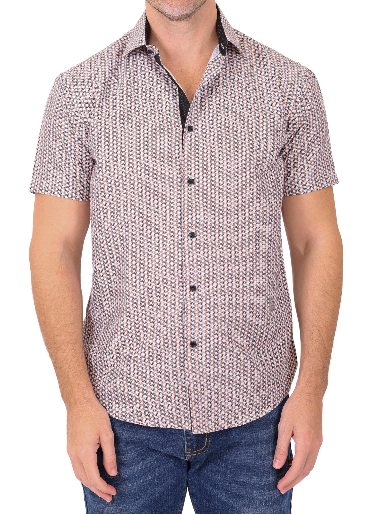 242005 - Beige Button Up Short Sleeve Dress Shirt