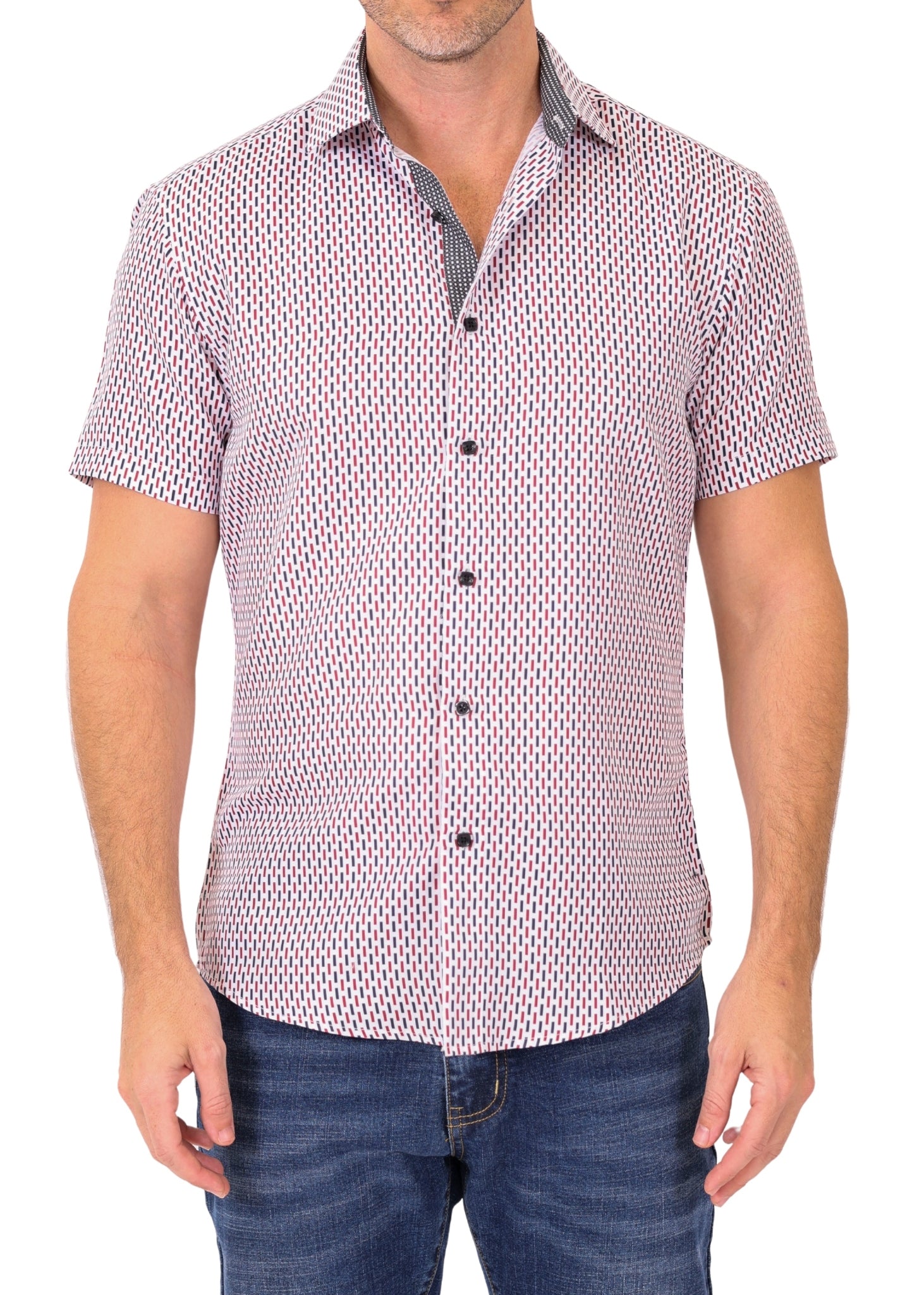 242006 - Red Button Up Short Sleeve Dress Shirt