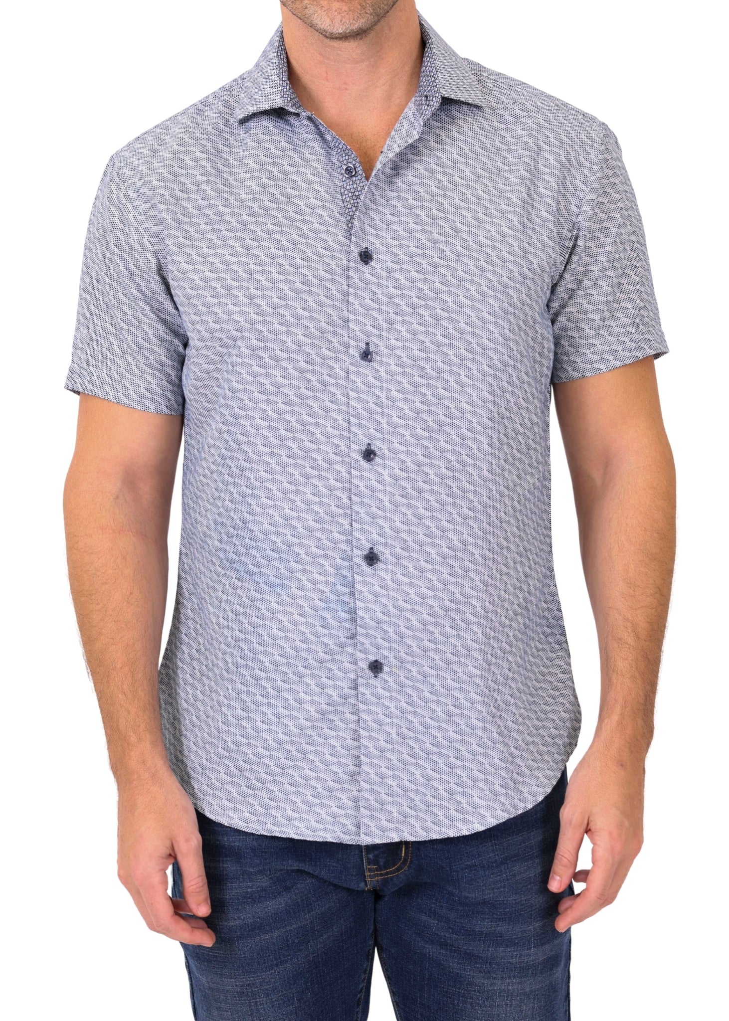 242007 - Navy Button Up Short Sleeve Dress Shirt