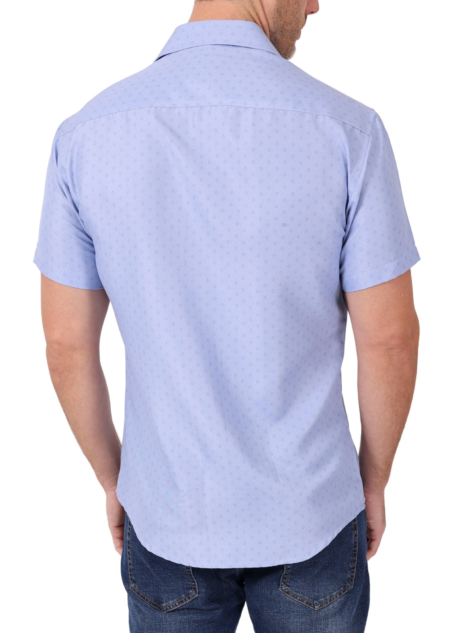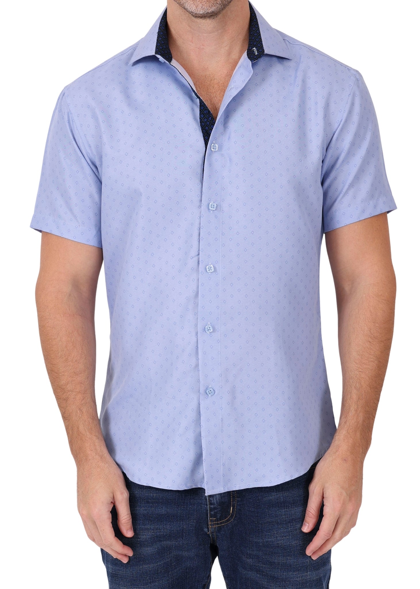 242009 - Blue Button Up Short Sleeve Dress Shirt