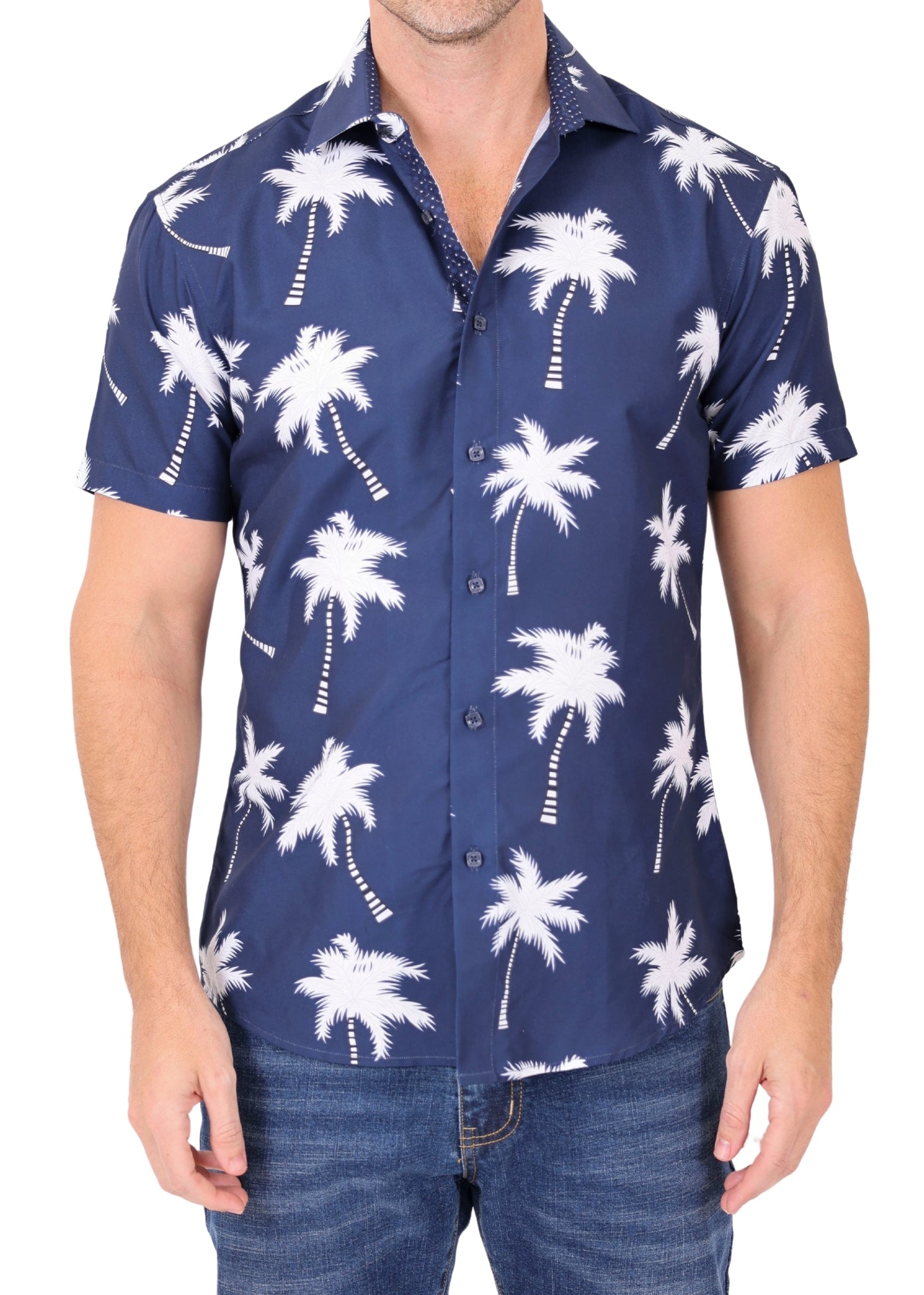 242010 - Navy Button Up Short Sleeve Dress Shirt