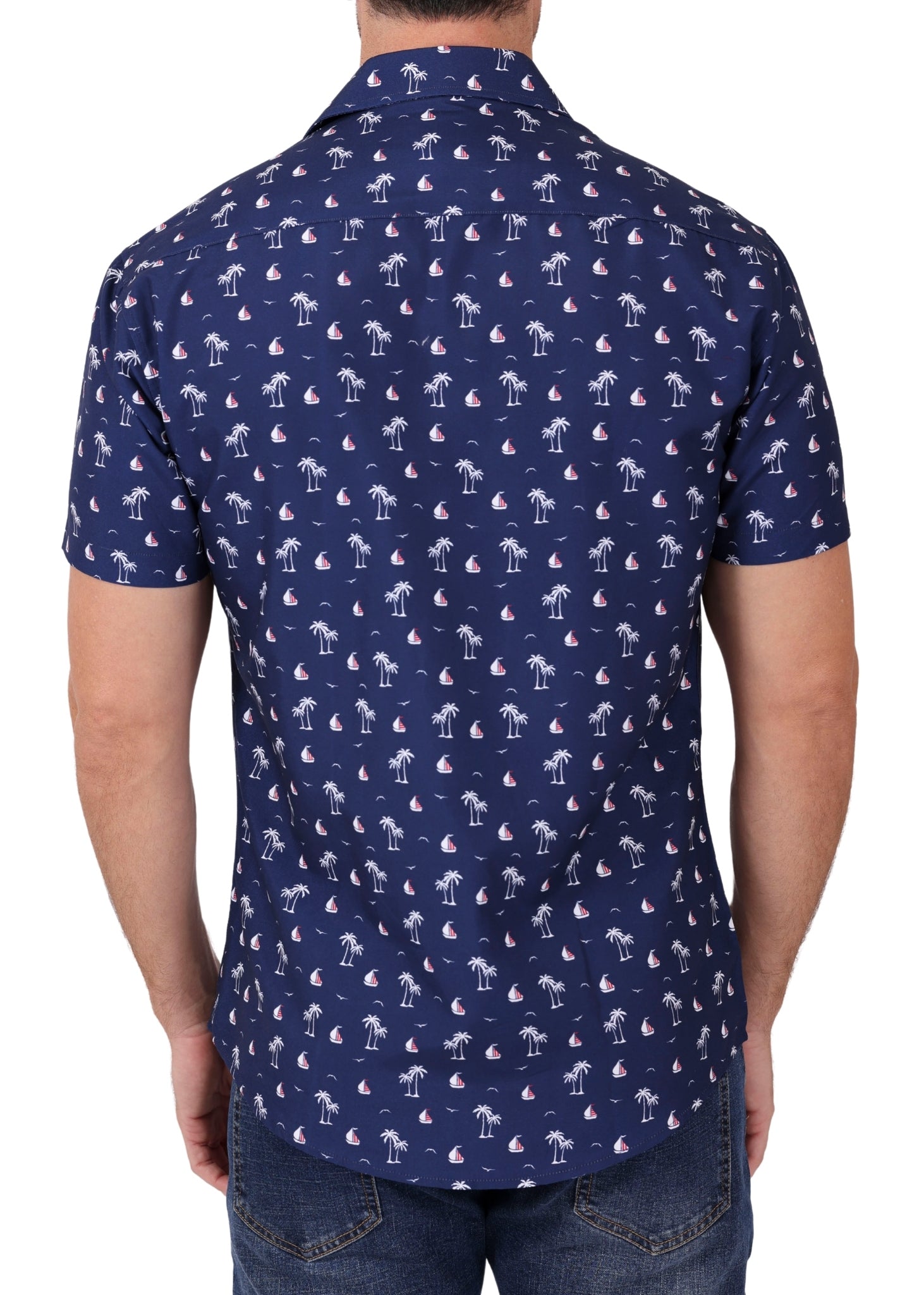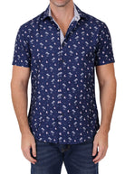 242014 - Navy Button Up Short Sleeve Dress Shirt