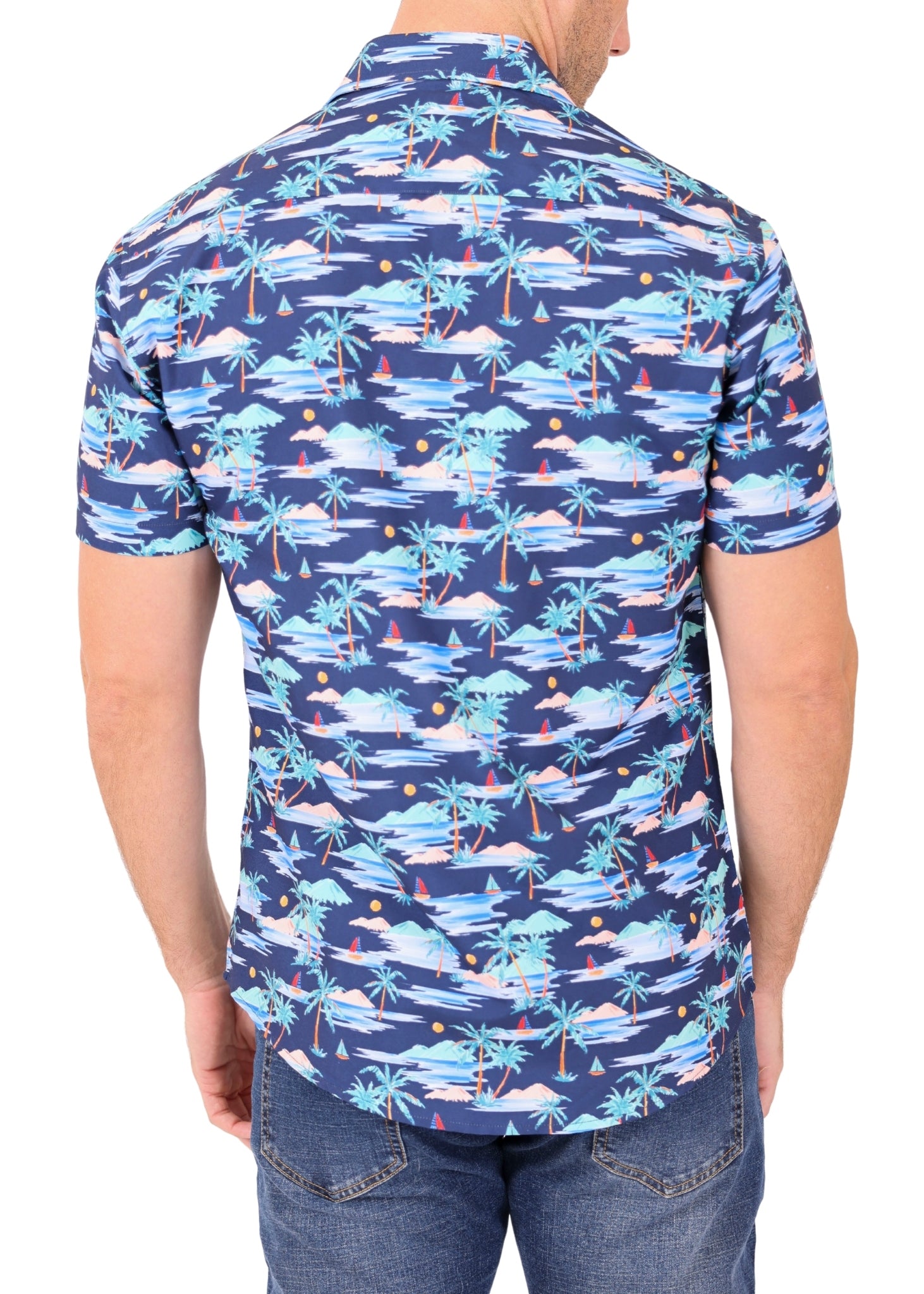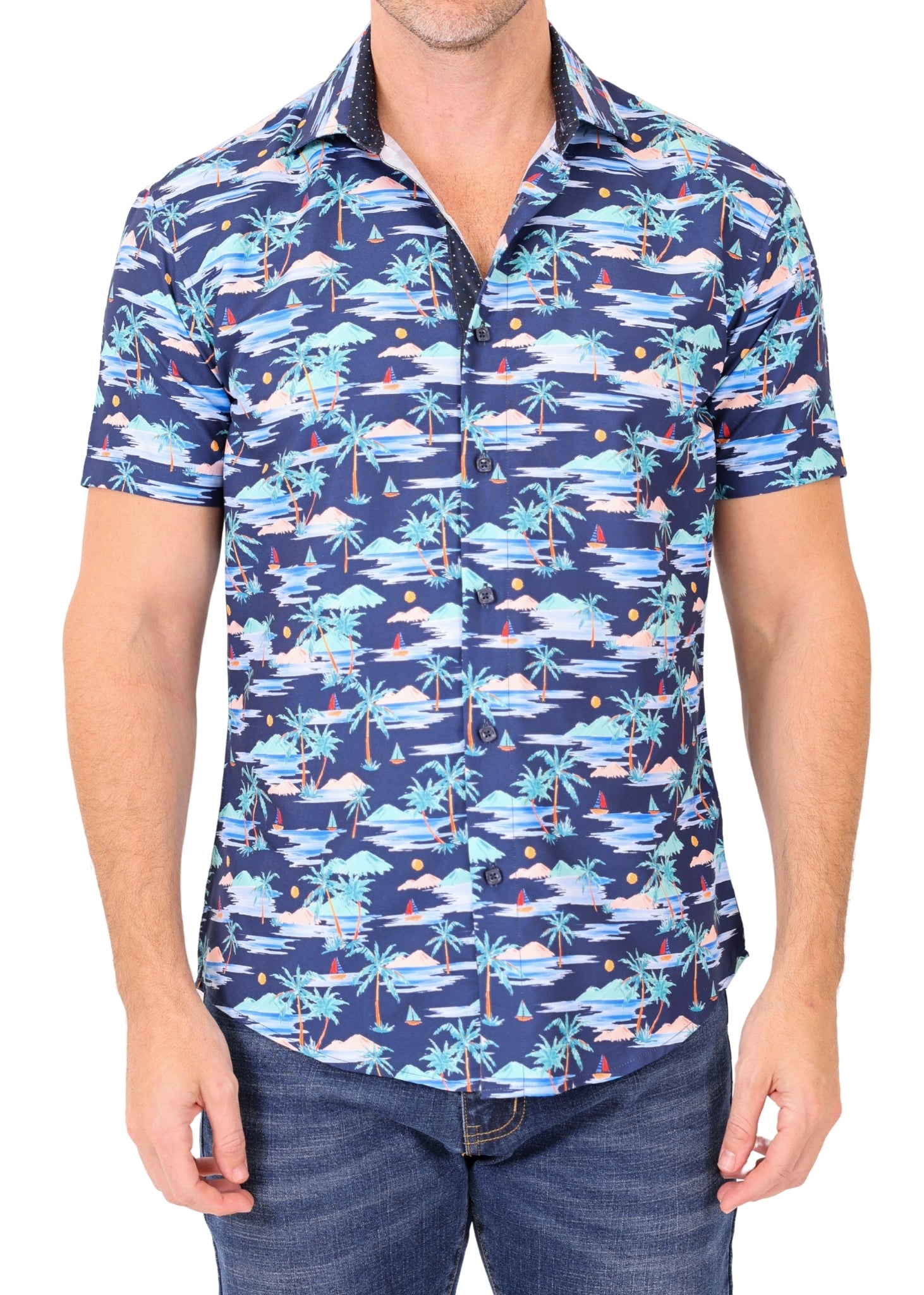 242016 - Navy Button Up Short Sleeve Dress Shirt