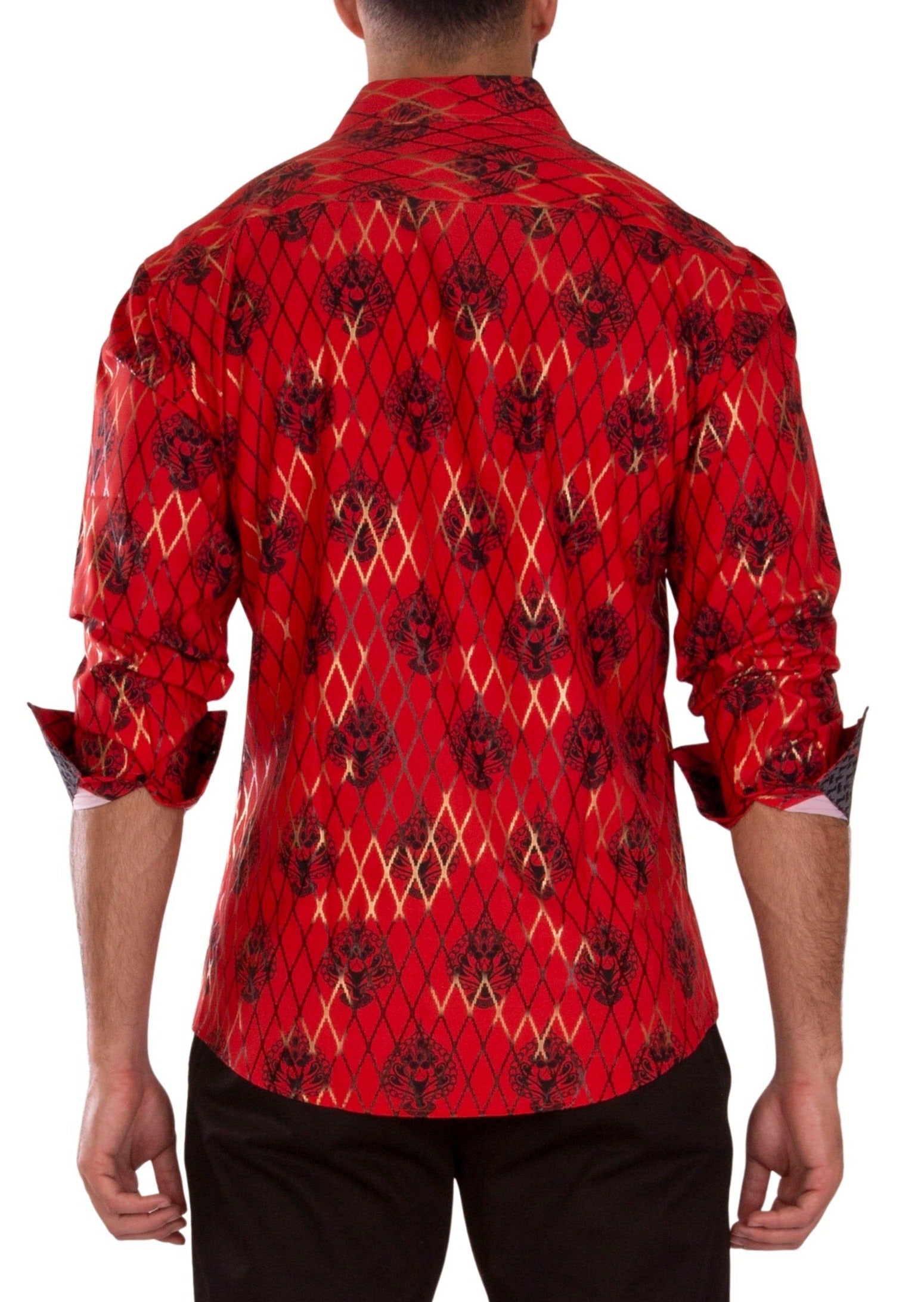 232256 - Red Button Up Long Sleeve Dress Shirt