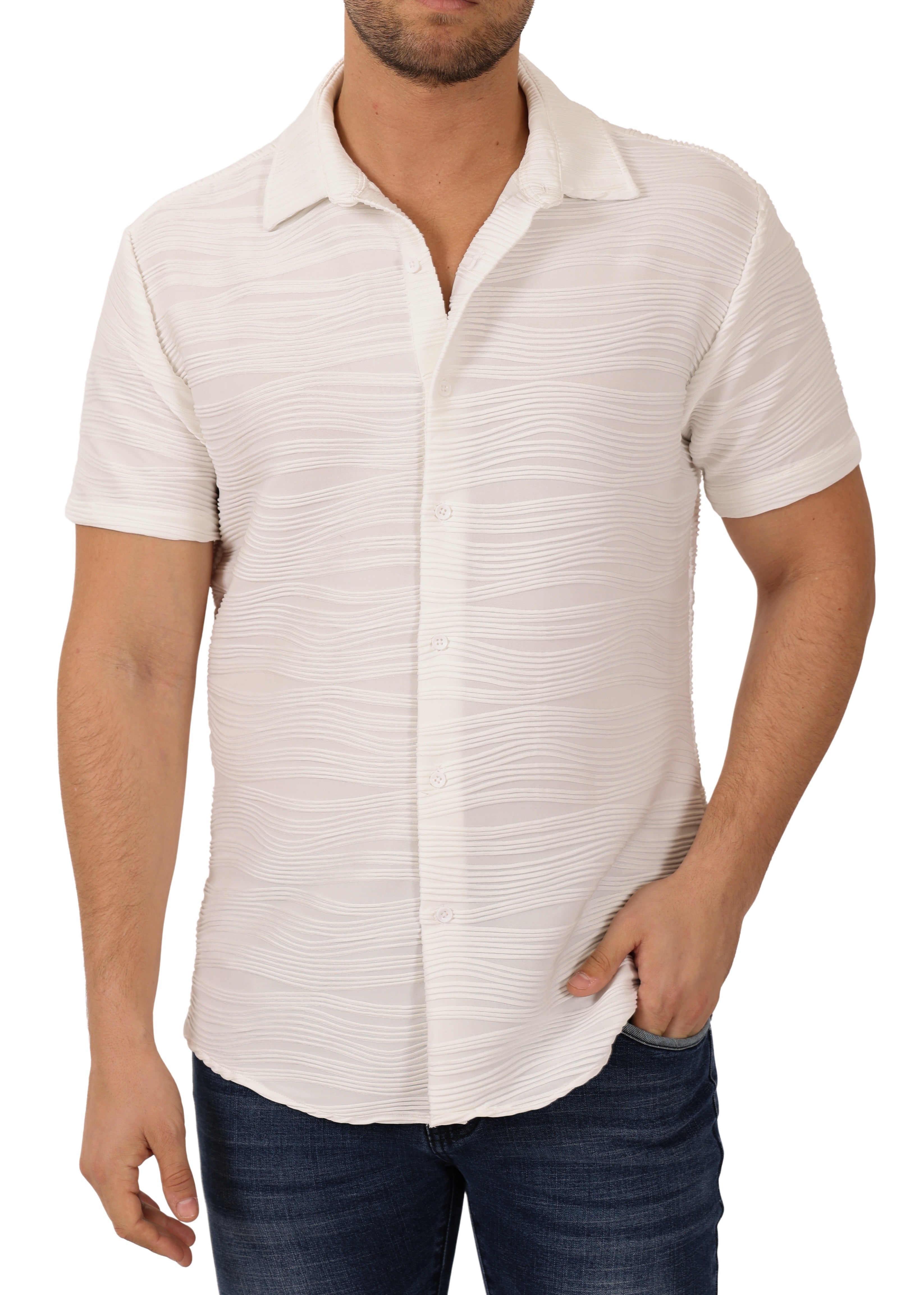 242112 - White Button Up Short Sleeve Shirt