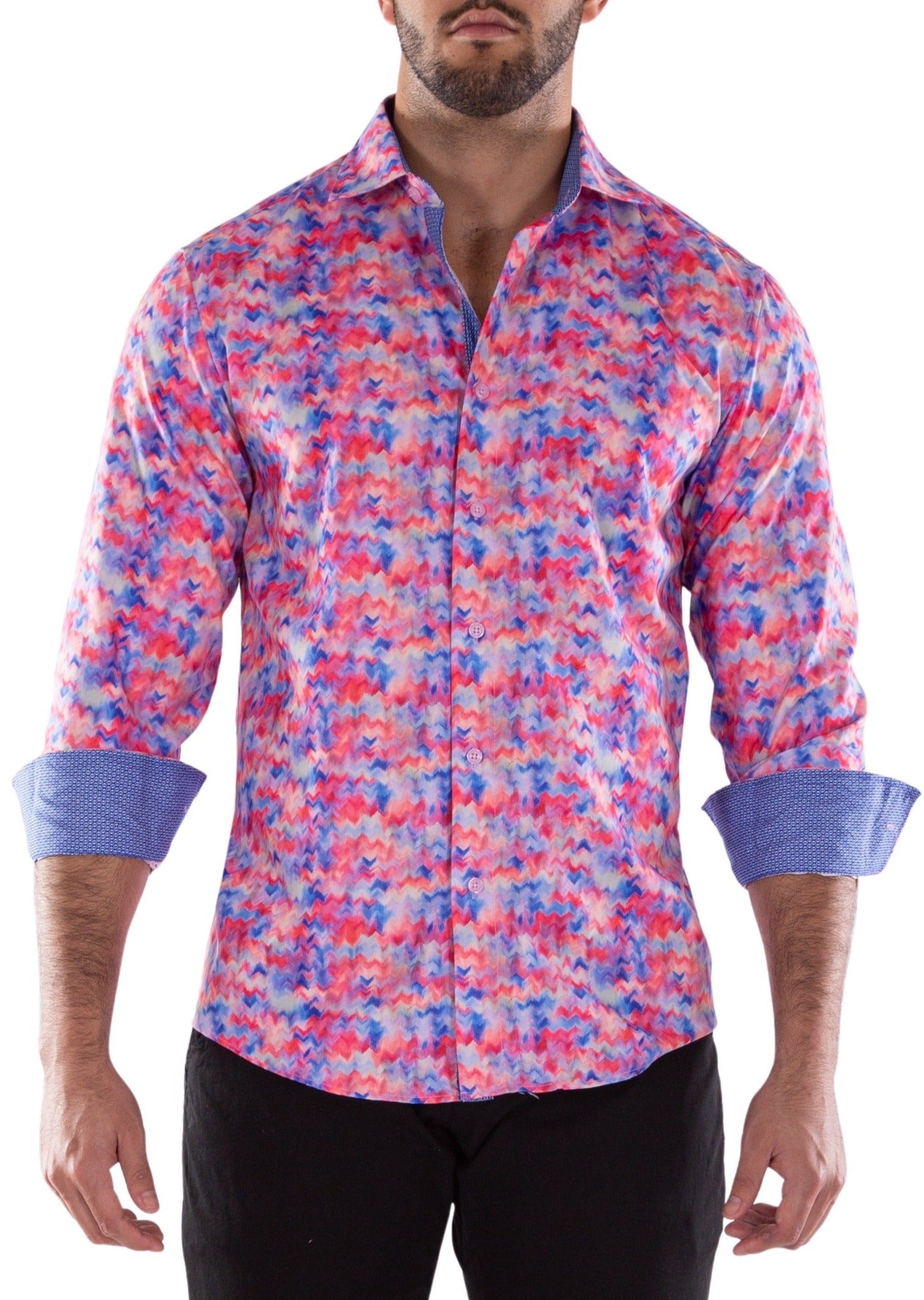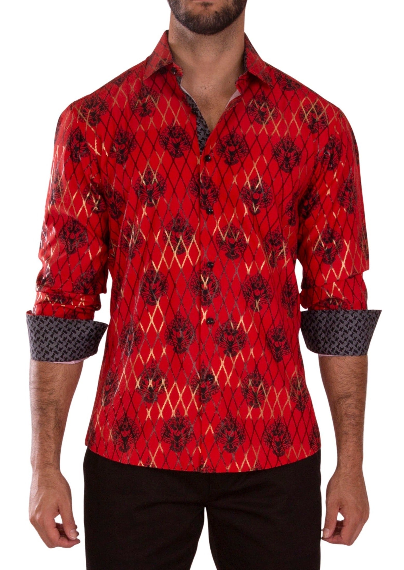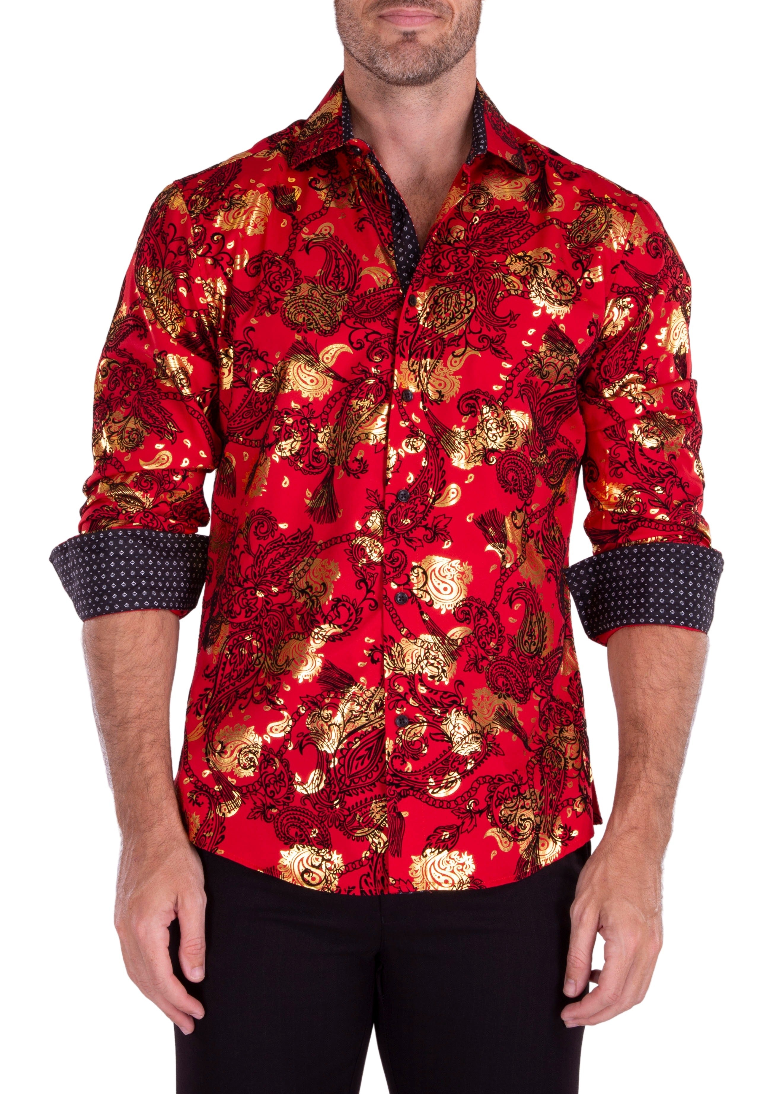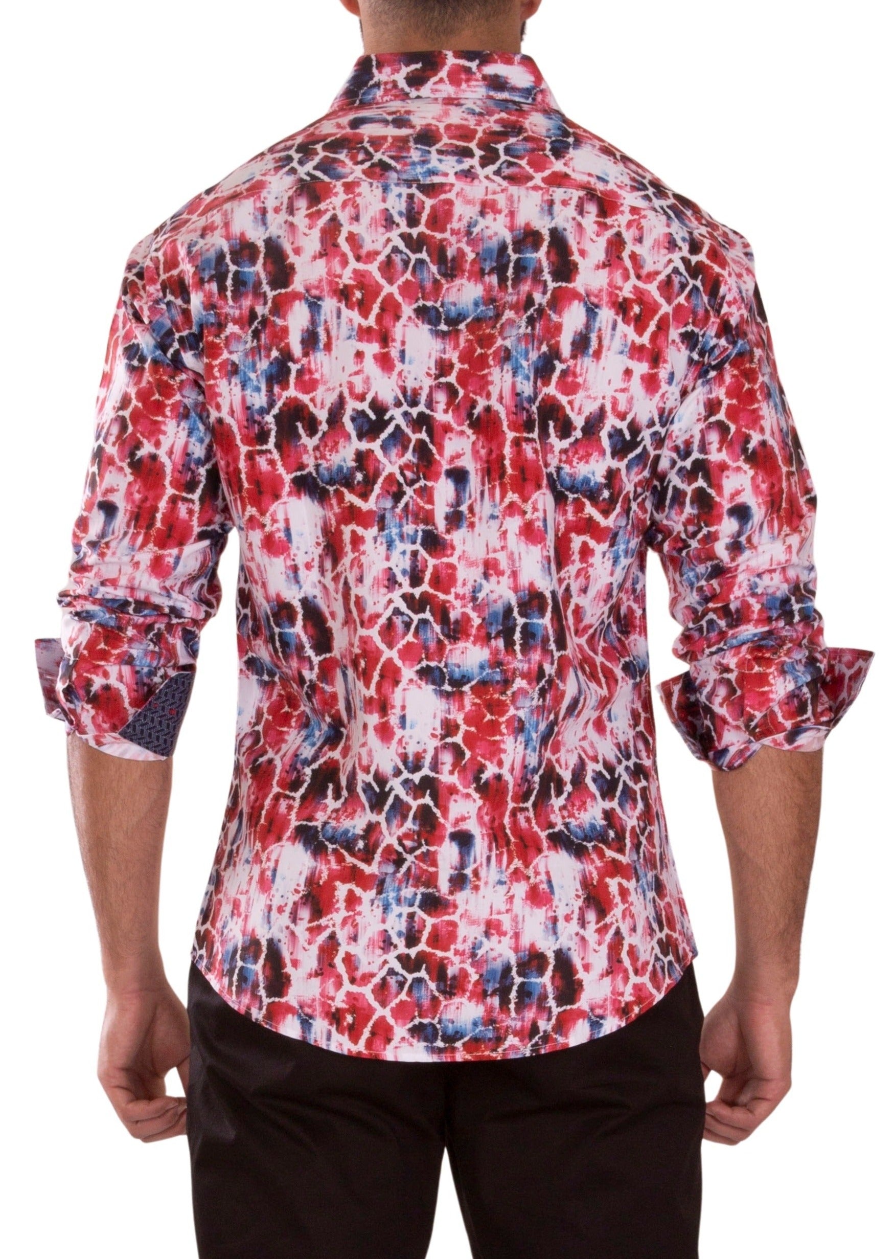 232256 - Red Button Up Long Sleeve Dress Shirt