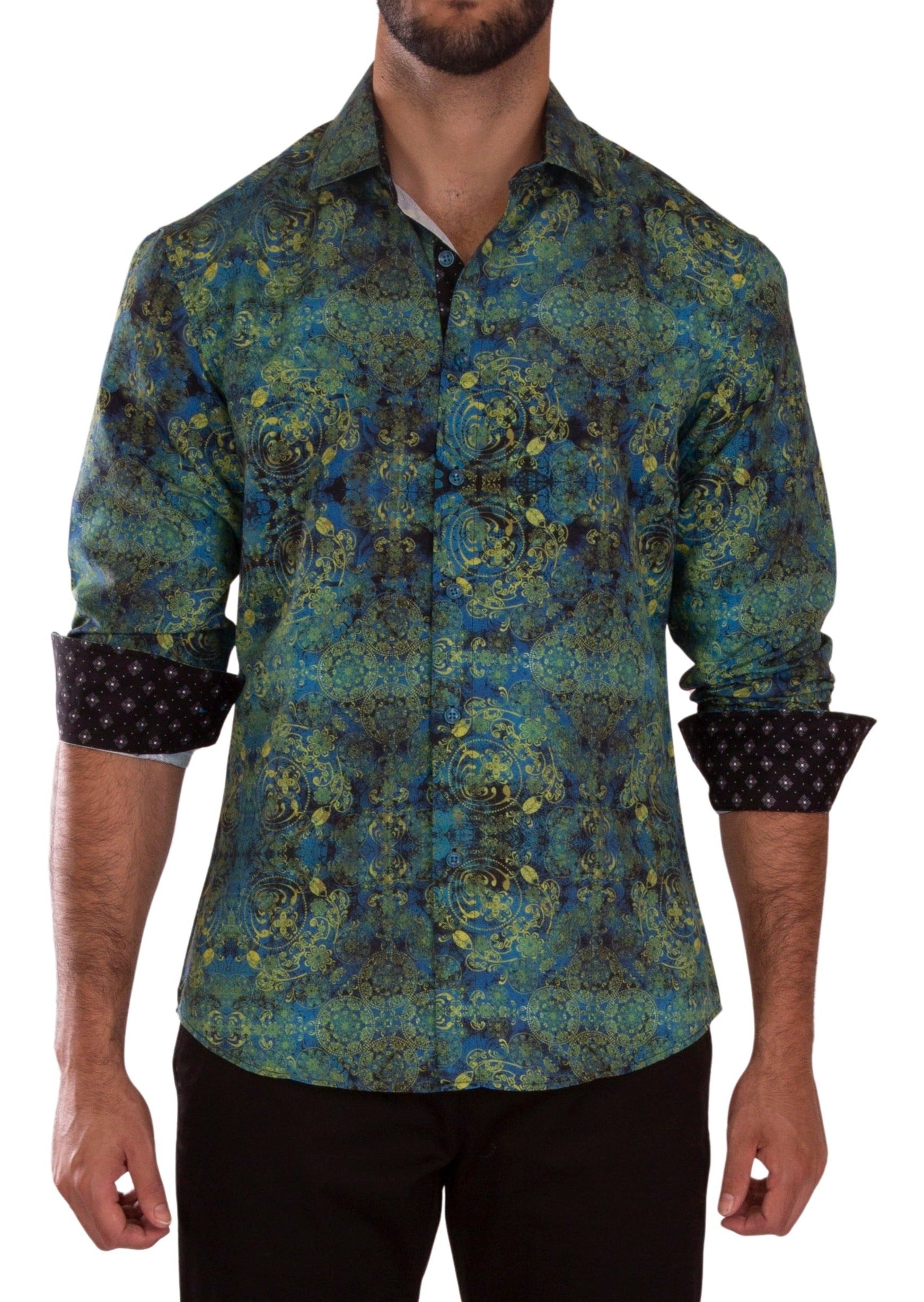 232268 - Green Button Up Long Sleeve Dress Shirt