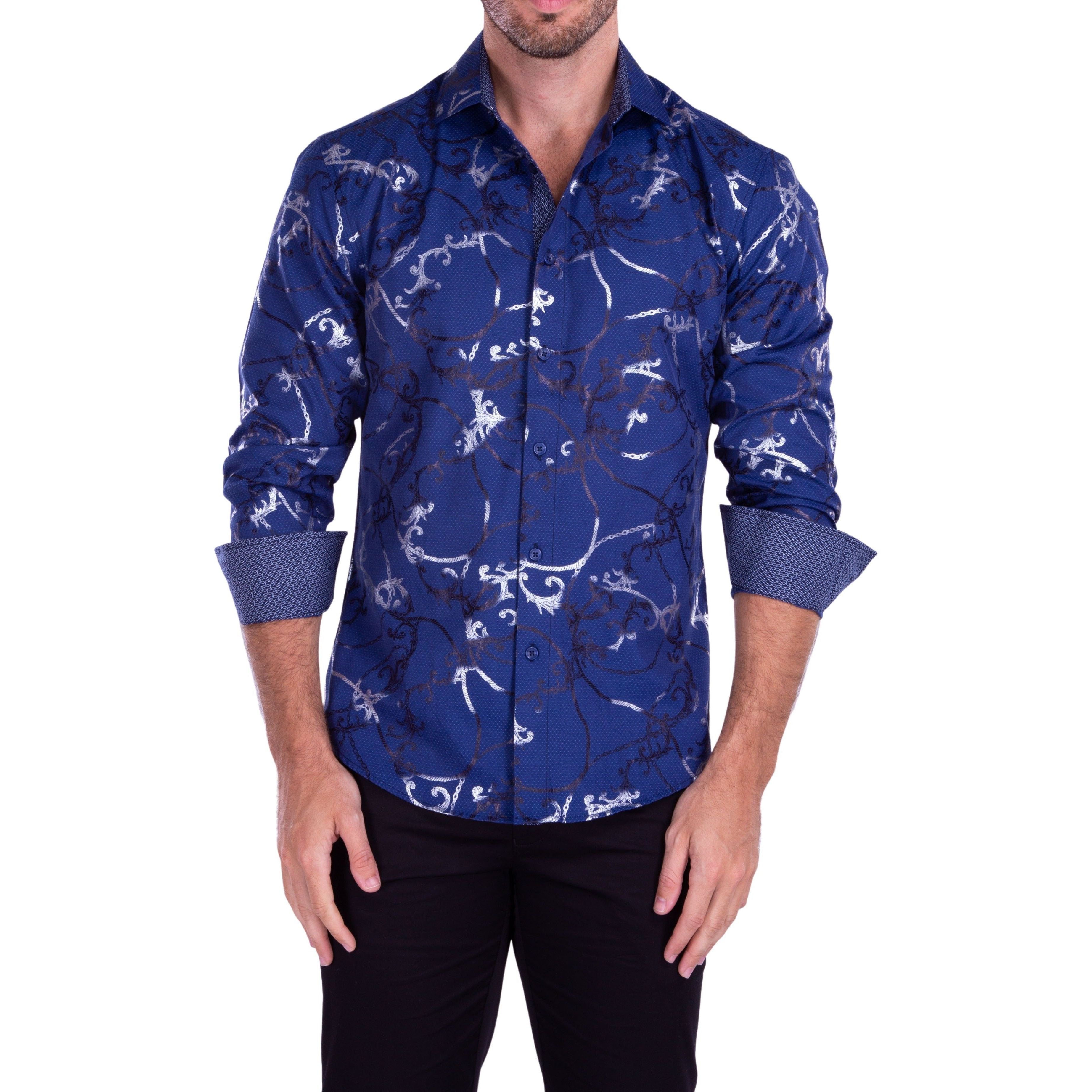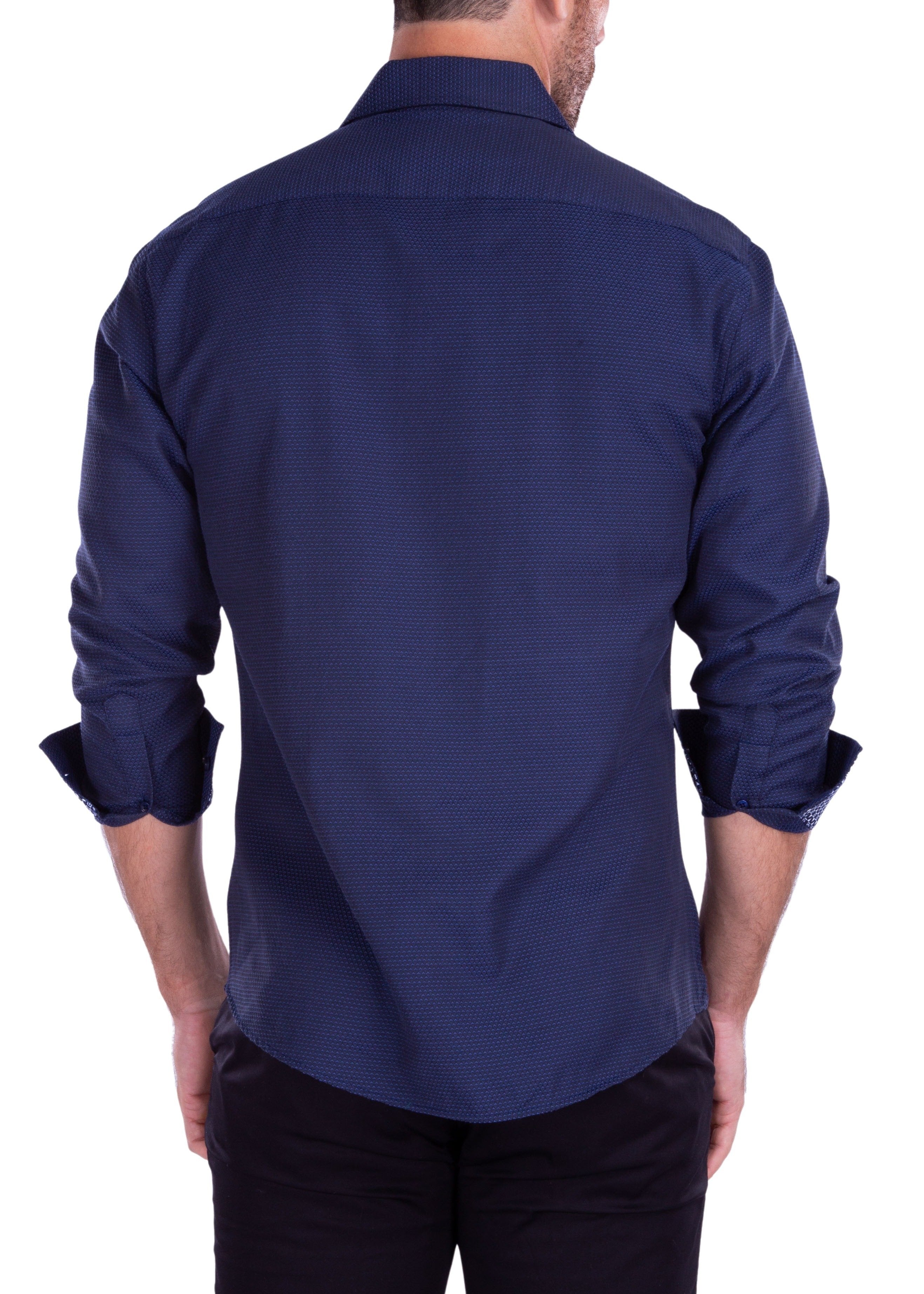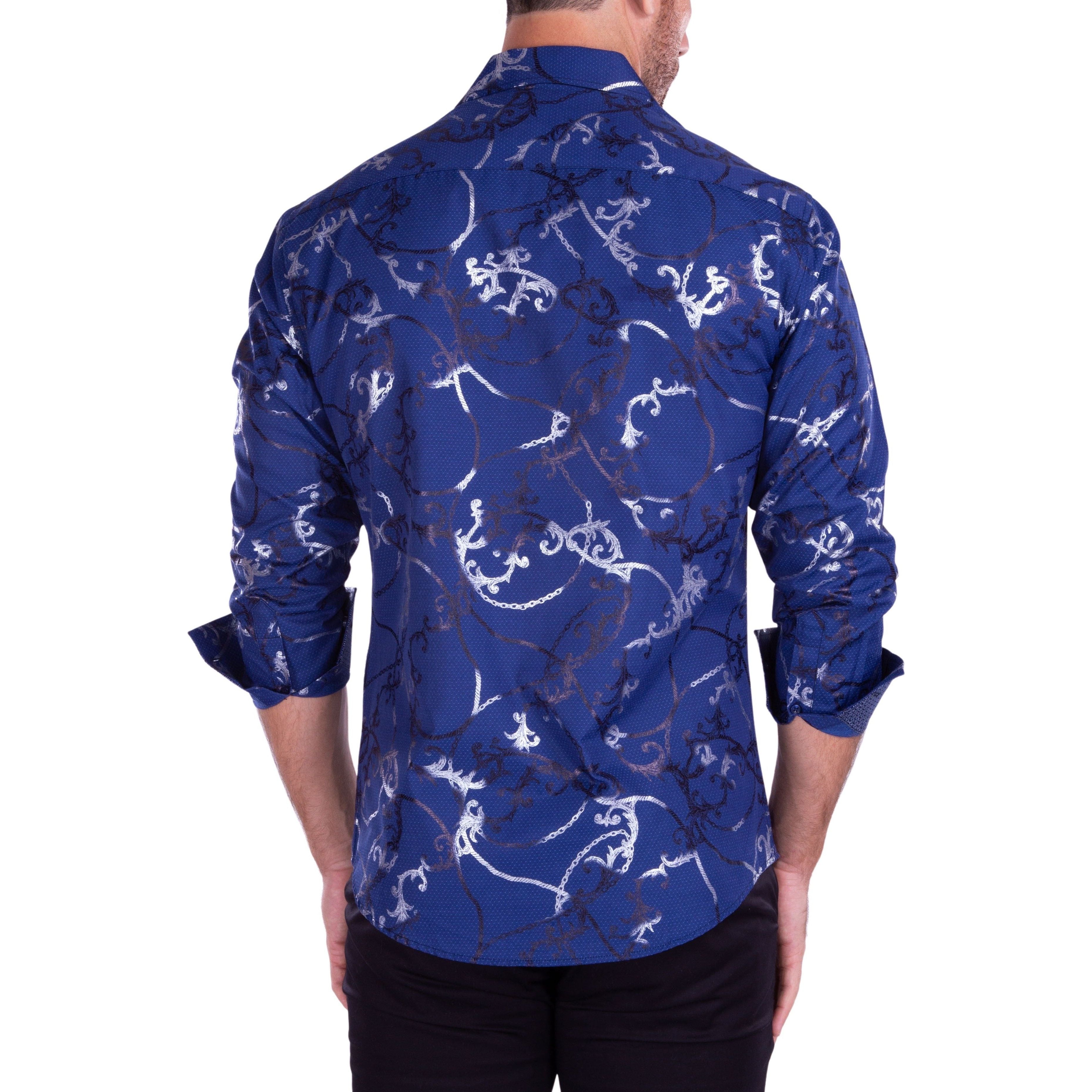 212252 - Men's Navy Button Up Long Sleeve Dress Shirt