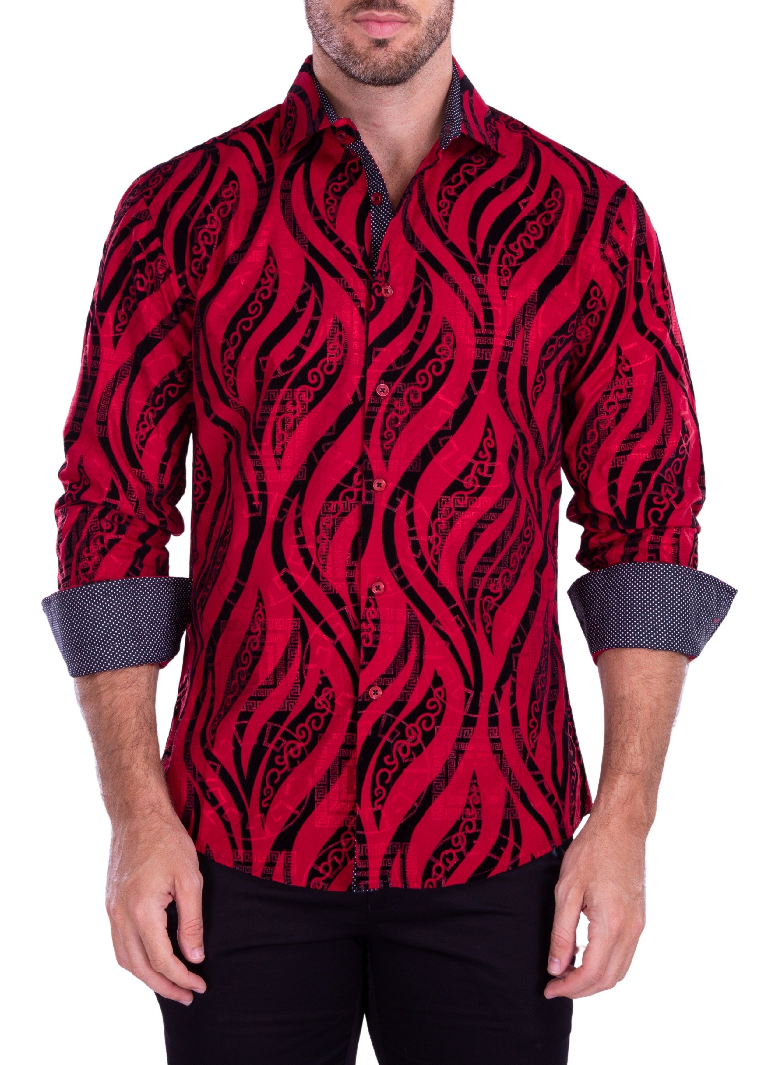 212299 - Red Button Up Long Sleeve Dress Shirt