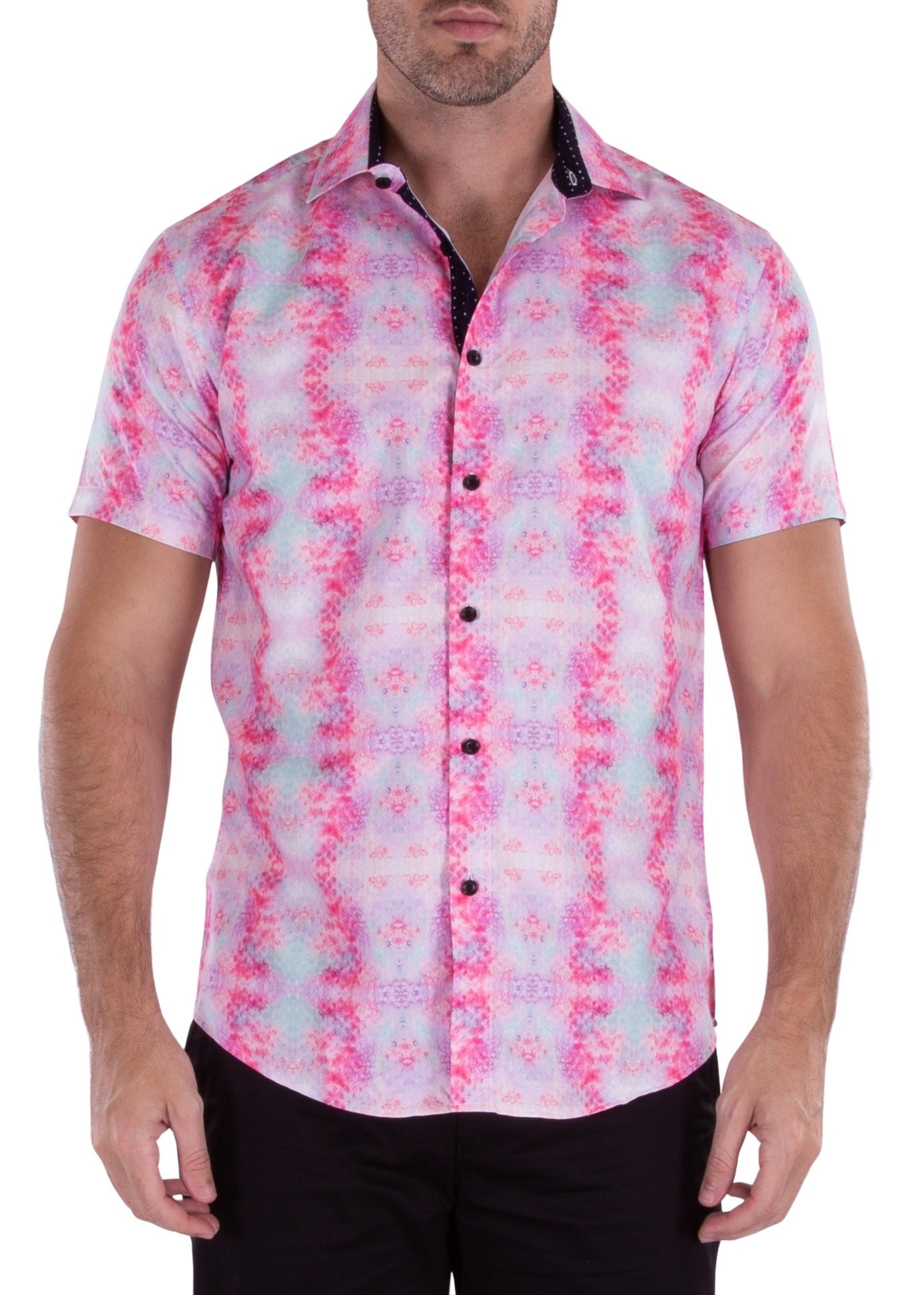222115 - Pink Button Up Short Sleeve Dress Shirt