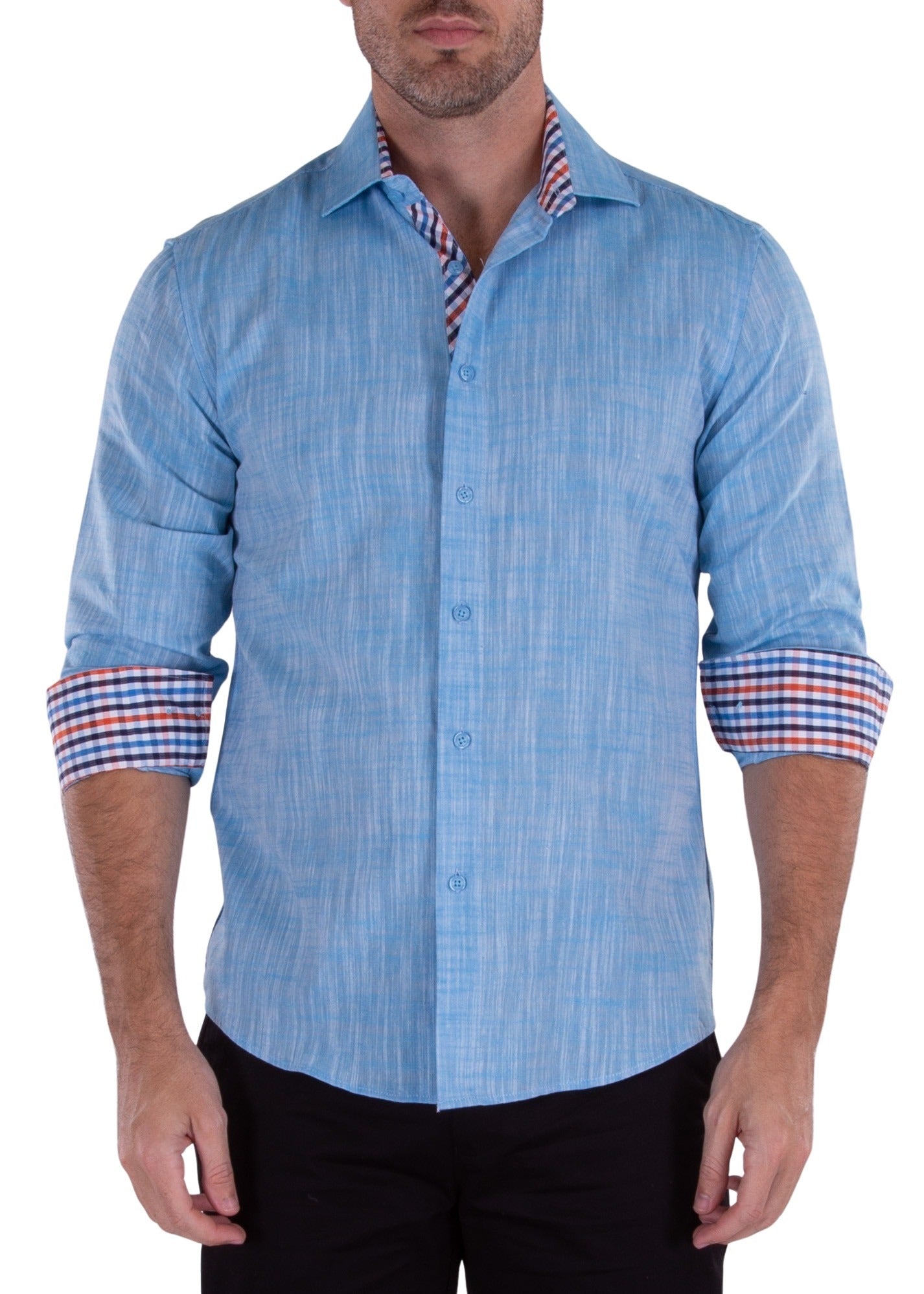 - Contrast Trim on Inner Cuff, Collar & Placket