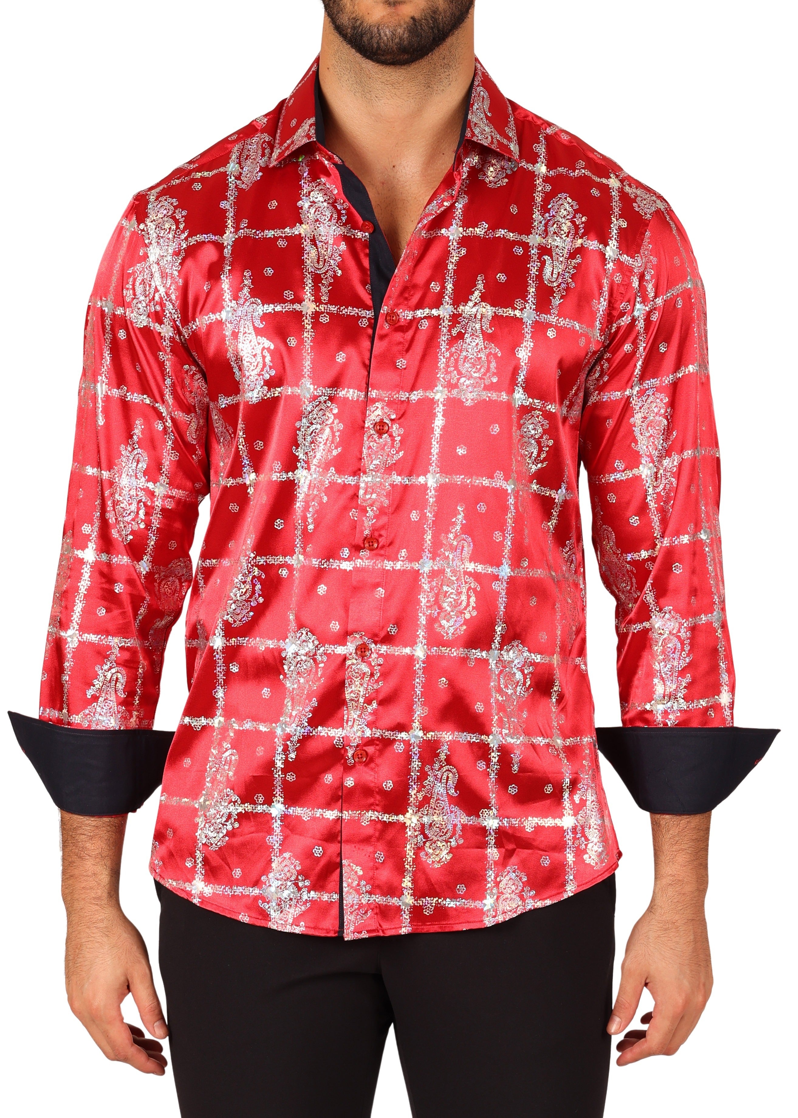 242206 - Red Button Up Long Sleeve Dress Shirt