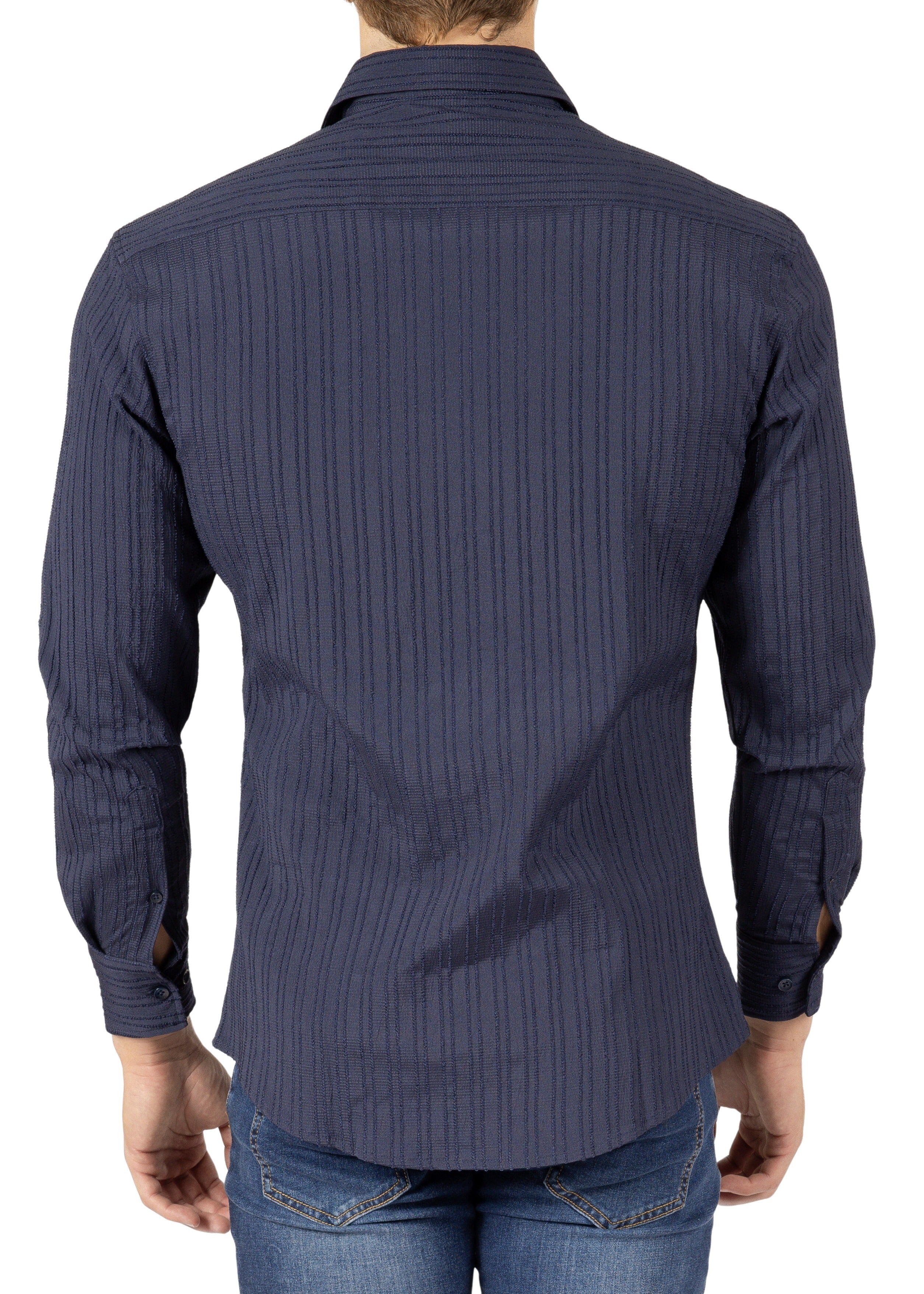 242207 - Navy Button Up Long Sleeve Dress Shirt