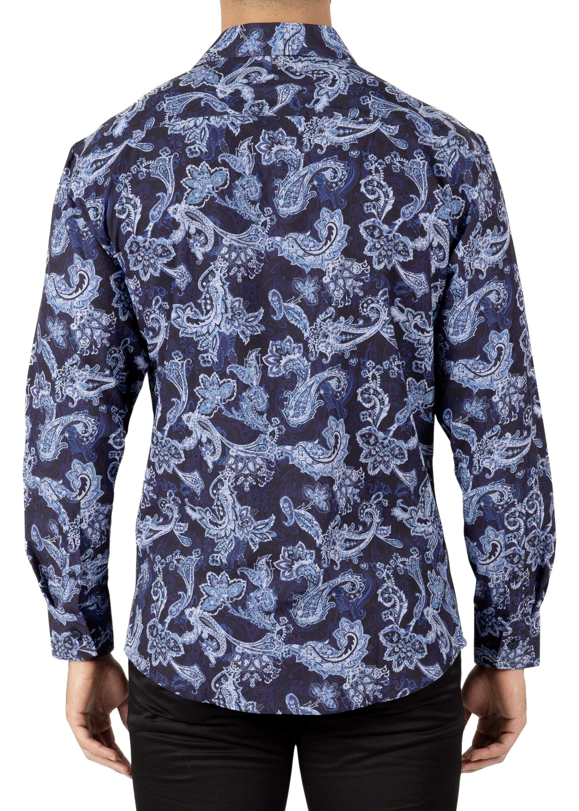 242215- Navy Button Up Long Sleeve Dress Shirt
