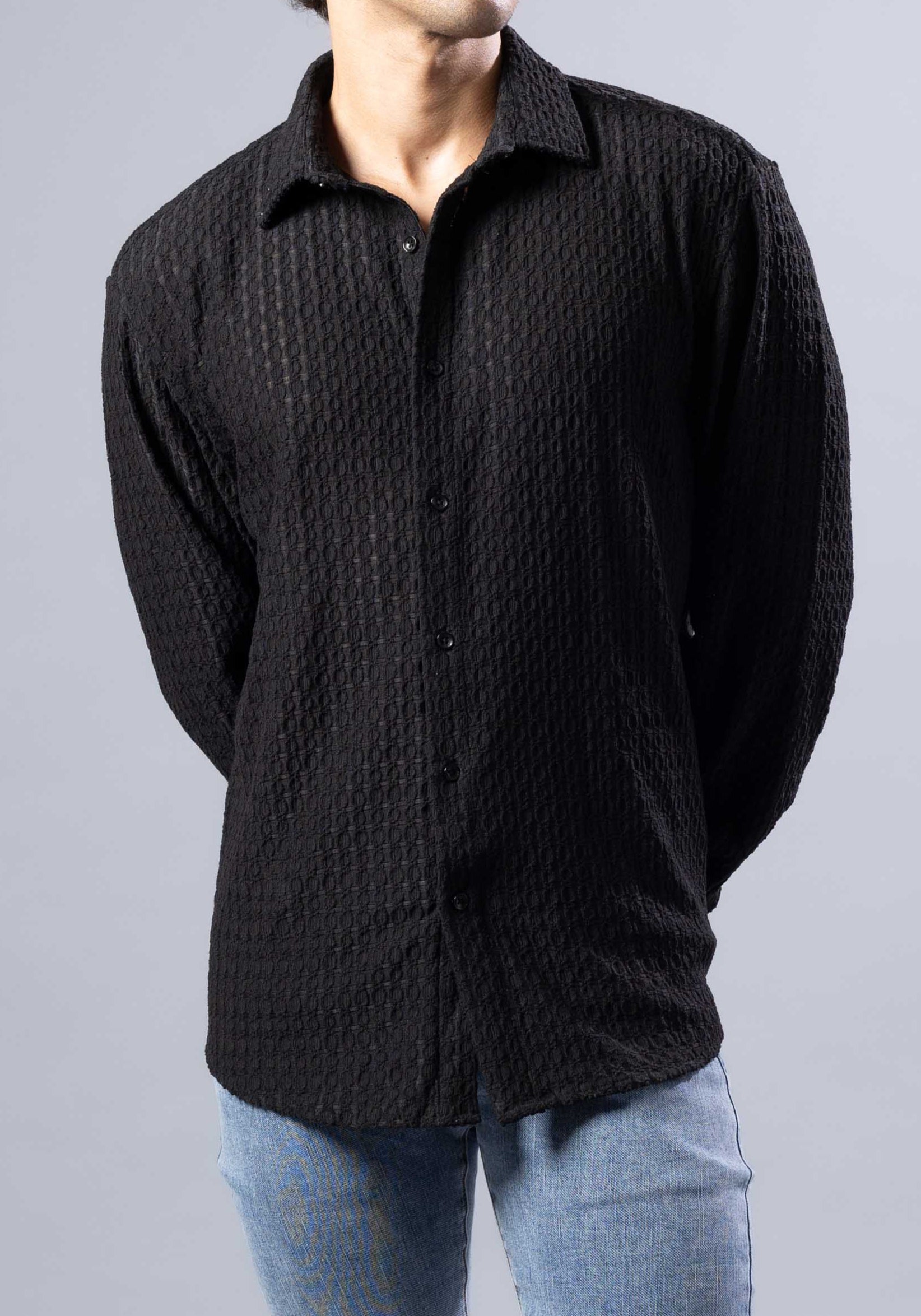 252202 - Black Button Up Long Sleeve Dress Shirt