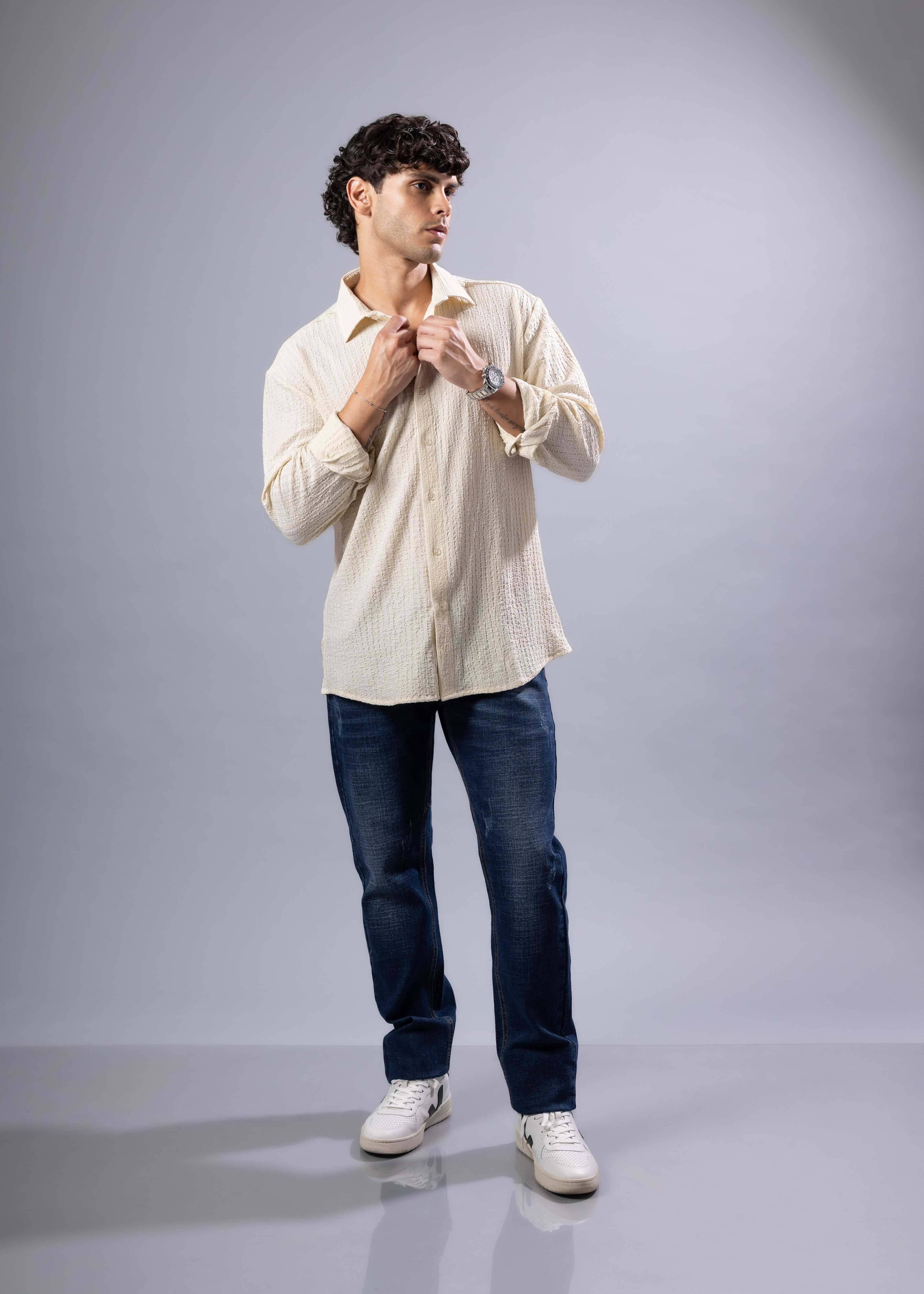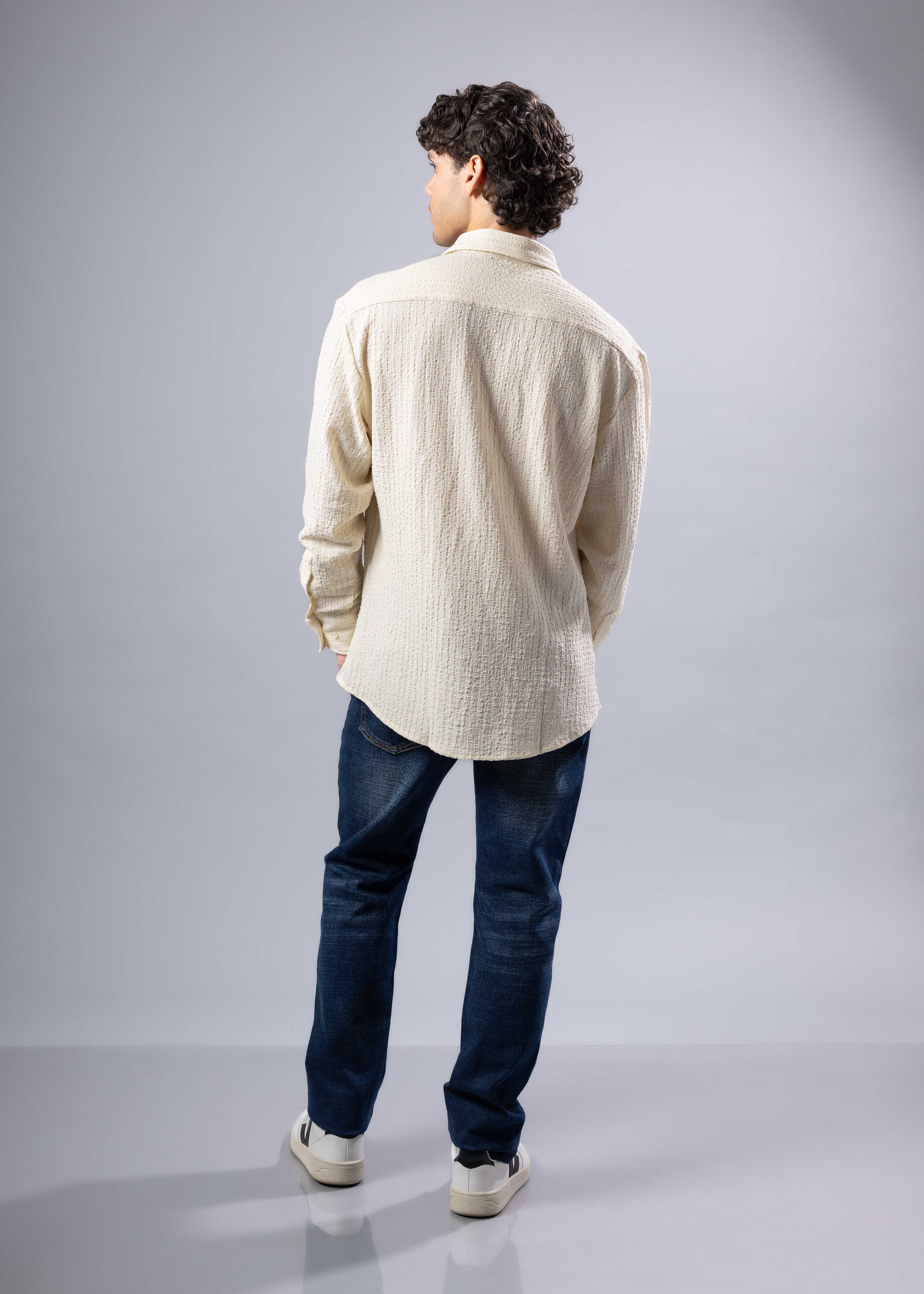 252209 - Off-White Button Up Long Sleeve Dress Shirt