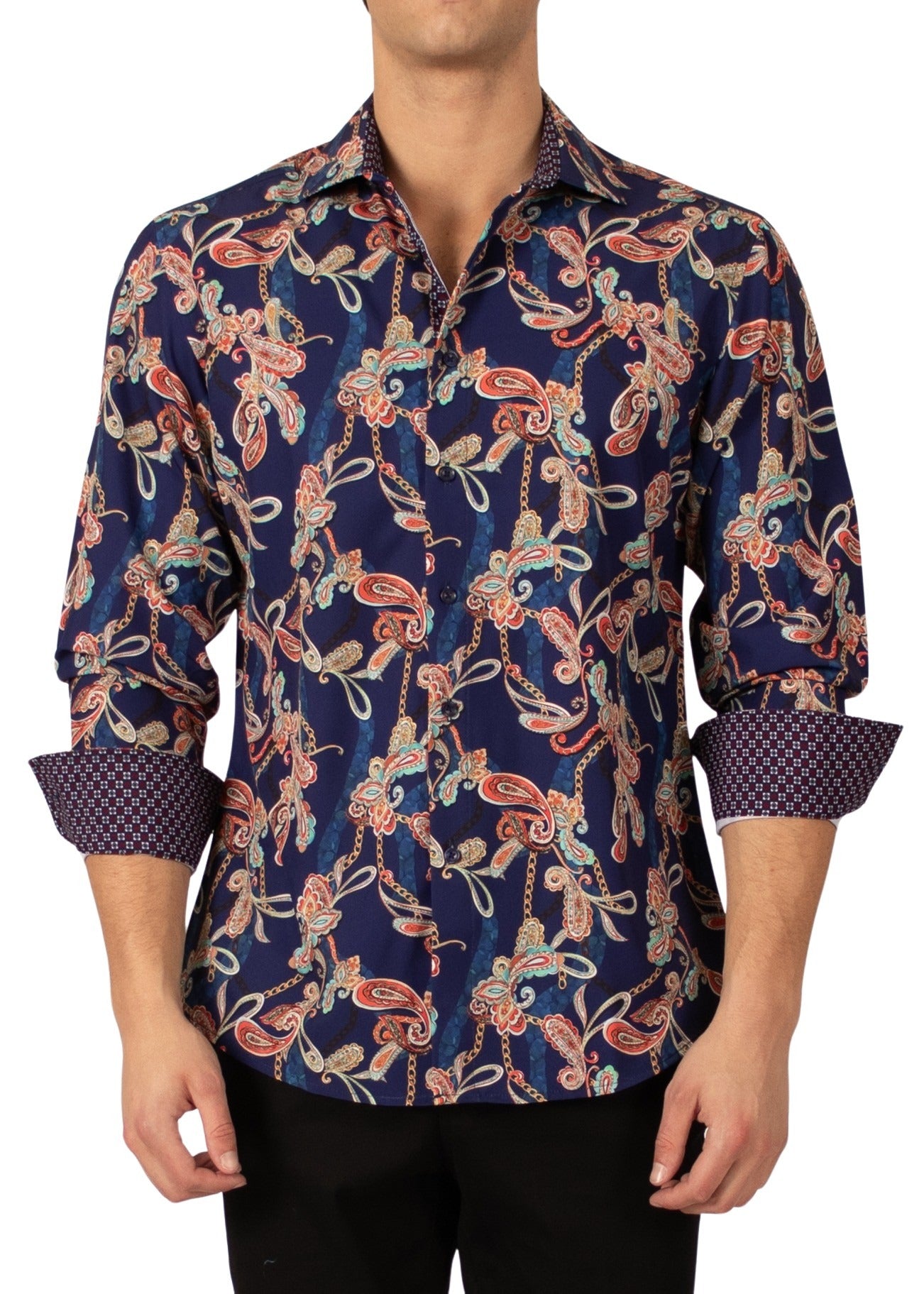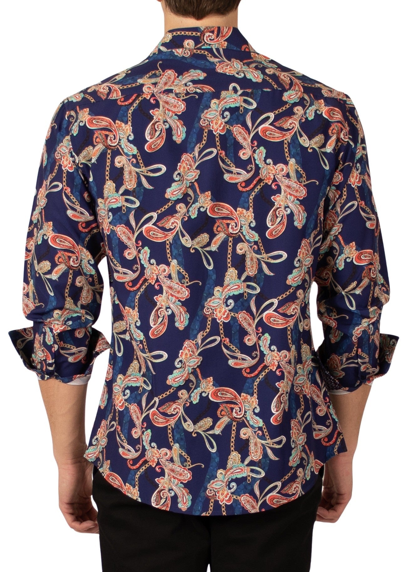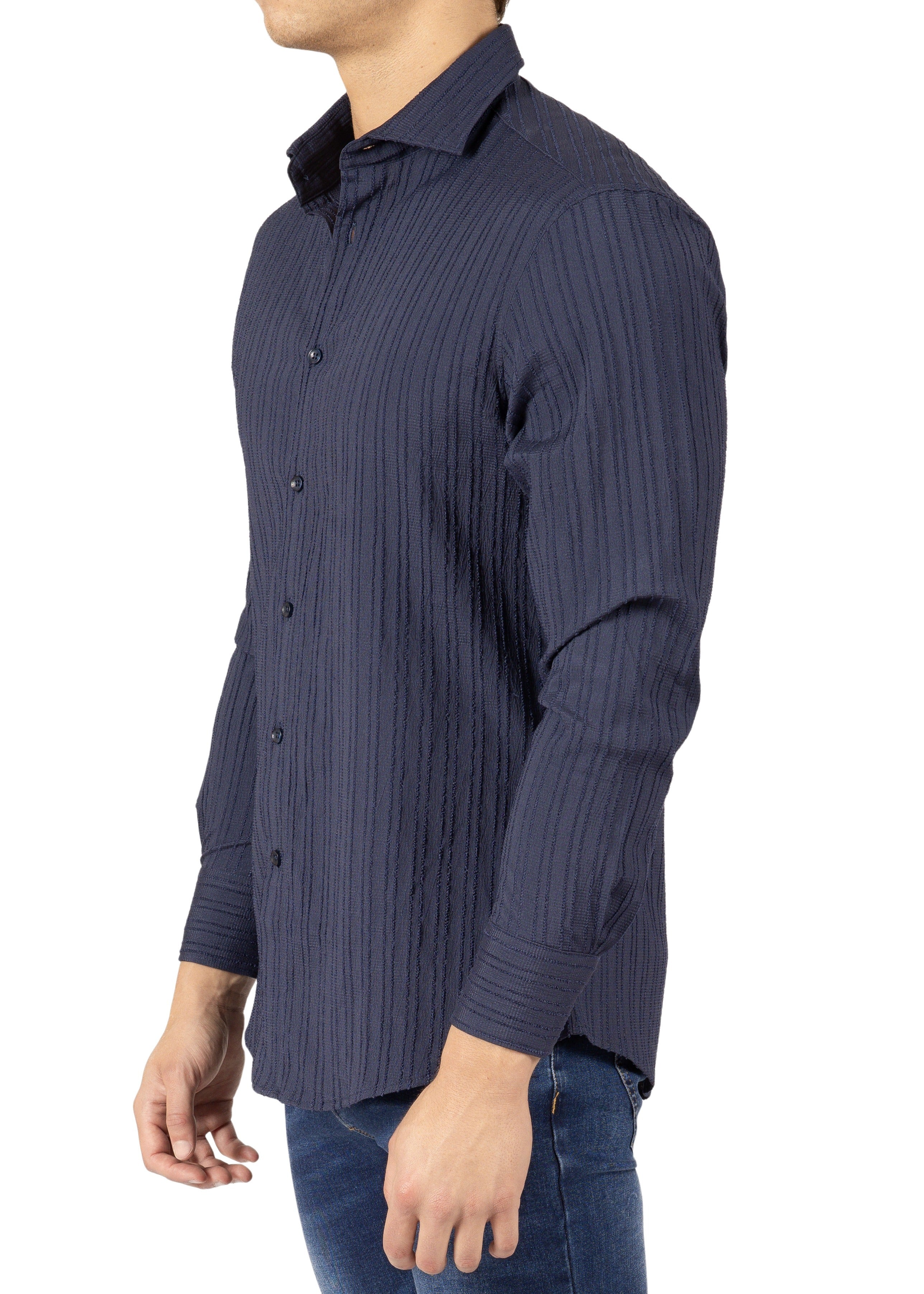 242215- Navy Button Up Long Sleeve Dress Shirt