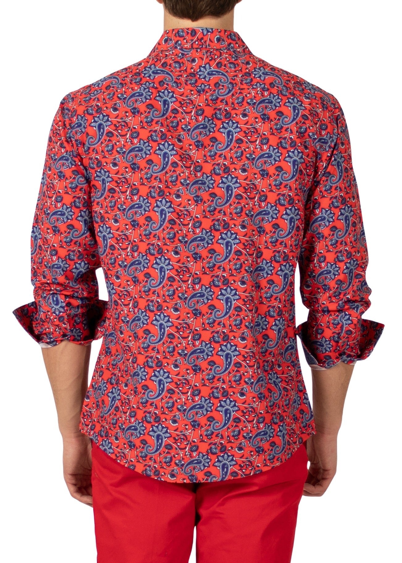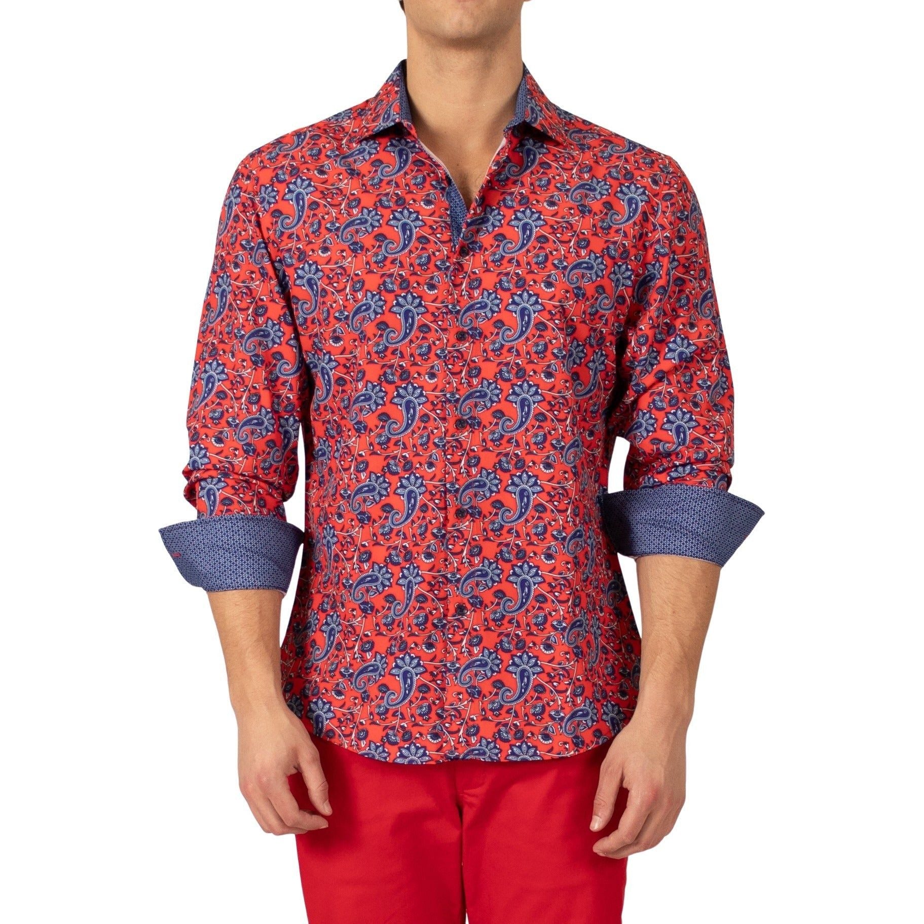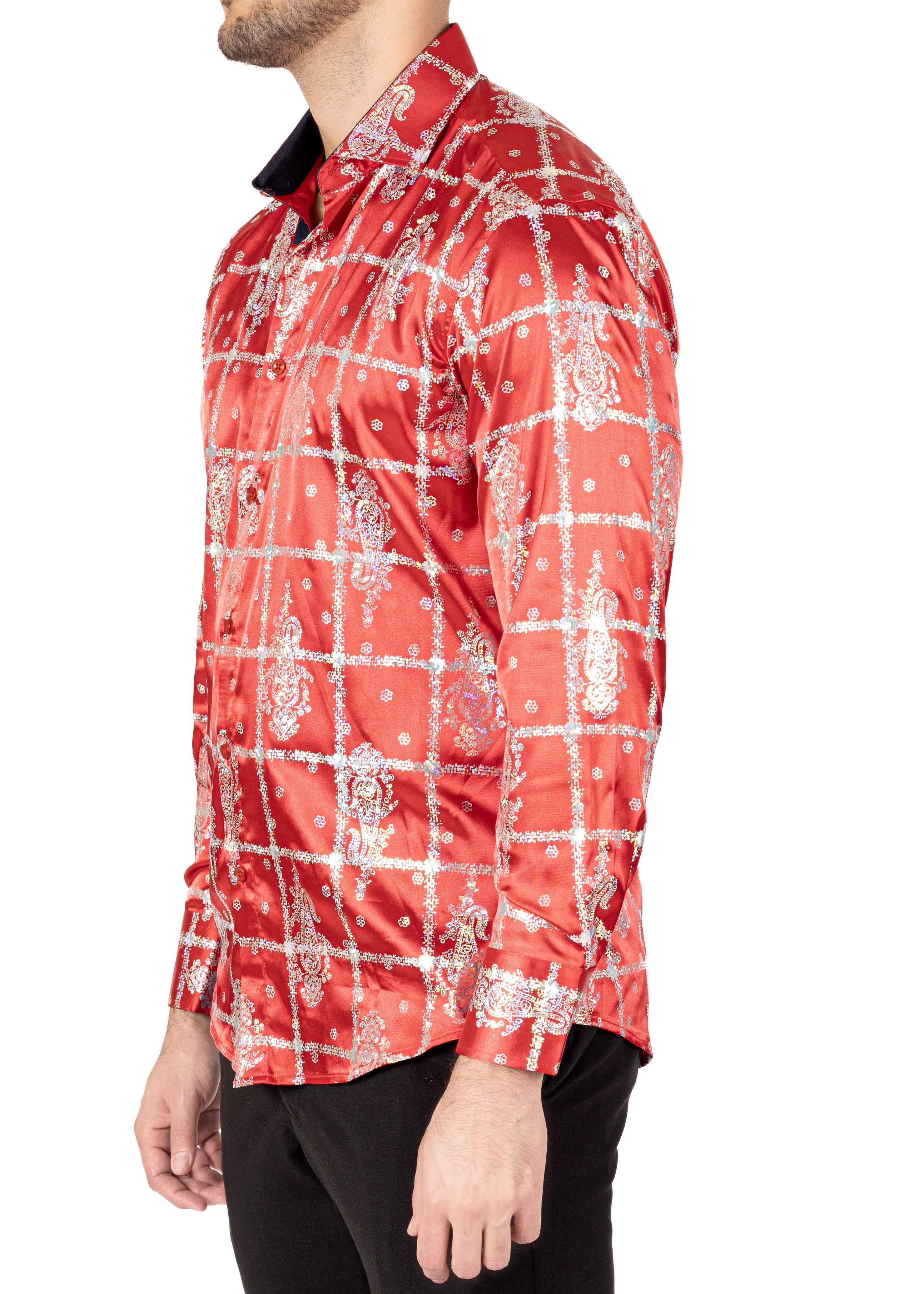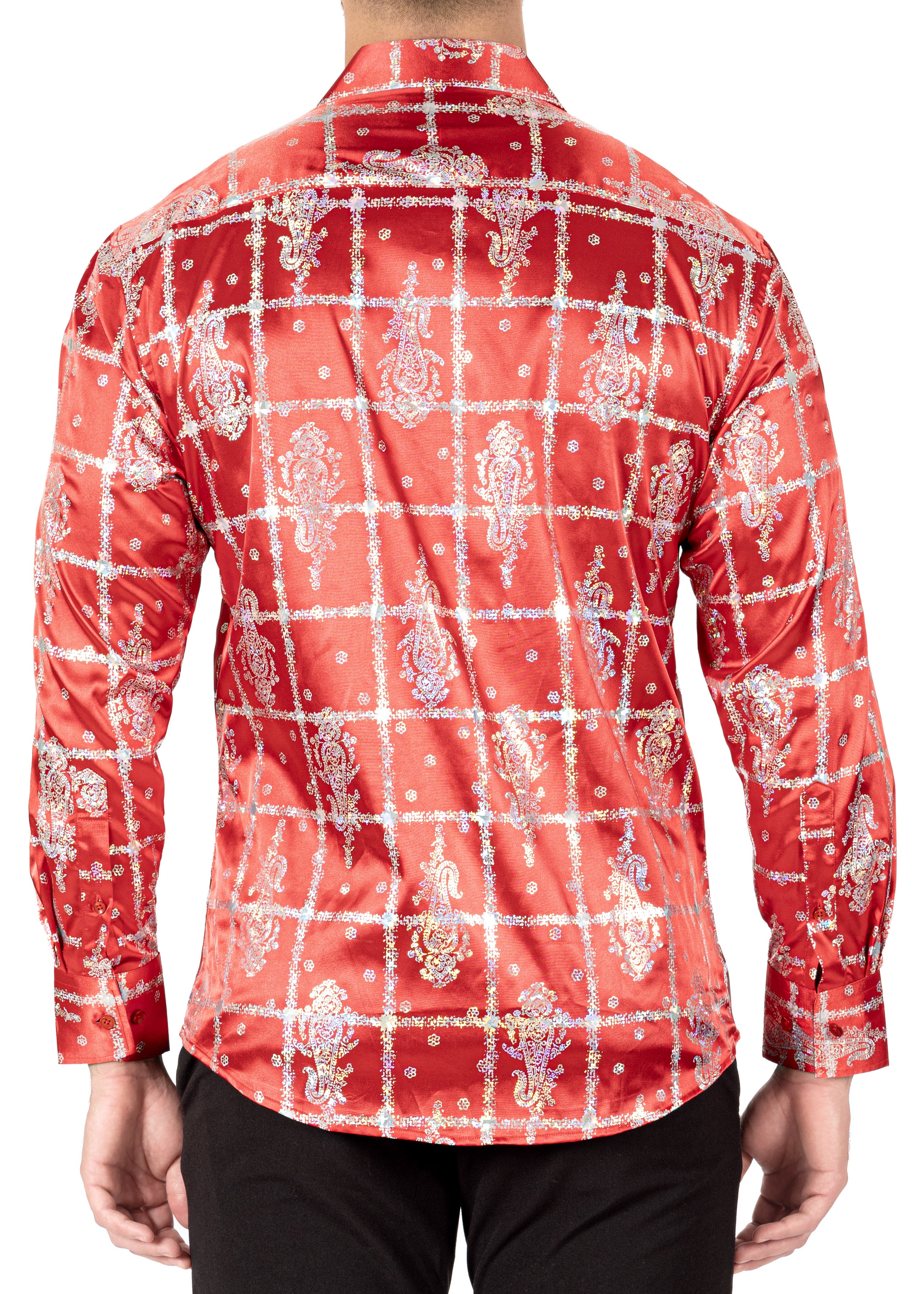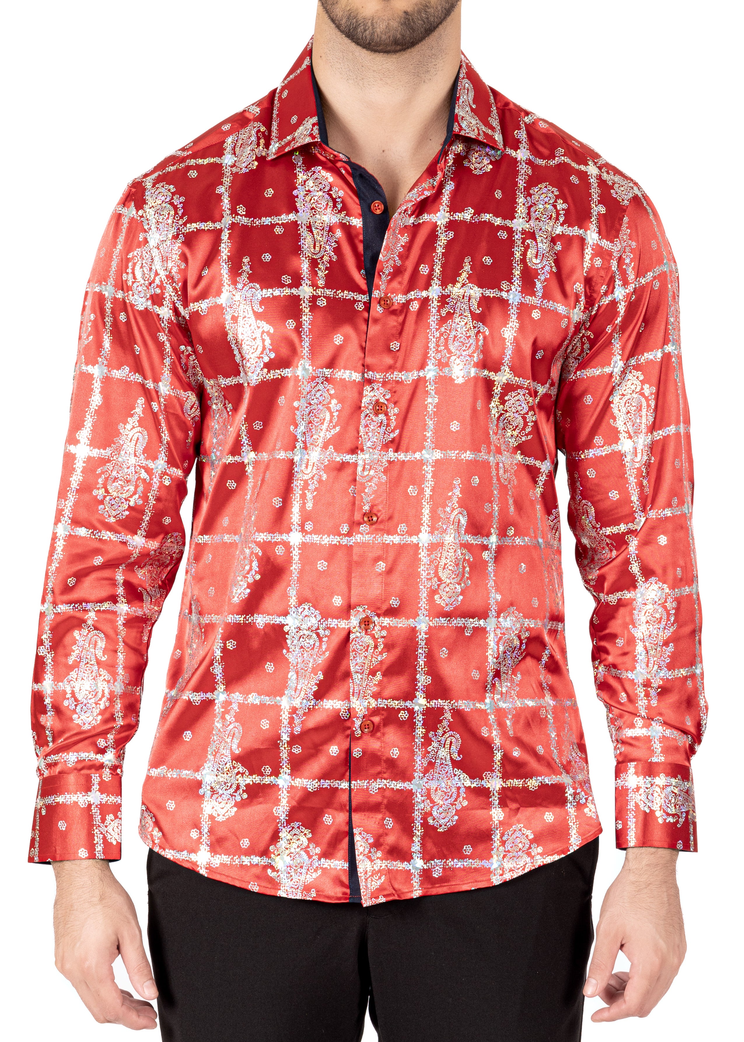 242206 - Red Button Up Long Sleeve Dress Shirt