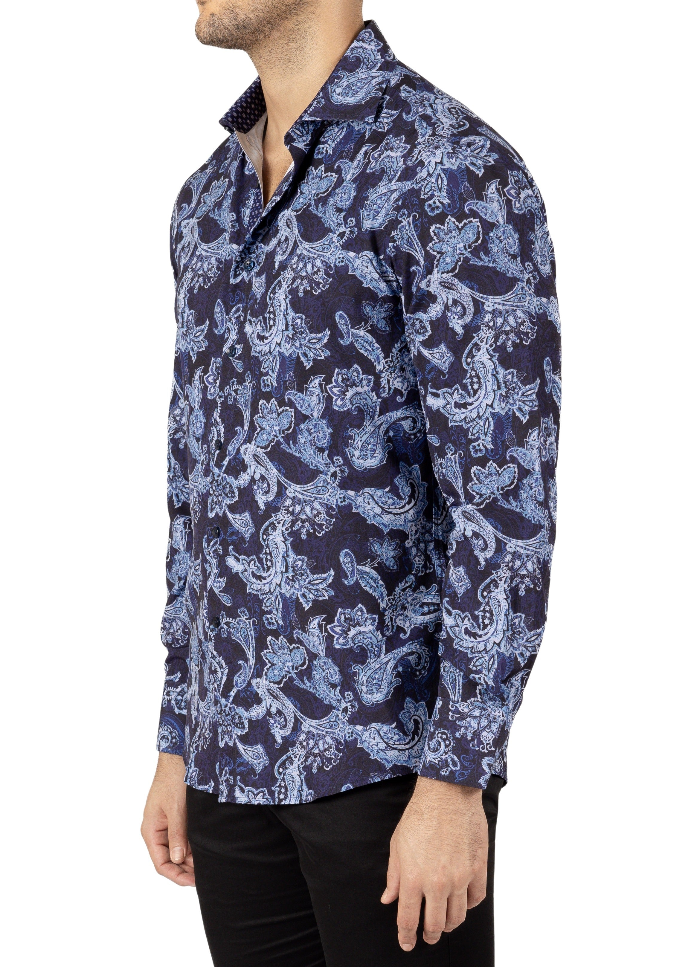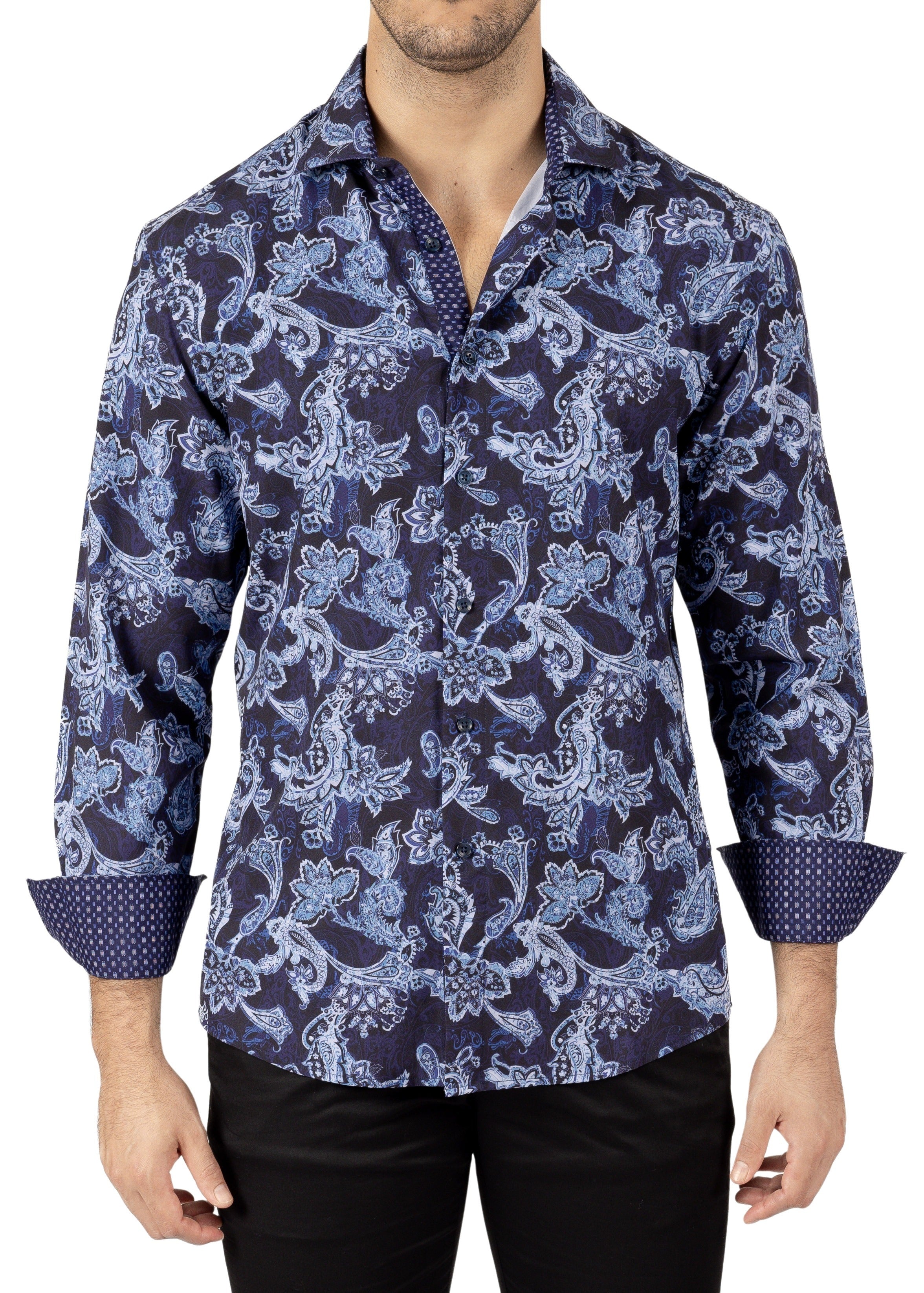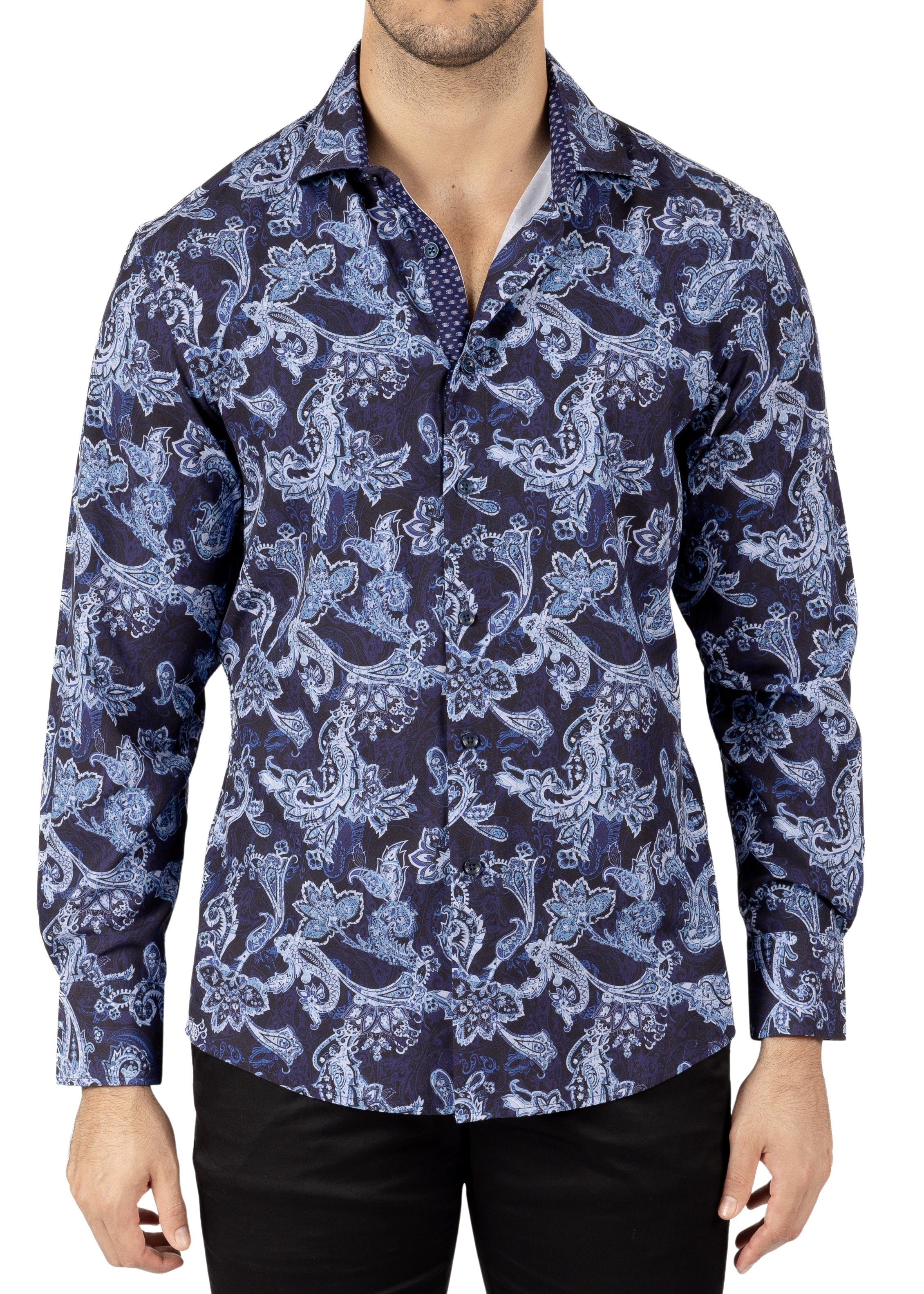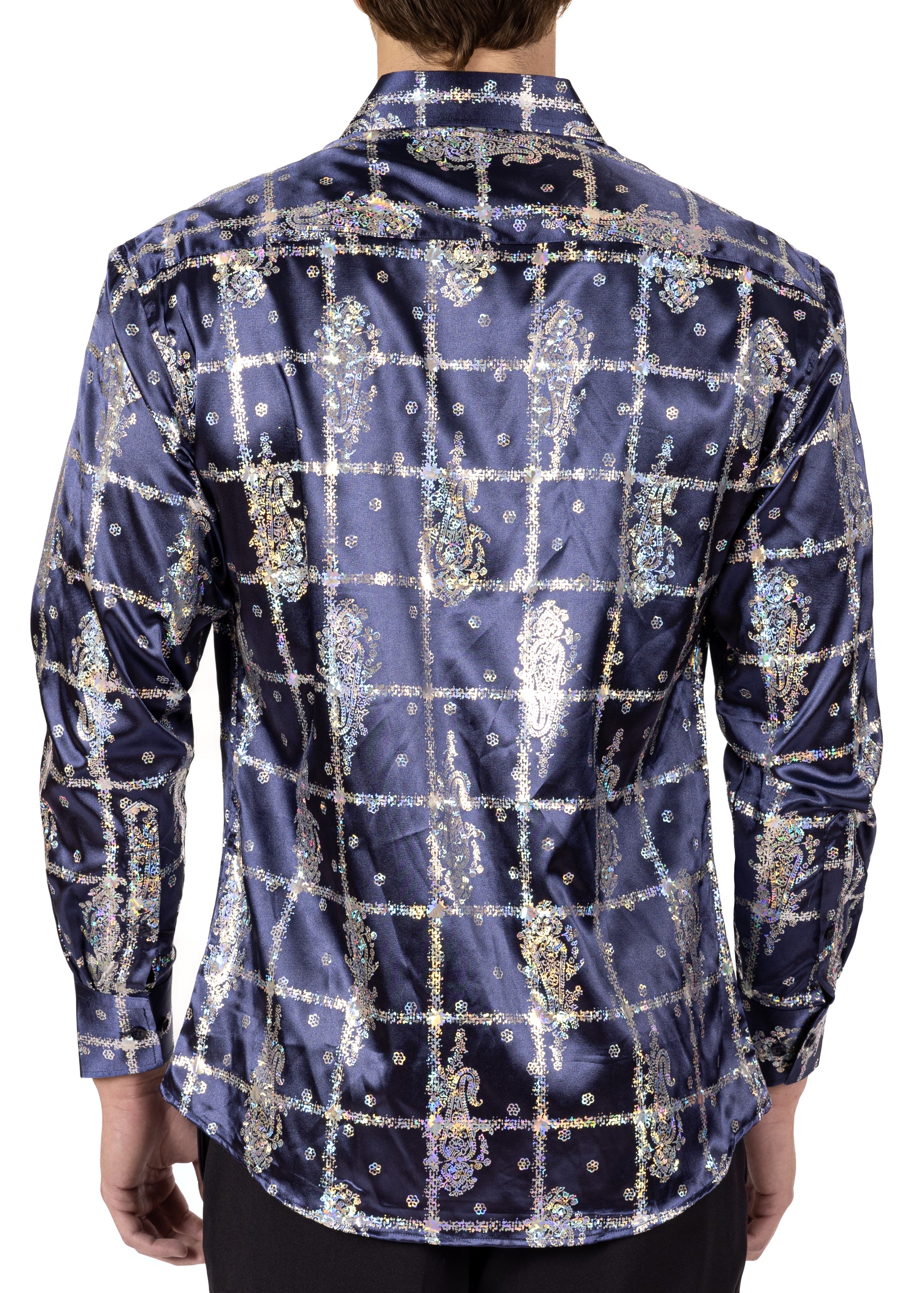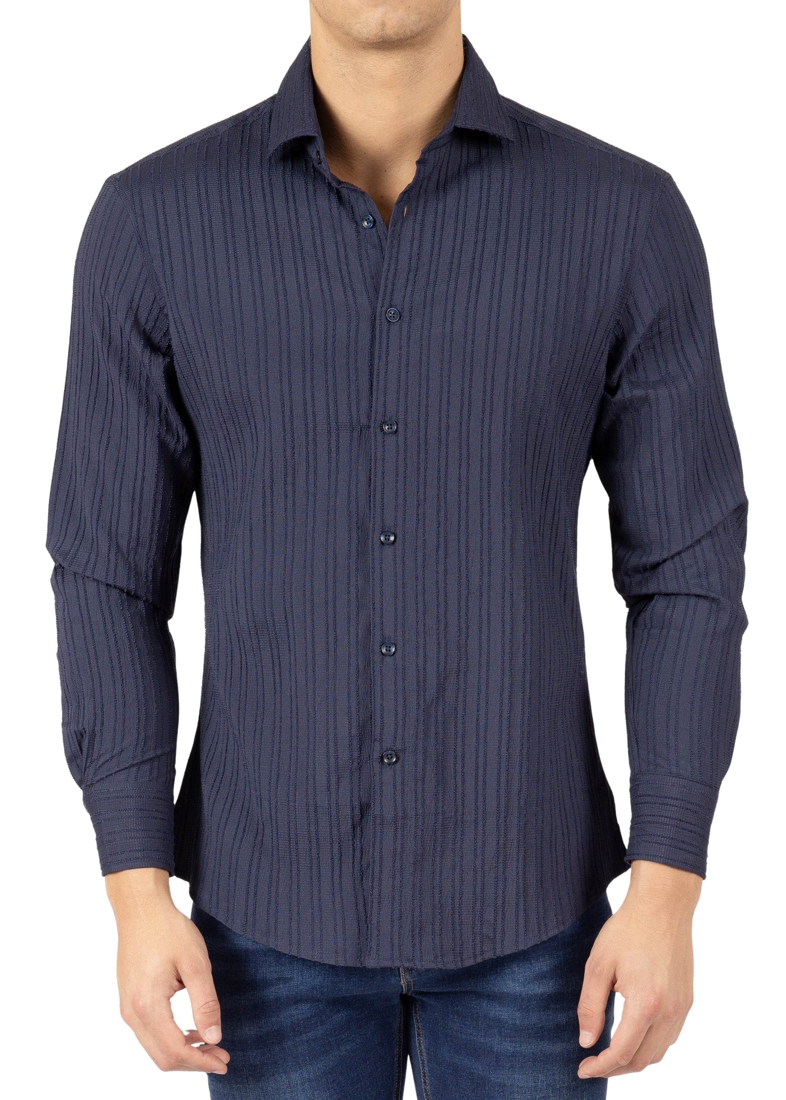242214- Navy Button Up Long Sleeve Dress Shirt