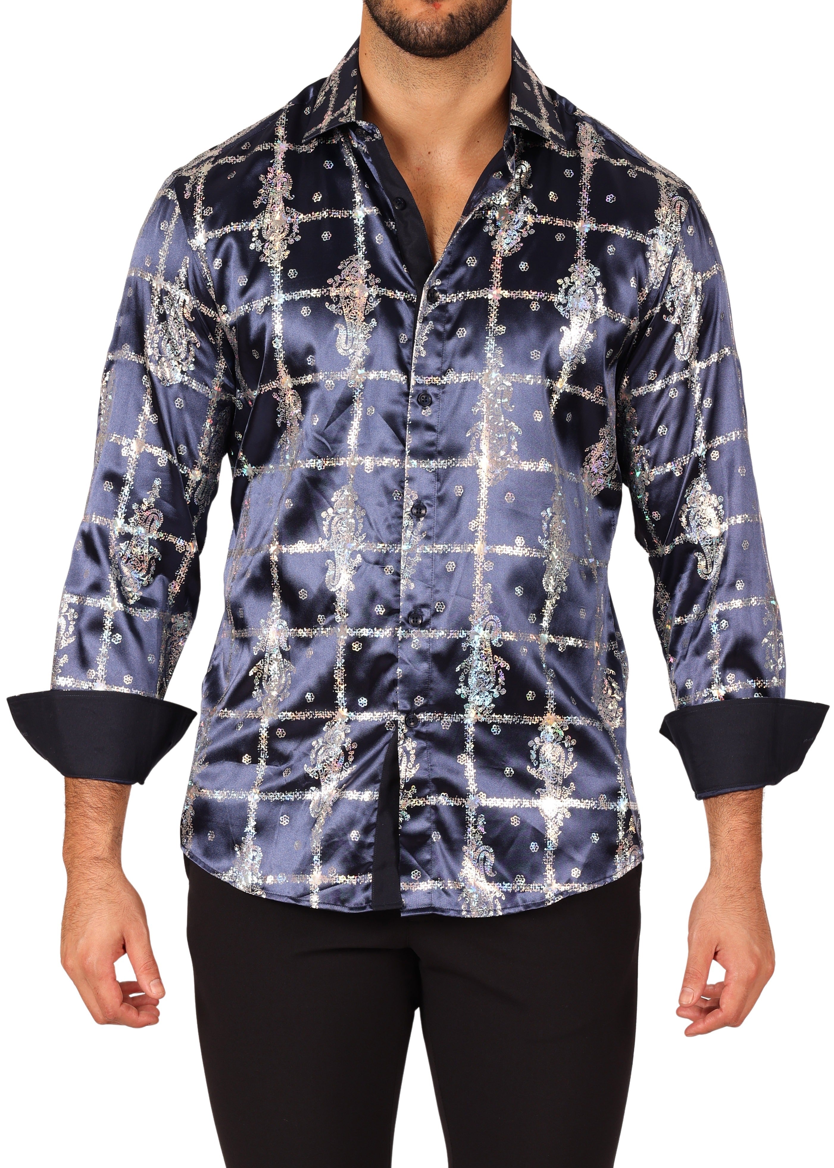 242204 - Navy Button Up Long Sleeve Dress Shirt