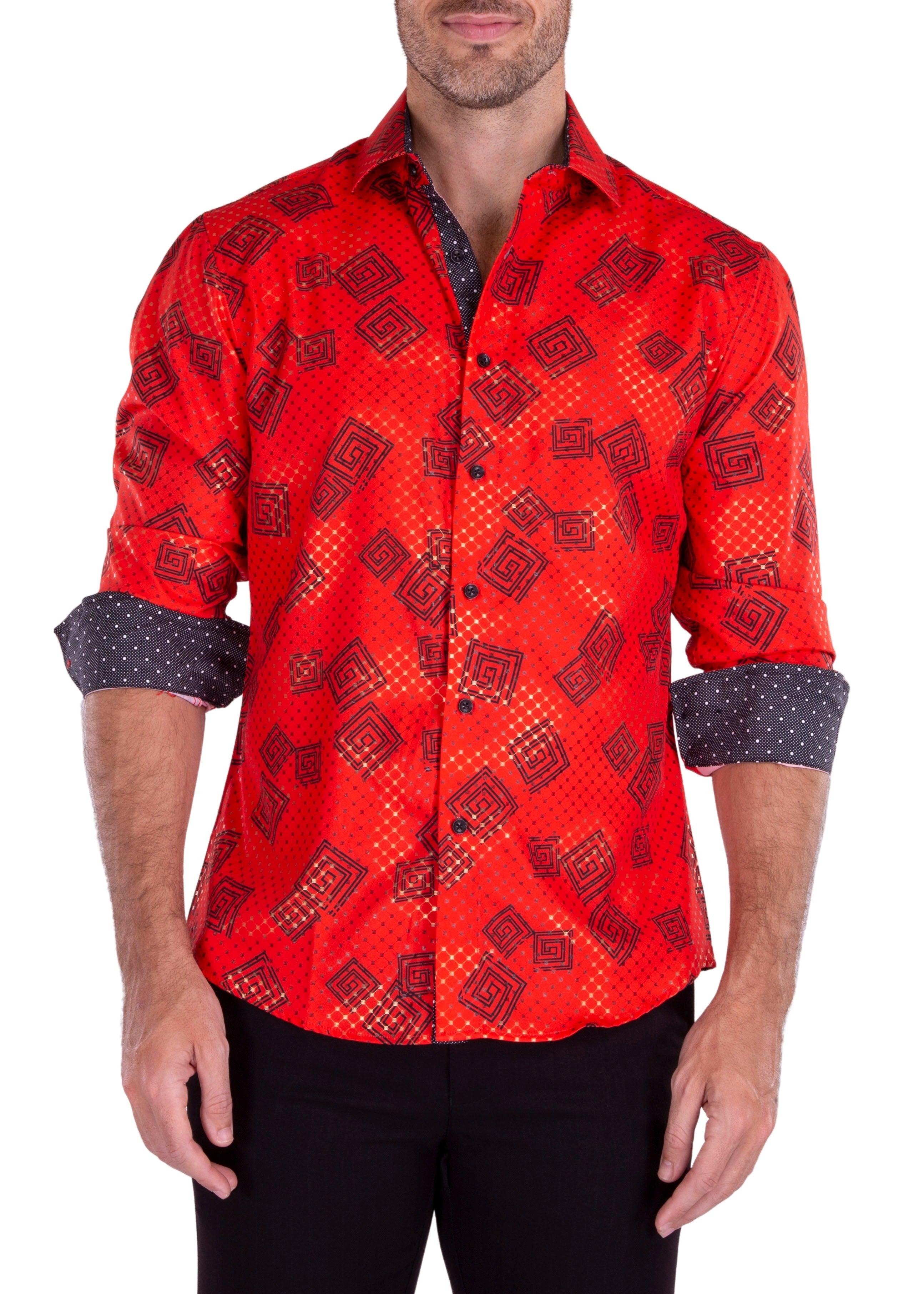 232238 - Red Button Up Long Sleeve Dress Shirt