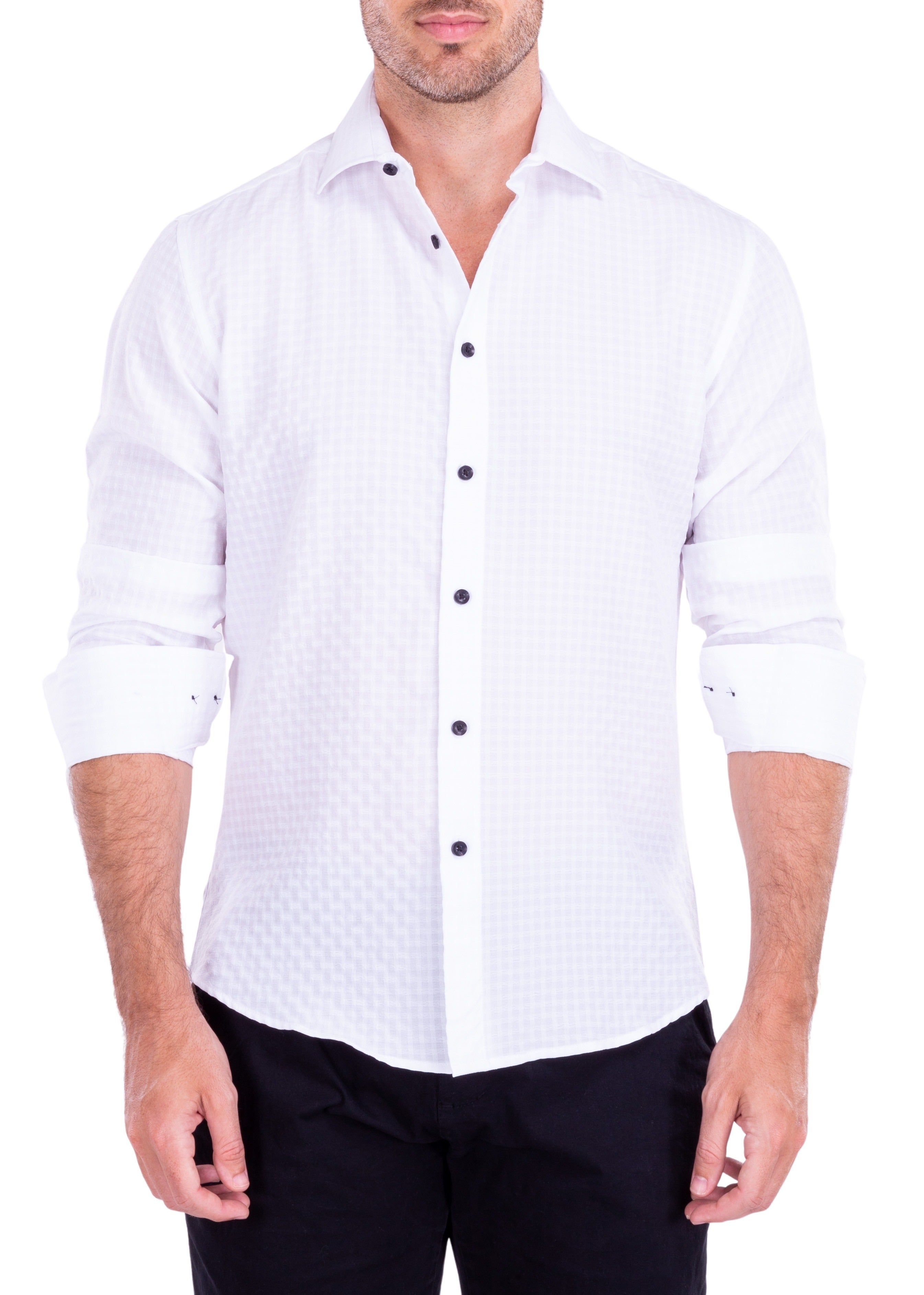 172510 - Men's White Button Up Long Sleeve Dress Shirt