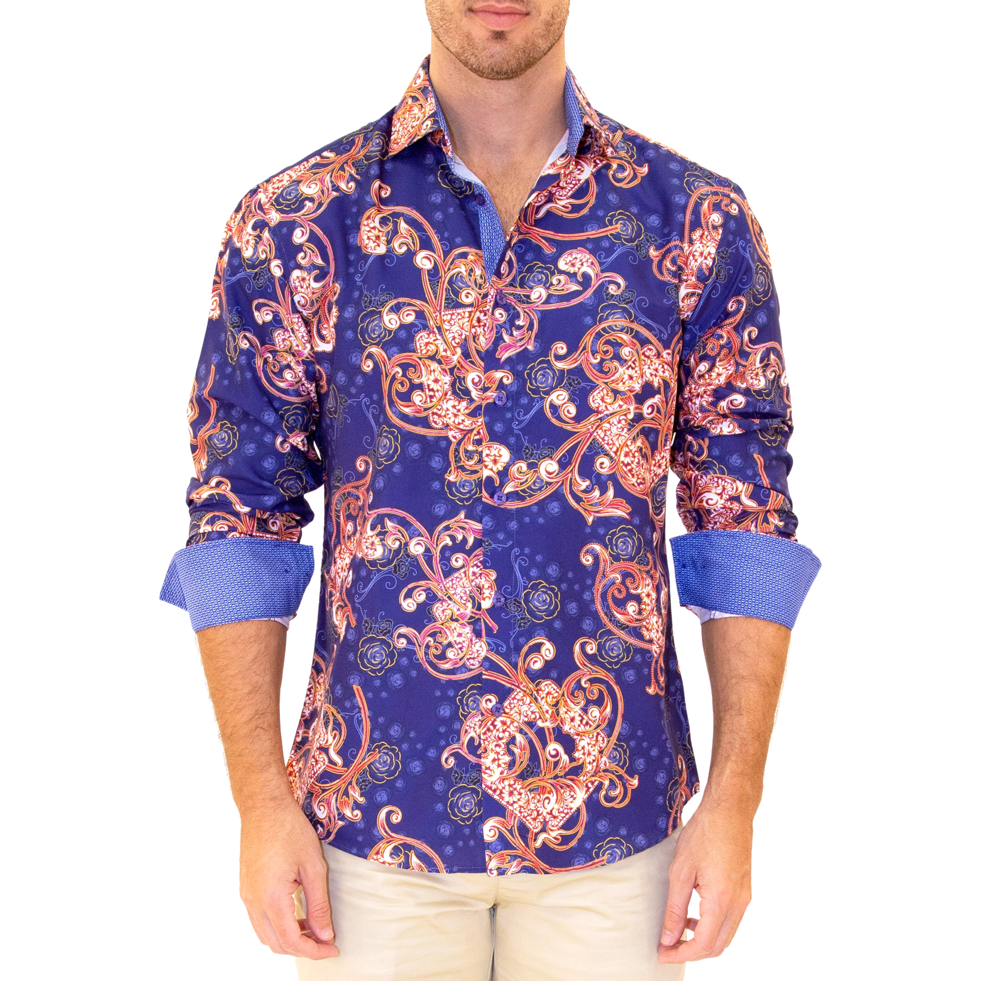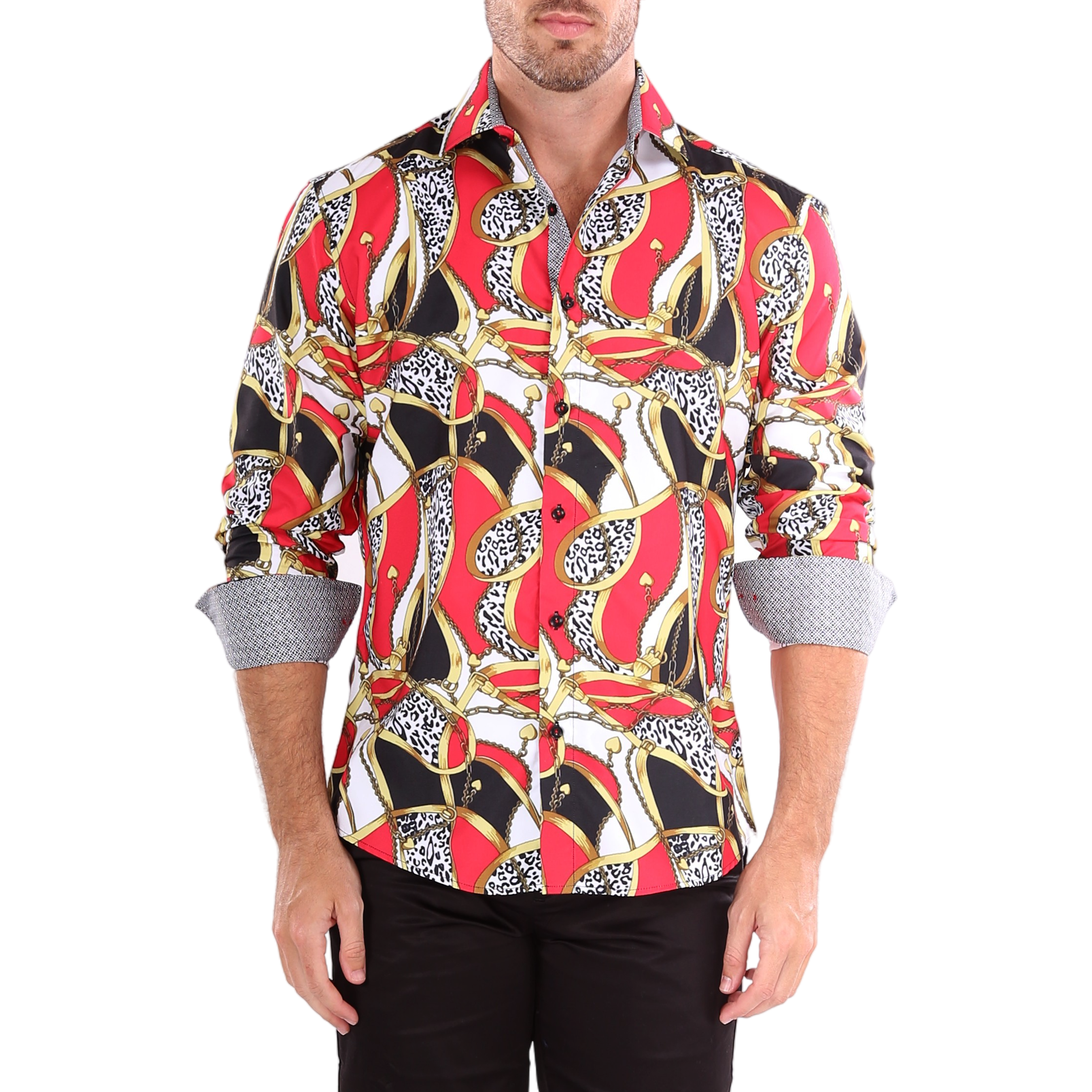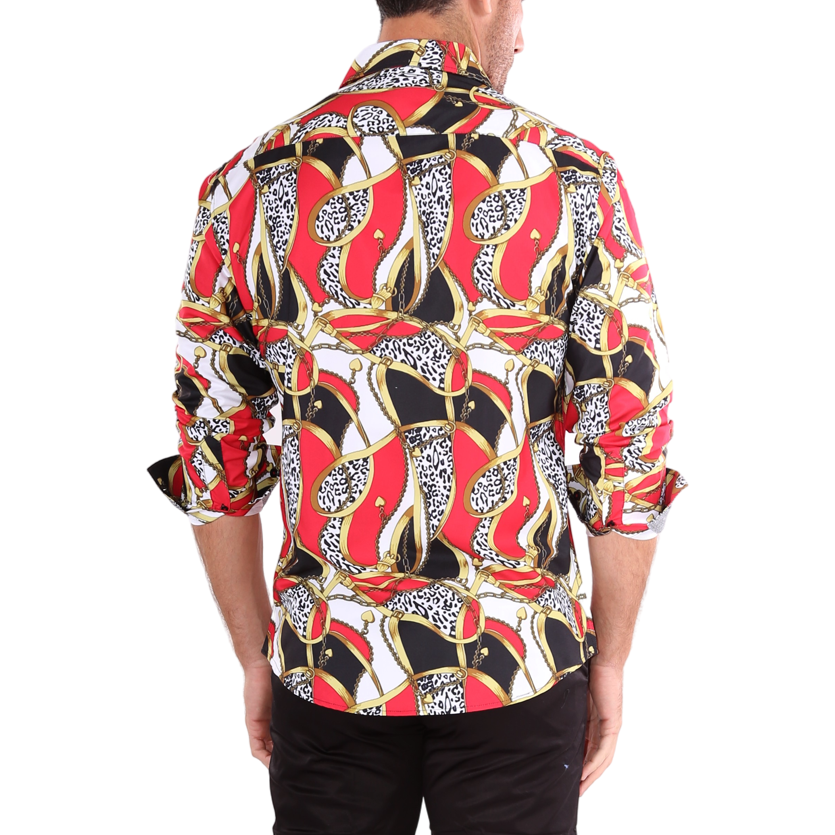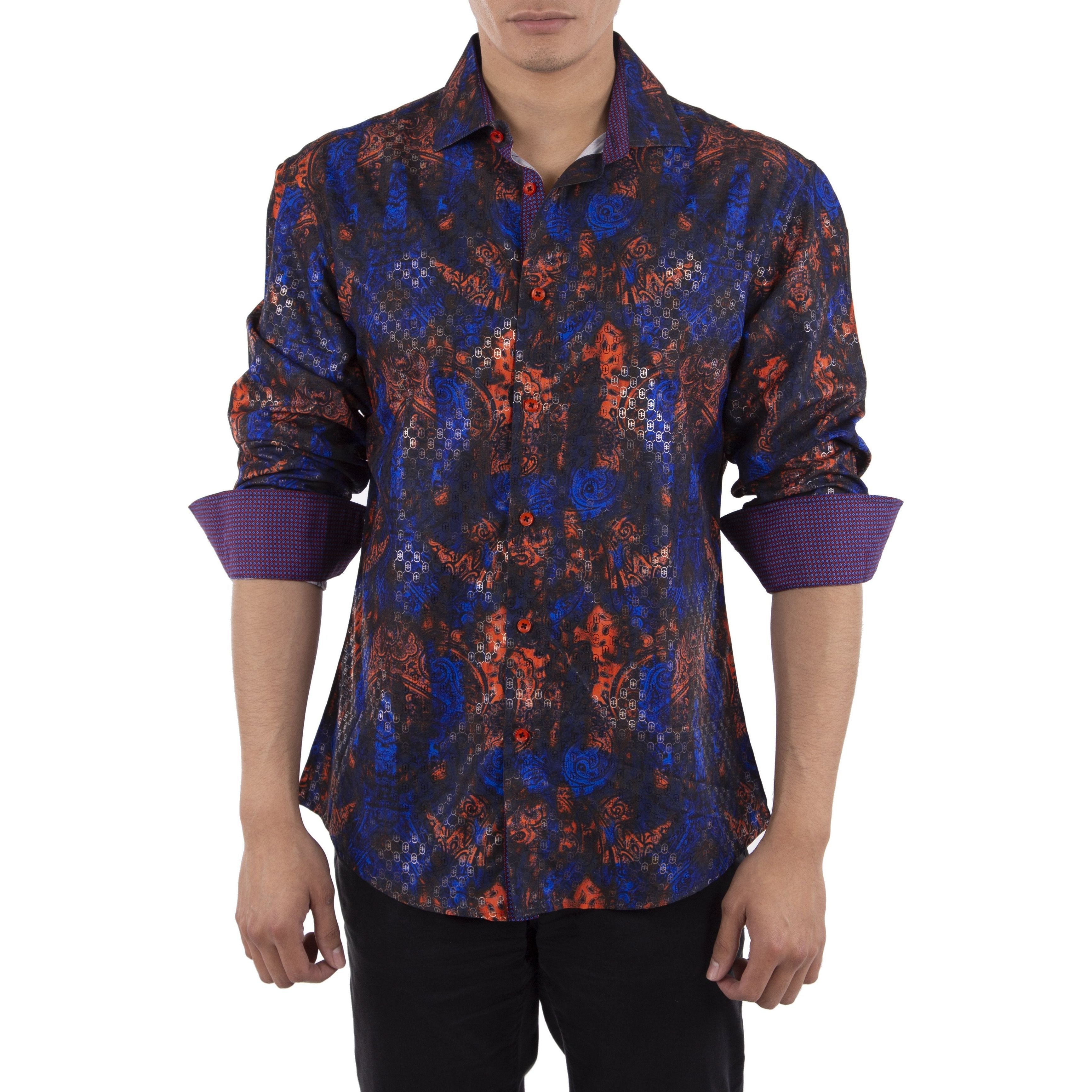212200 - Men's Dali Inspired Red Button Up Long Sleeve Dress Shirt